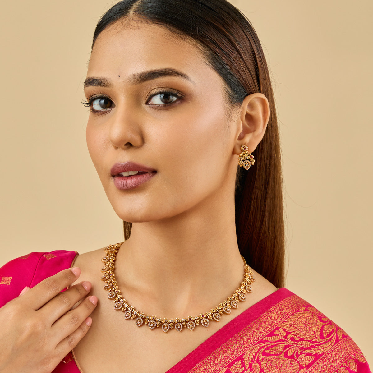 Choosing an antique necklace set means more than just choosing a piece of jewelry; it’s about embracing a part of India’s culture. Antique necklaces, with their rich detailing and symbolism, hold sentimental value, making them perfect heirlooms to pass down through generations. The antique necklaces in our collection are designed with precision to maintain their beauty and integrity even as trends evolve. Likewise, our antique necklaces offer a more modern twist on tradition, offering a more accessible option without compromising on elegance.
