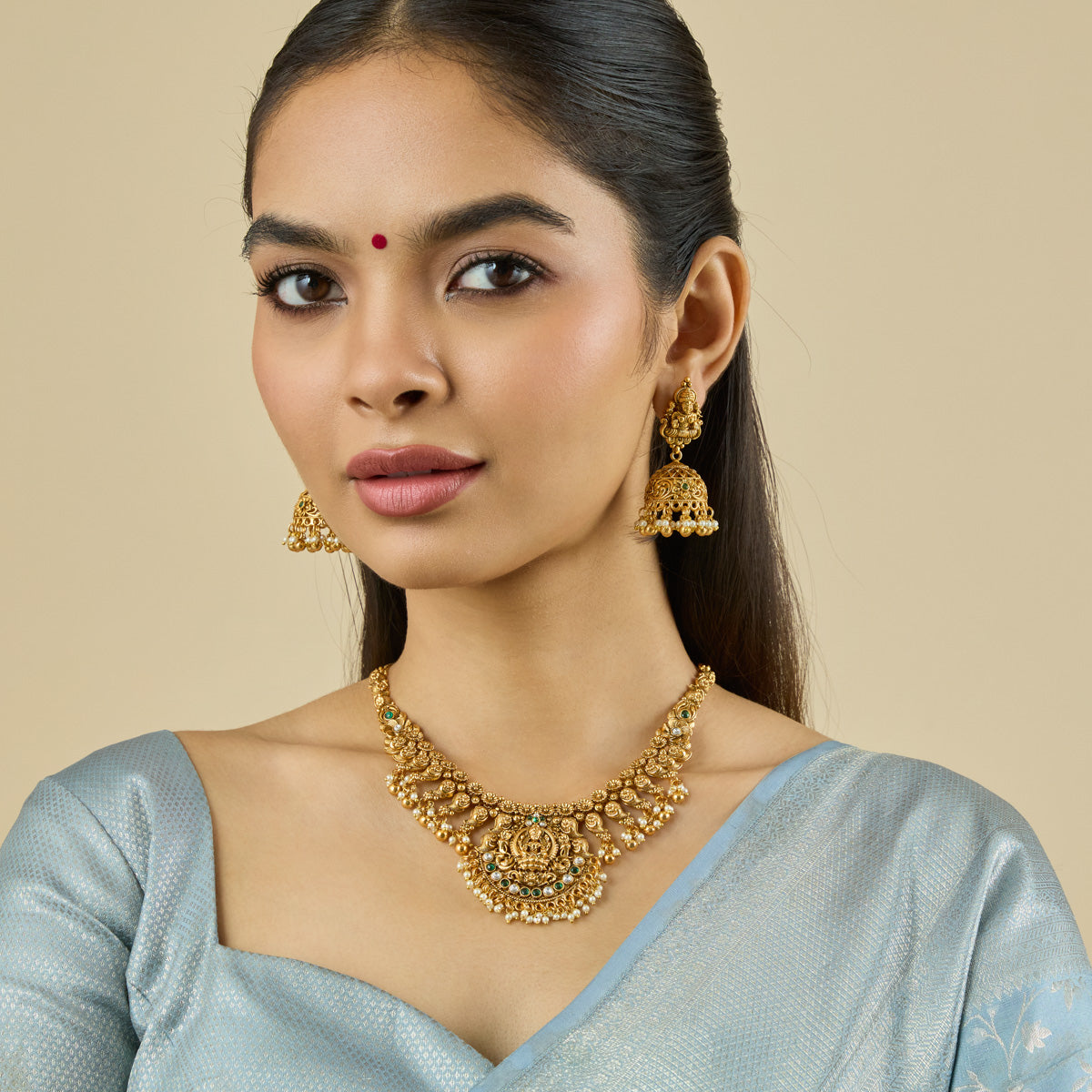Jewelry is always an expression of the wearer’s style, but when it comes to antique-style jewelry, the wearer is tasked with carrying the honor of our country’s esteemed craftsmanship. Known for intricate details and life-like features, antique-style jewelry brings a certain grandeur and opulence to the wearer. Perfect for pairing with attire like sarees and lehengas, make antique necklace sets your traditional must-haves!