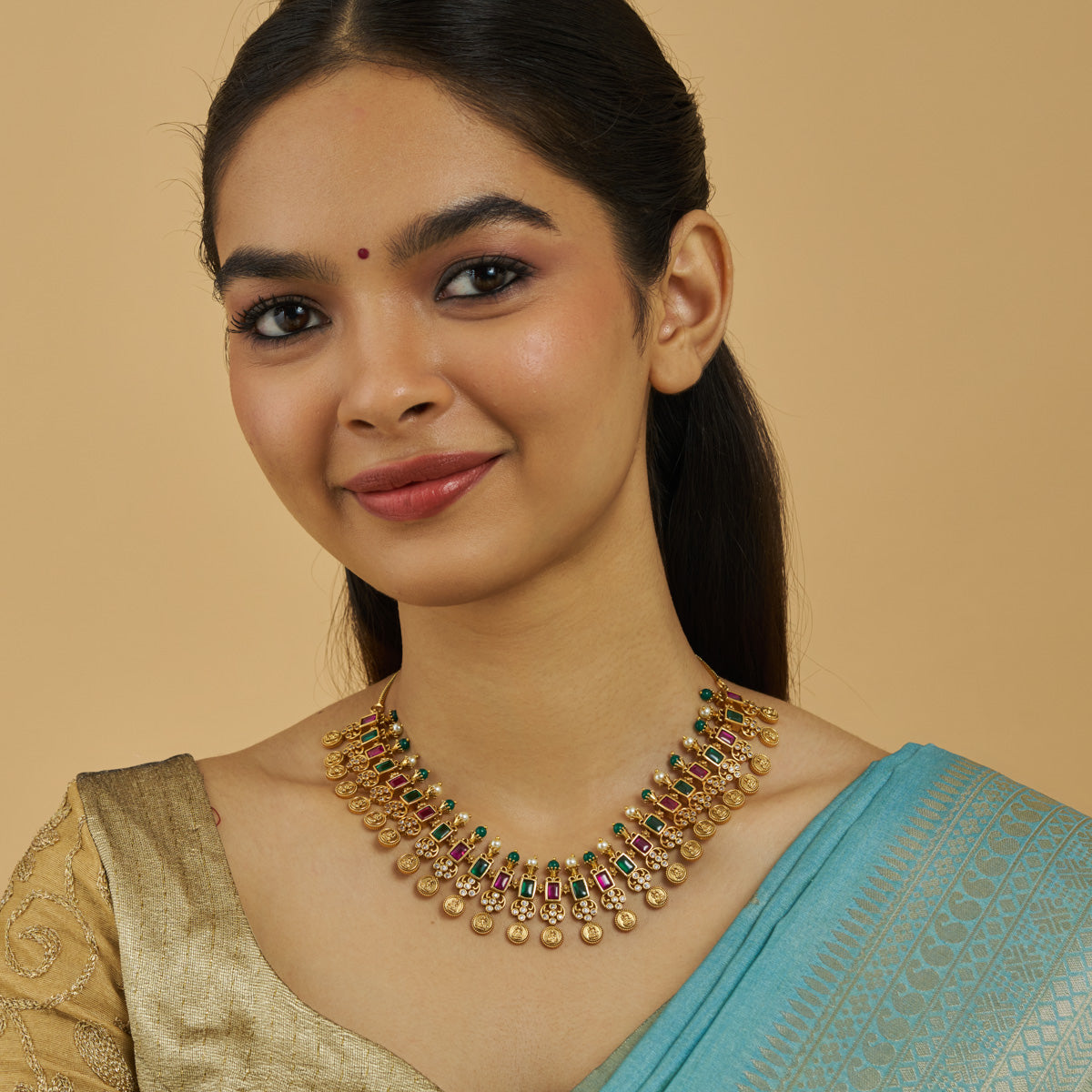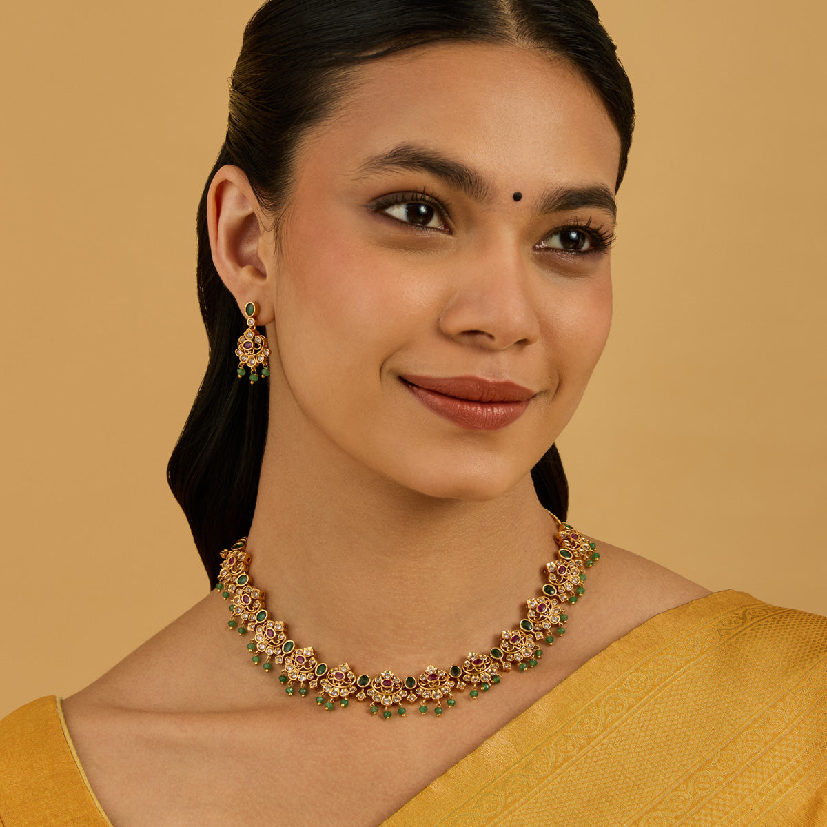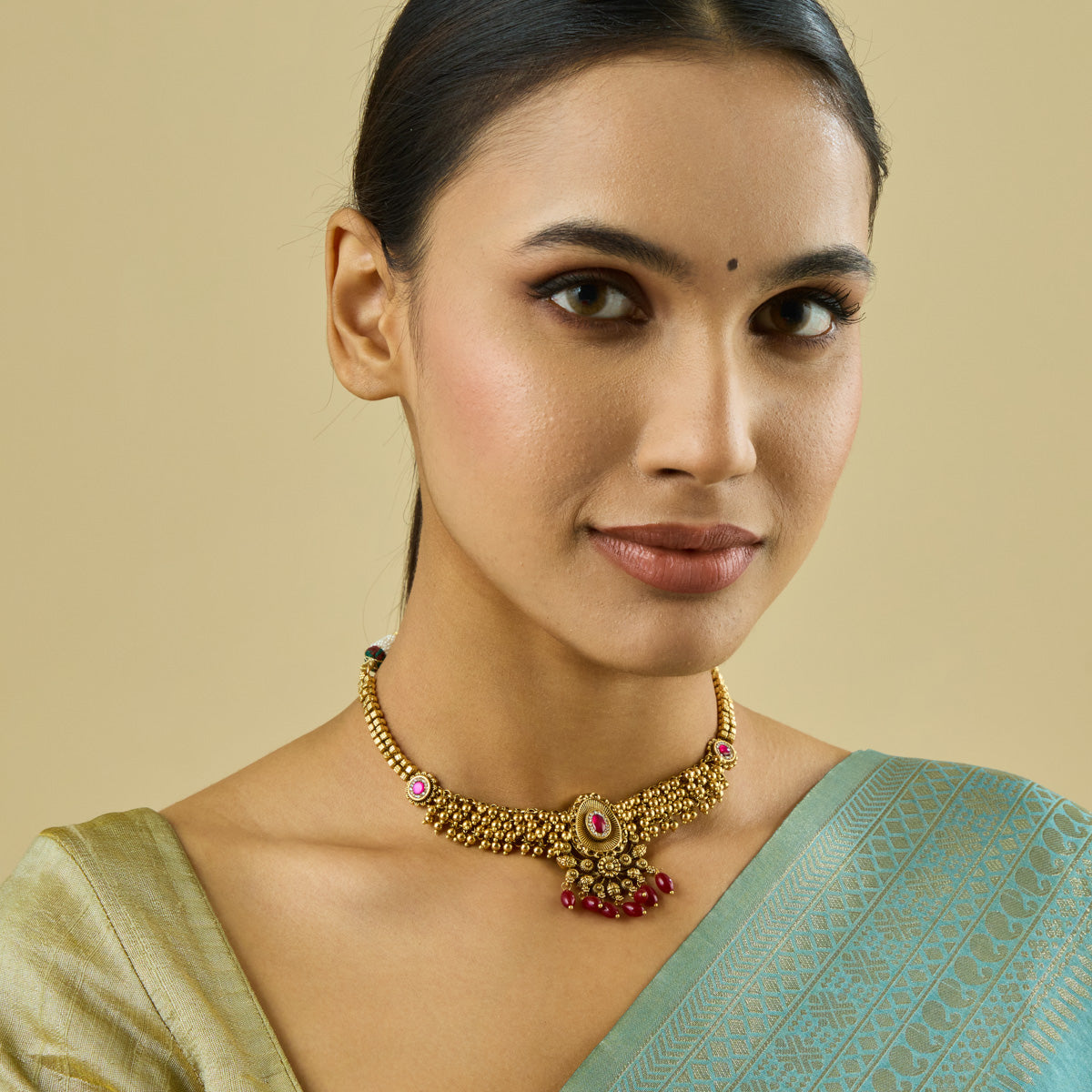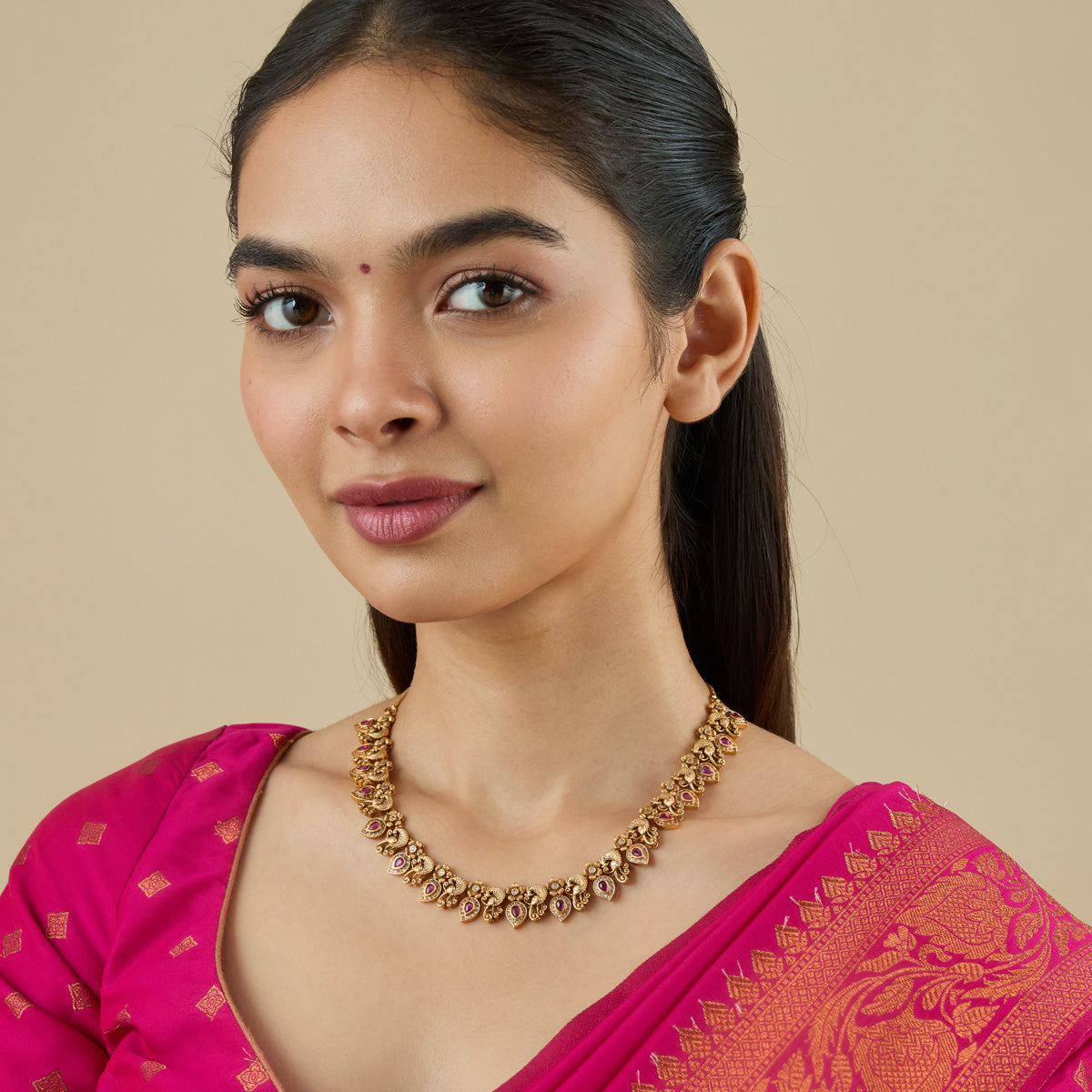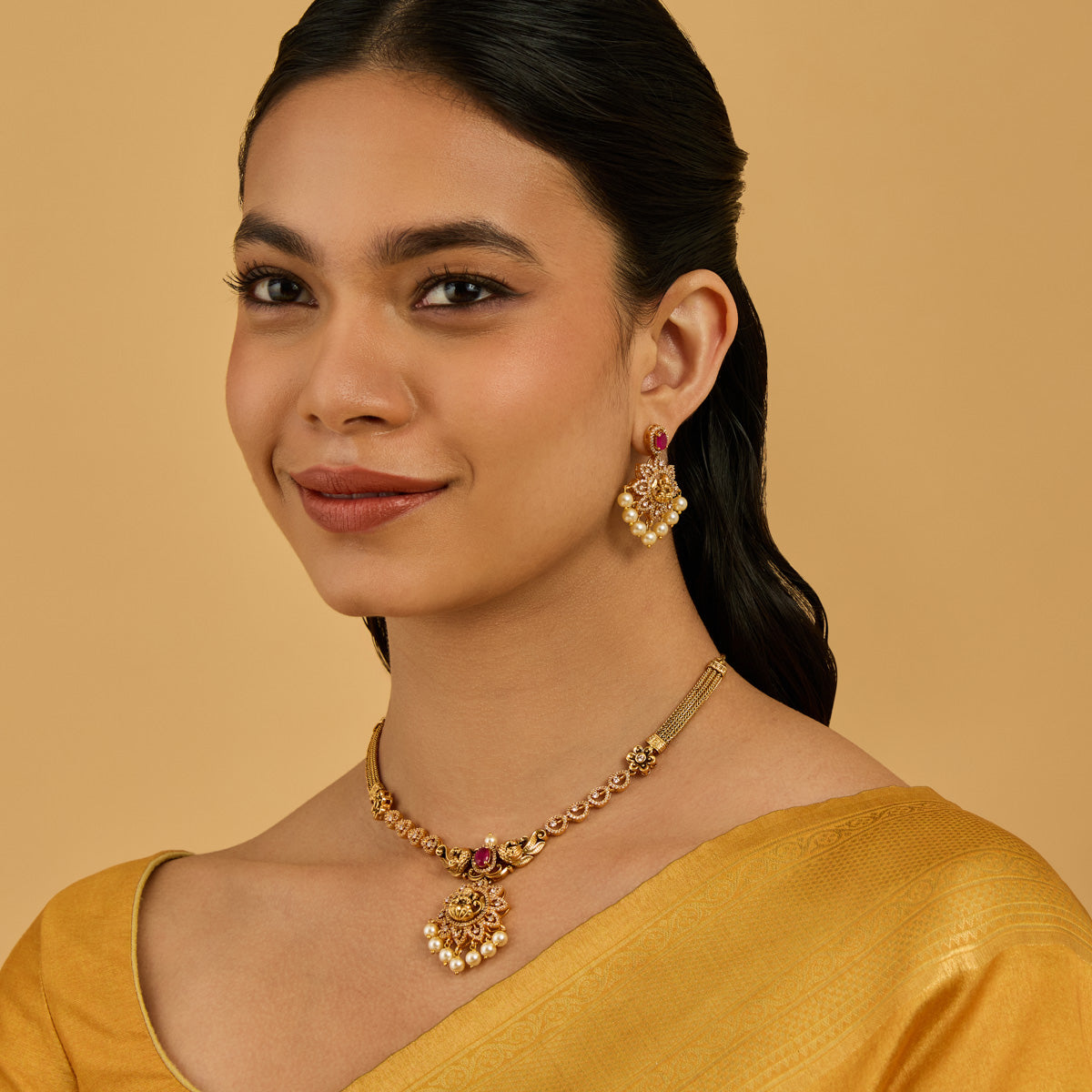 Antique necklaces are the beacon of Indian artistry, heritage and craftsmanship. Coveted by every Indian woman, antique-style jewelry takes the pedestal when it comes to the traditional dressing of our country. Featuring an inimitable mix of motifs and attention to detail, there is no end to the charms of antique-style jewelry.