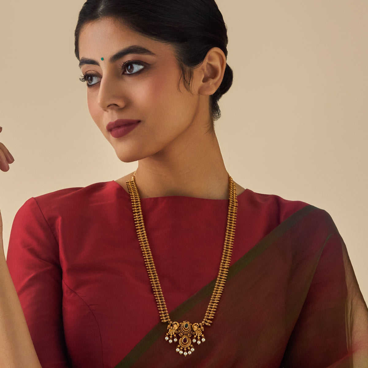 Antique necklaces are the beacon of Indian artistry, heritage and craftsmanship. Coveted by every Indian woman, antique-style jewelry takes the pedestal when it comes to the traditional dressing of our country. Featuring an inimitable mix of motifs and attention to detail, there is no end to the charms of antique-style jewelry.