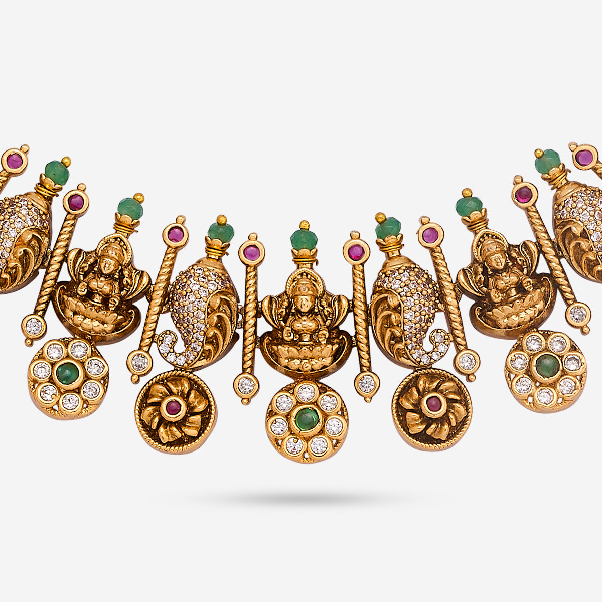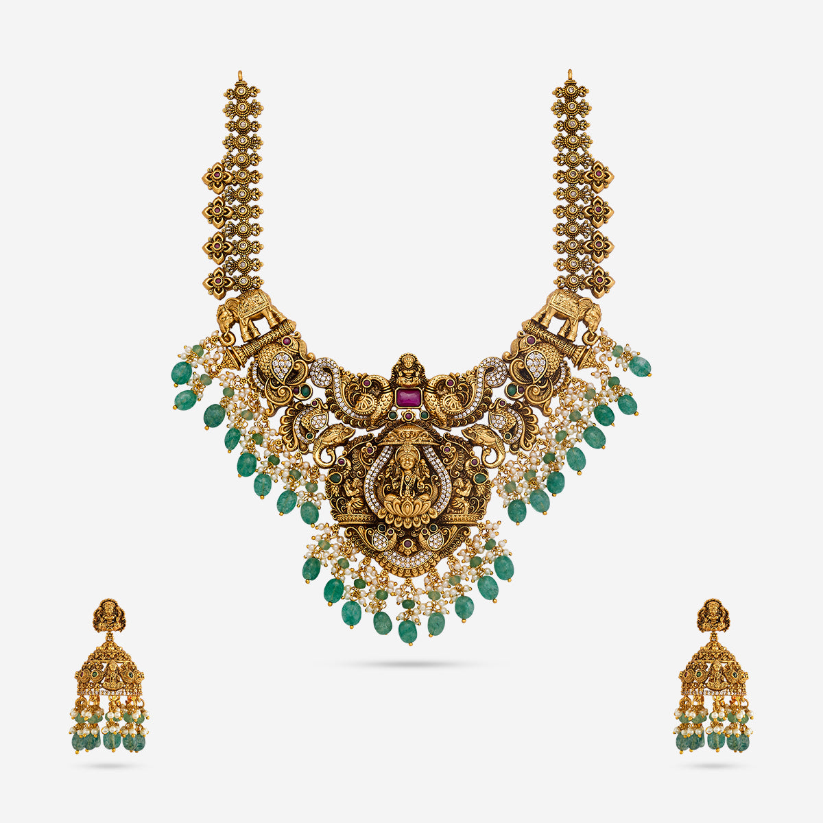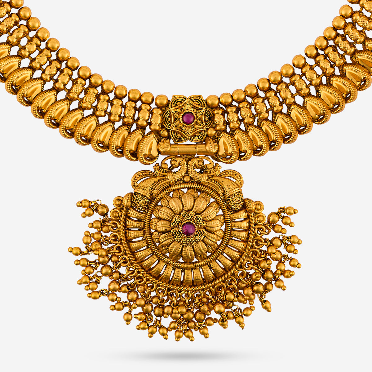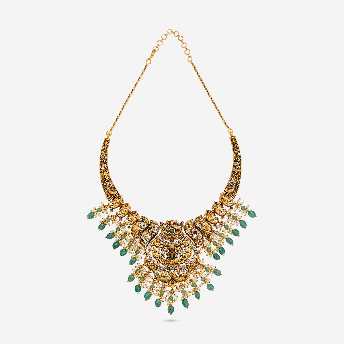 Antique necklaces are the beacon of Indian artistry, heritage and craftsmanship. Coveted by every Indian woman, antique-style jewelry takes the pedestal when it comes to the traditional dressing of our country. Featuring an inimitable mix of motifs and attention to detail, there is no end to the charms of antique-style jewelry.