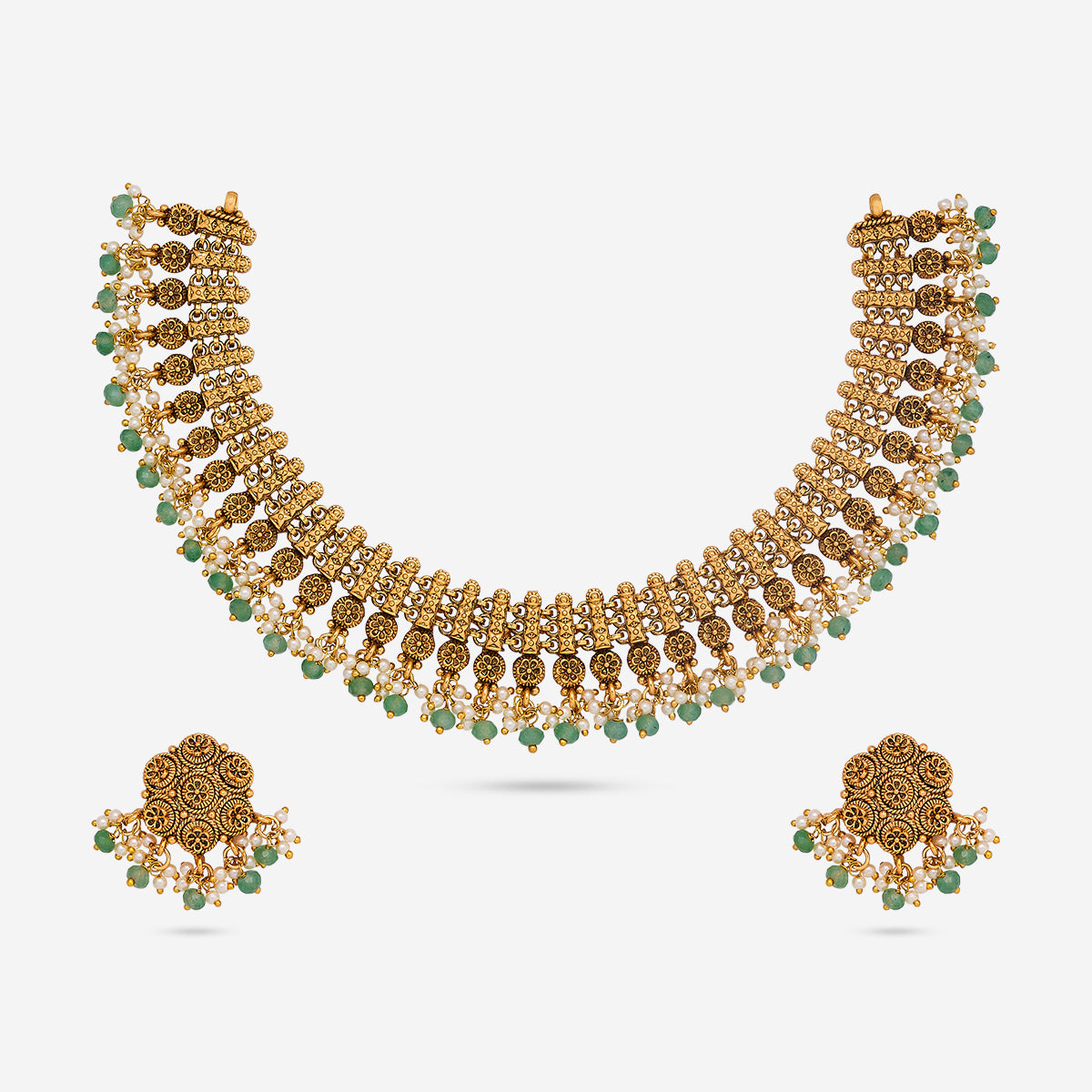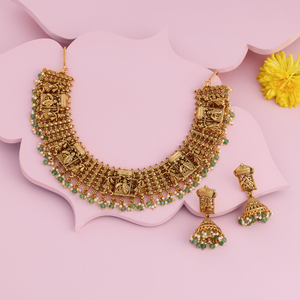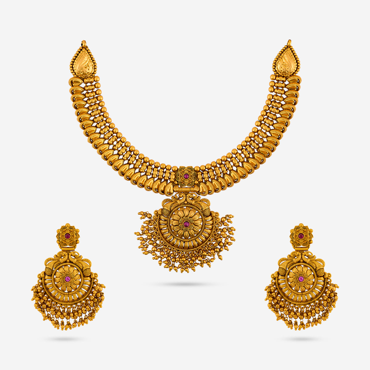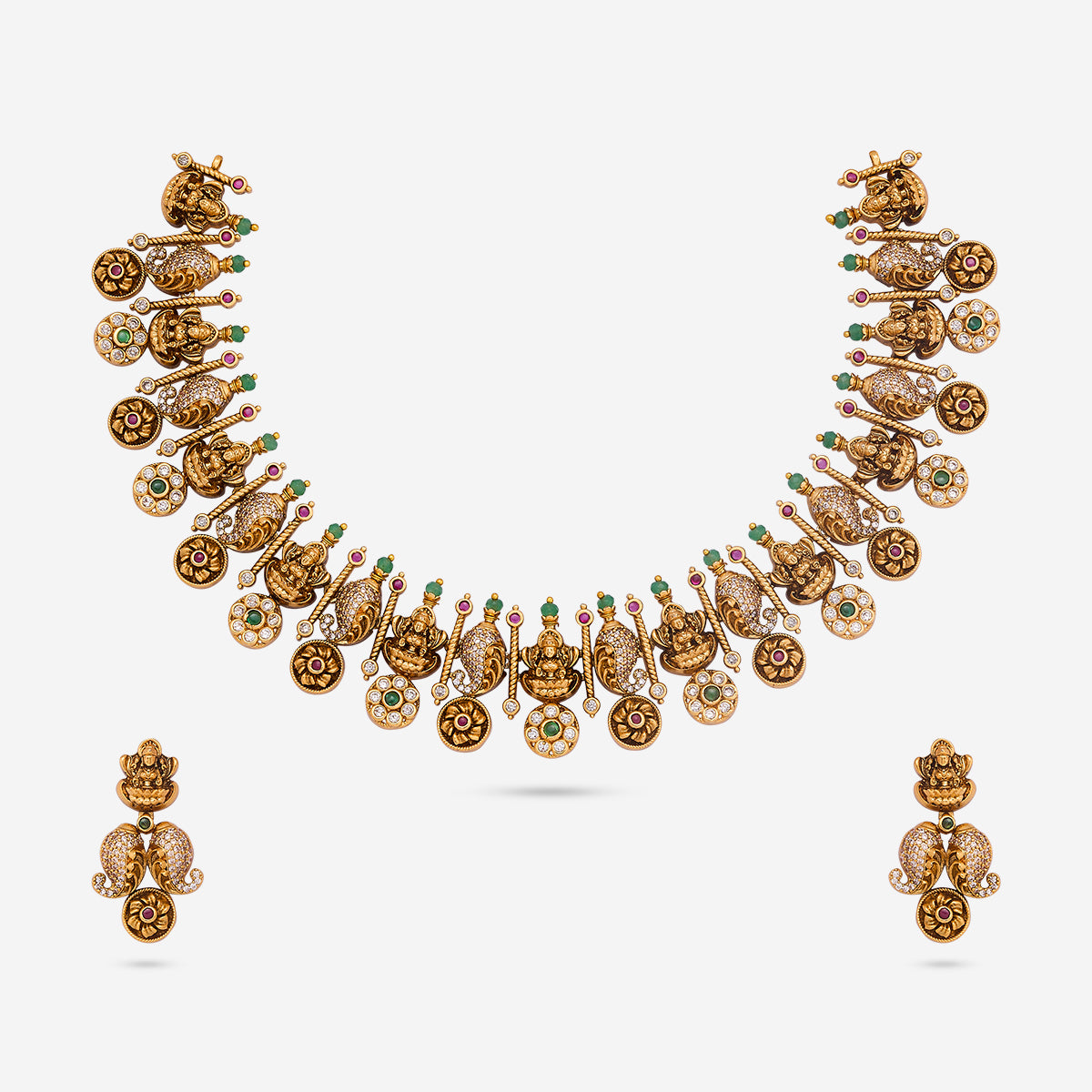 Antique necklaces are the beacon of Indian artistry, heritage and craftsmanship. Coveted by every Indian woman, antique-style jewelry takes the pedestal when it comes to the traditional dressing of our country. Featuring an inimitable mix of motifs and attention to detail, there is no end to the charms of antique-style jewelry.