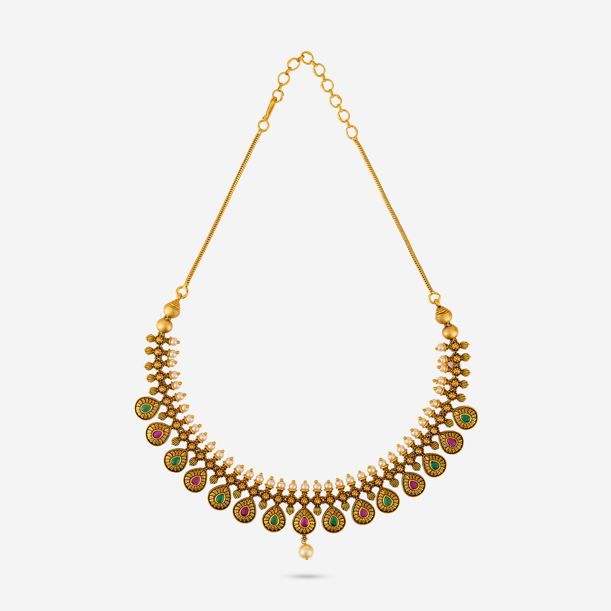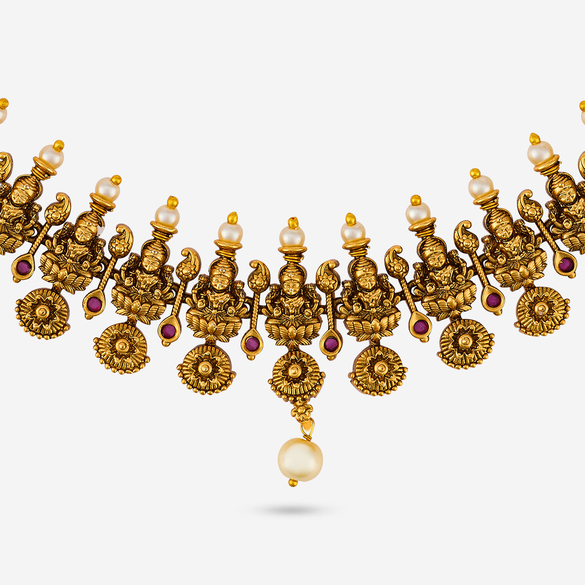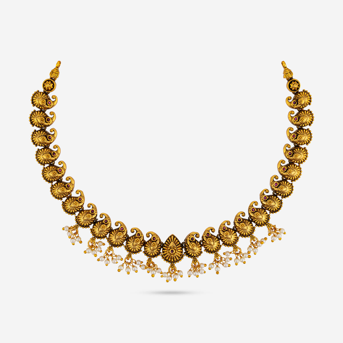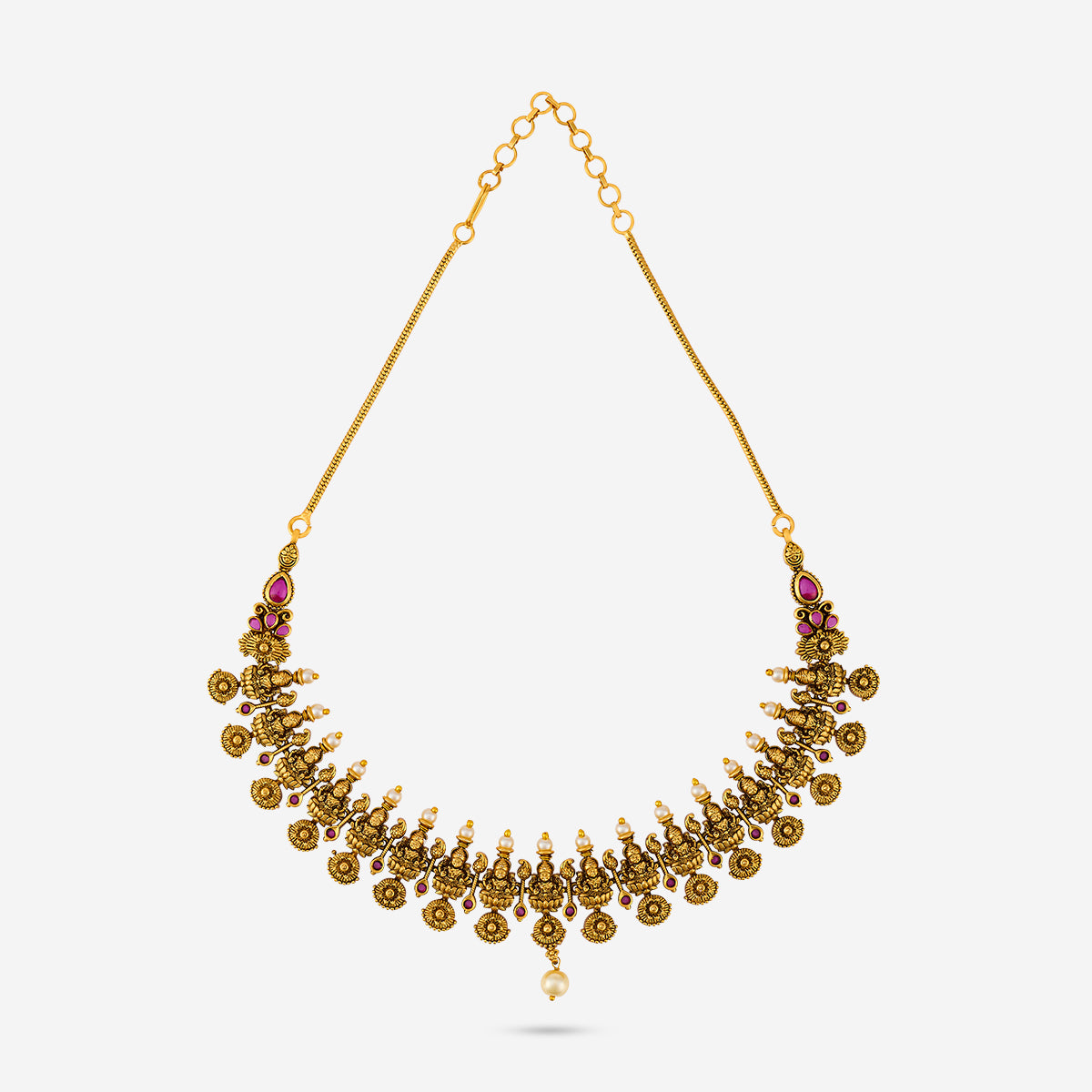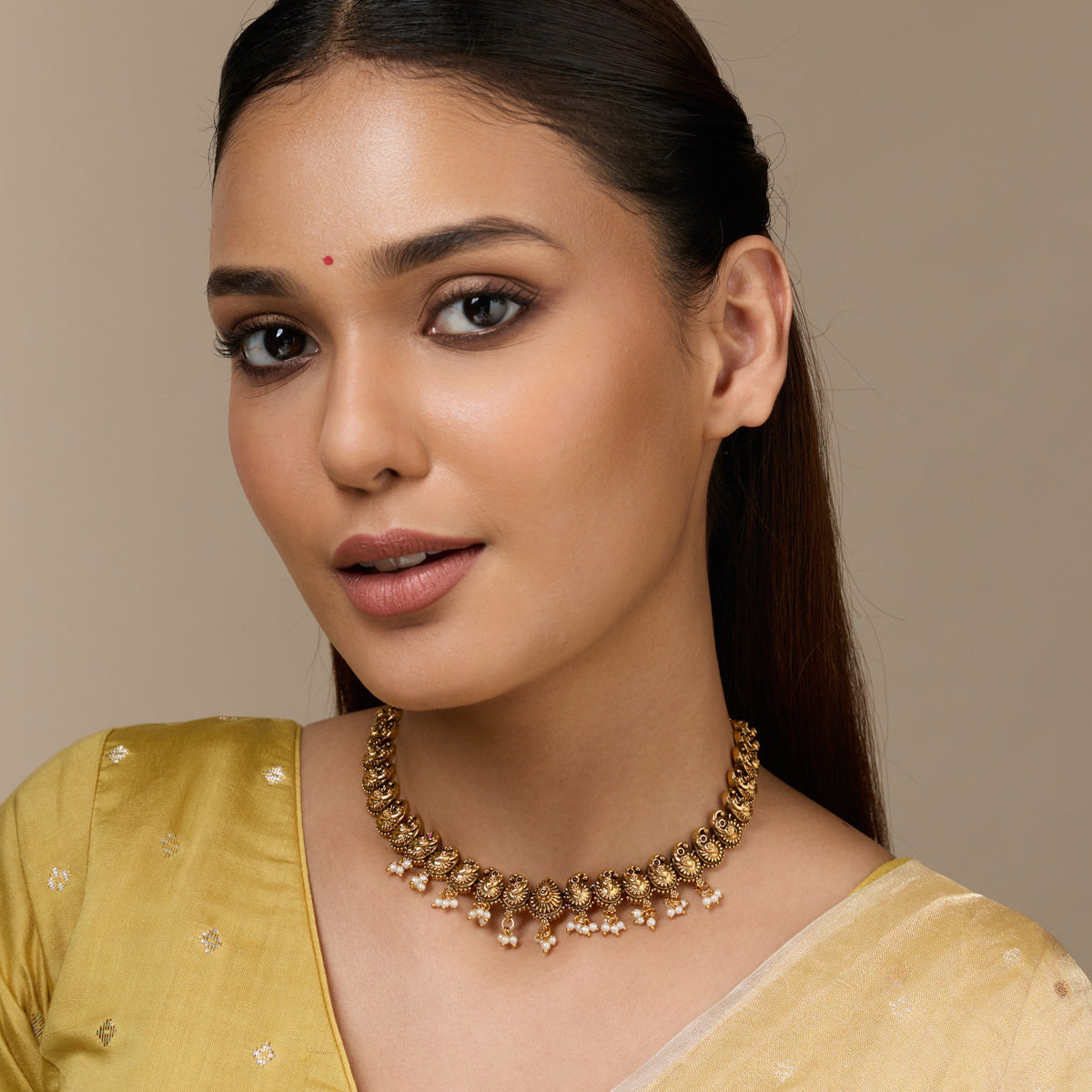 Antique necklaces are the beacon of Indian artistry, heritage and craftsmanship. Coveted by every Indian woman, antique-style jewelry takes the pedestal when it comes to the traditional dressing of our country. Featuring an inimitable mix of motifs and attention to detail, there is no end to the charms of antique-style jewelry.