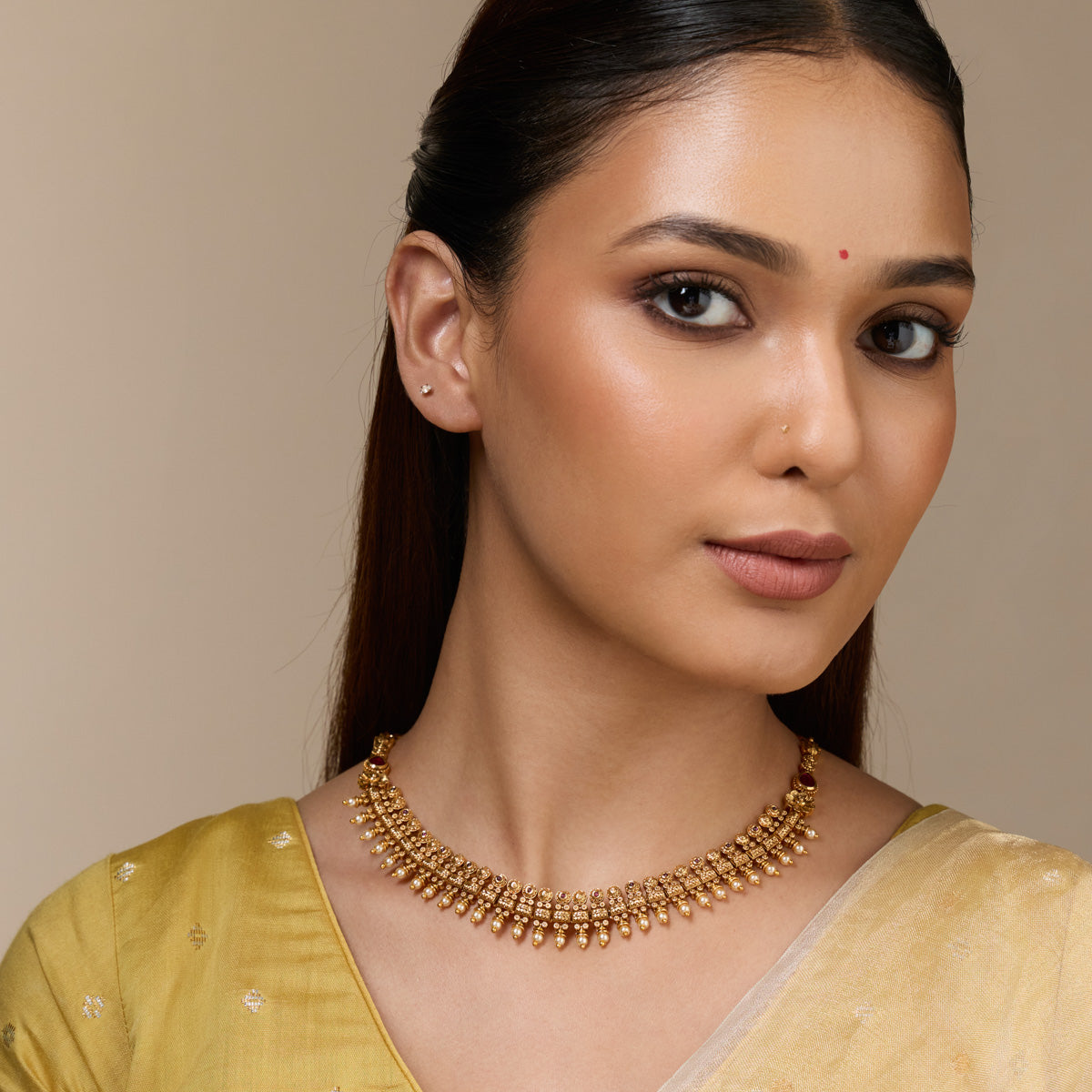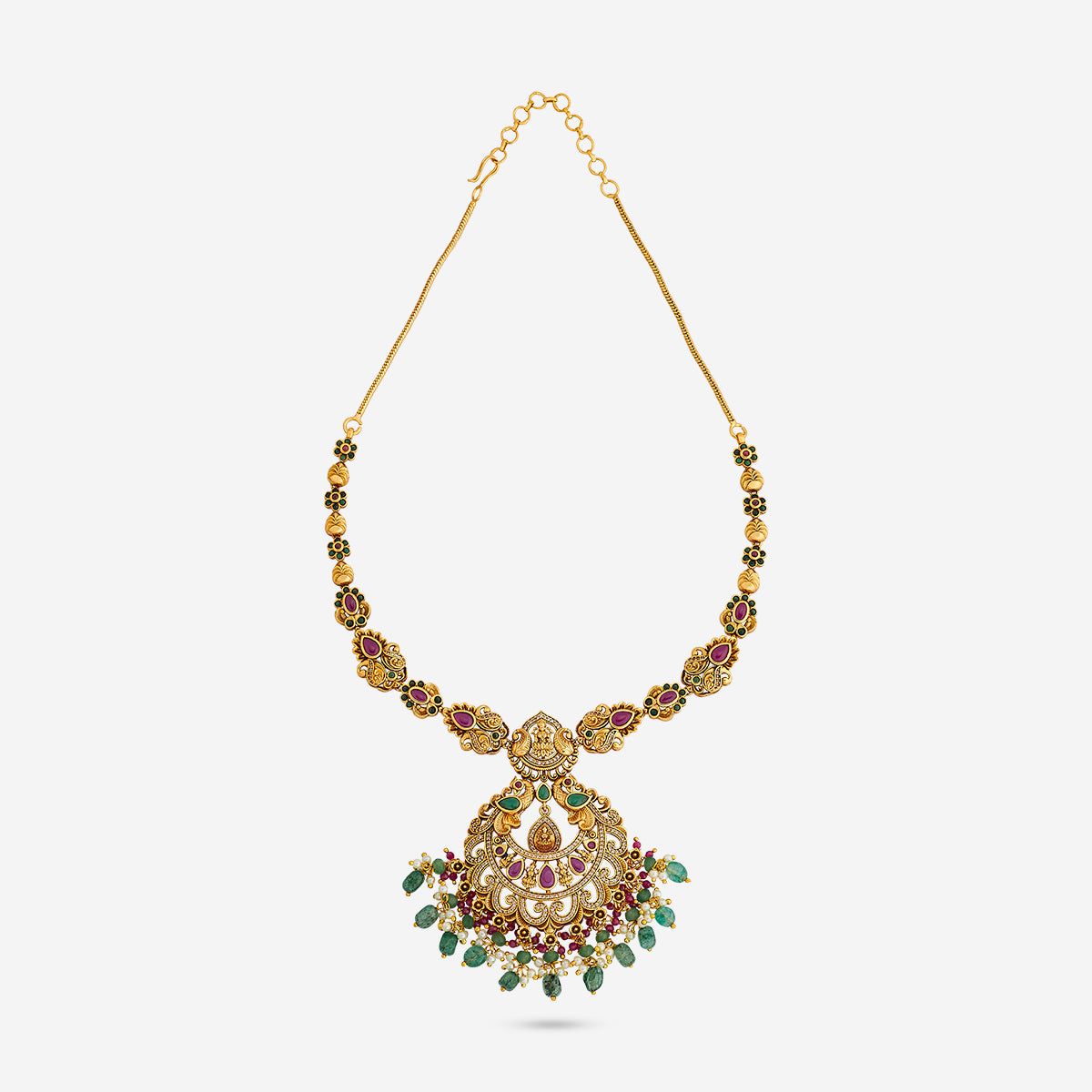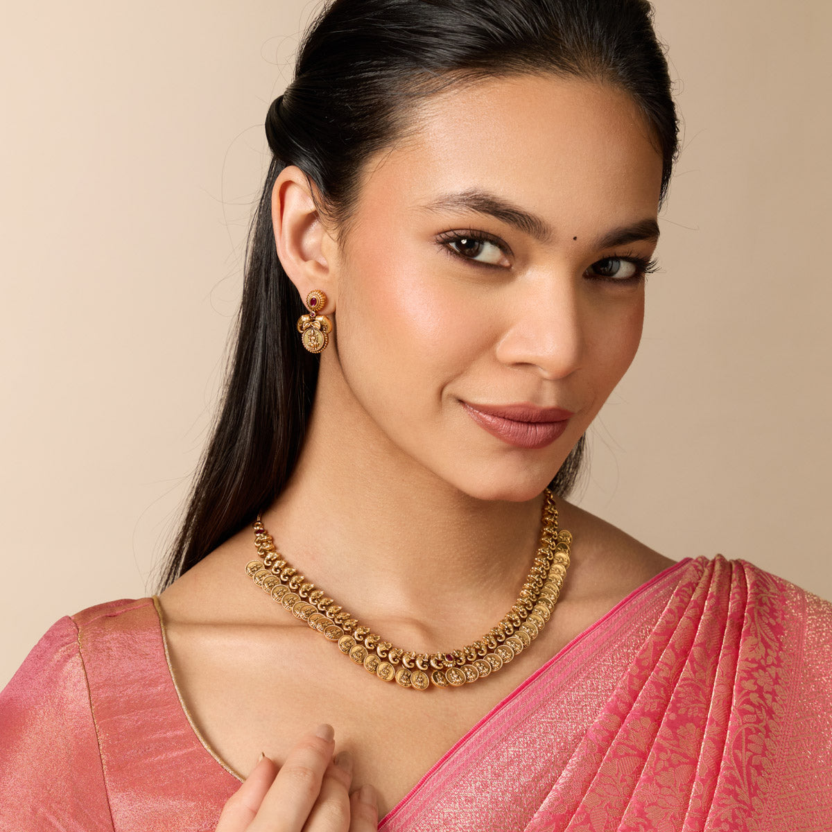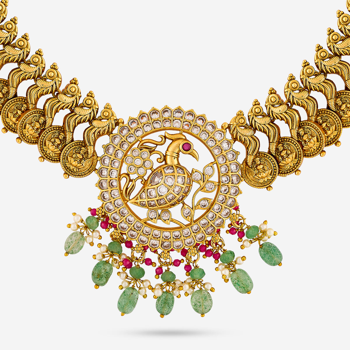 Antique necklaces are the beacon of Indian artistry, heritage and craftsmanship. Coveted by every Indian woman, antique-style jewelry takes the pedestal when it comes to the traditional dressing of our country. Featuring an inimitable mix of motifs and attention to detail, there is no end to the charms of antique-style jewelry.