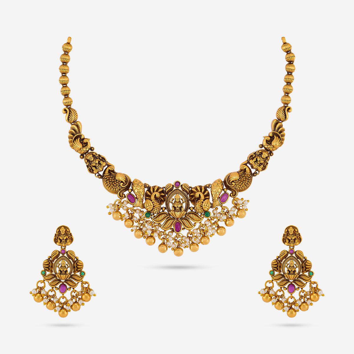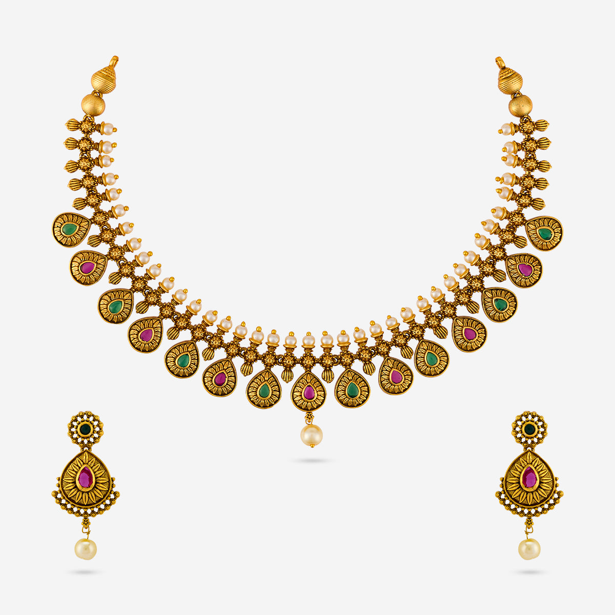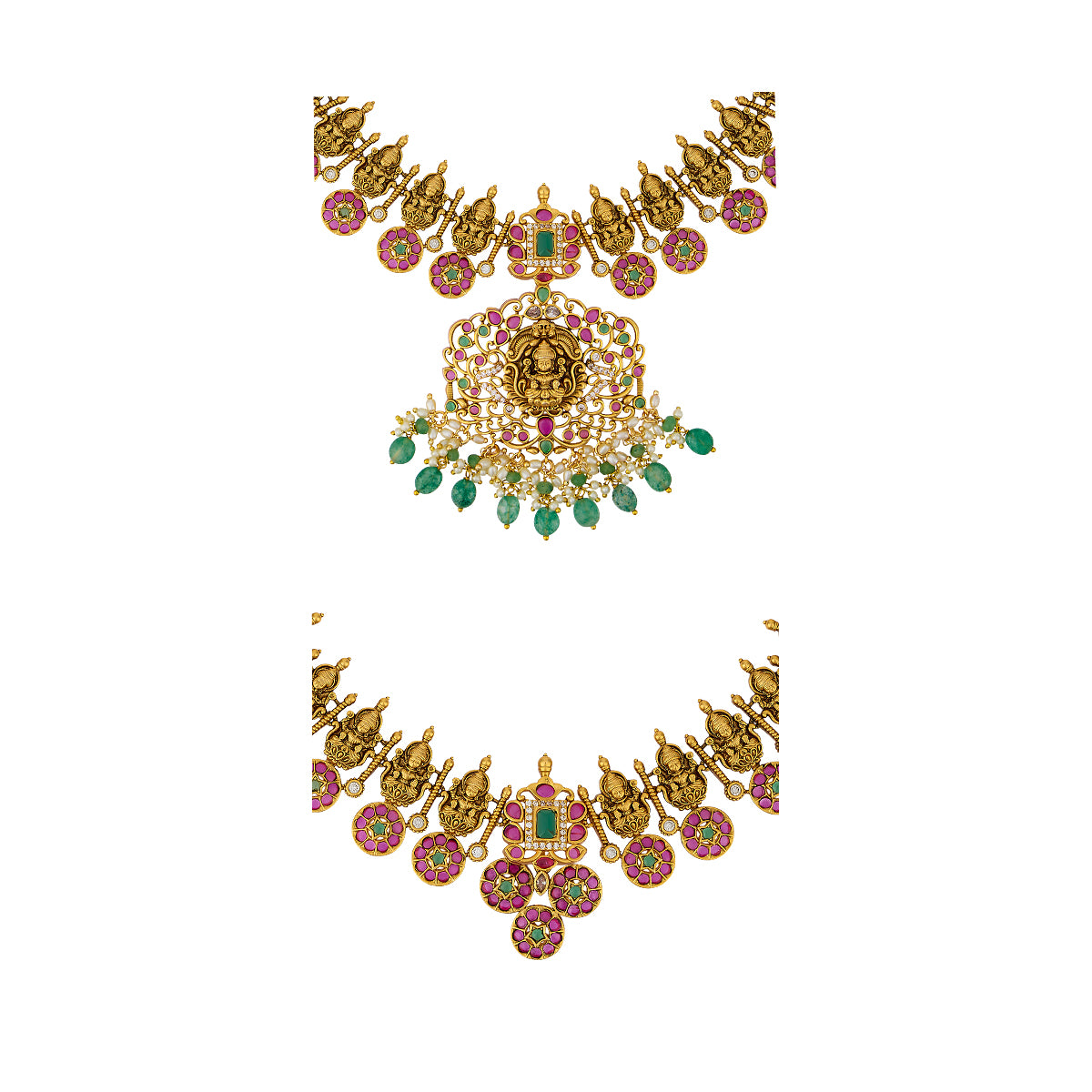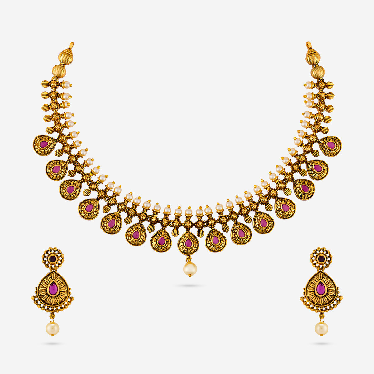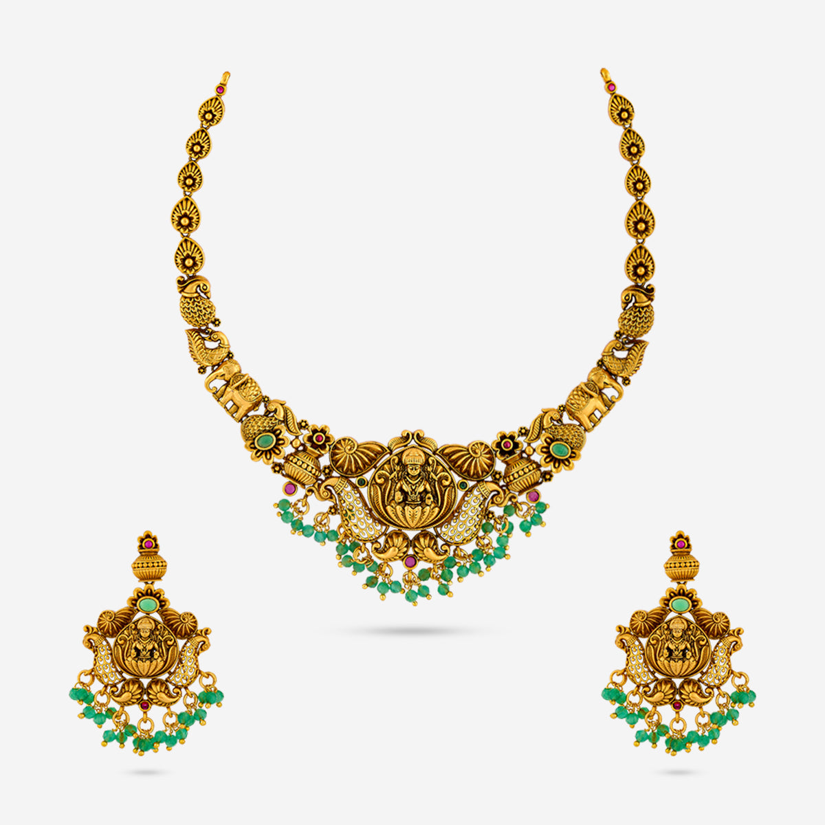 Antique necklaces are the beacon of Indian artistry, heritage and craftsmanship. Coveted by every Indian woman, antique-style jewelry takes the pedestal when it comes to the traditional dressing of our country. Featuring an inimitable mix of motifs and attention to detail, there is no end to the charms of antique-style jewelry.