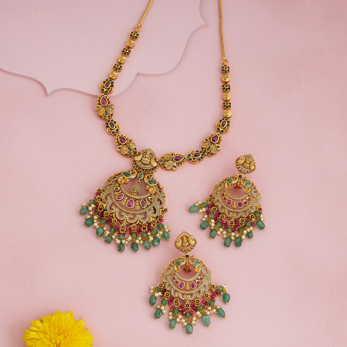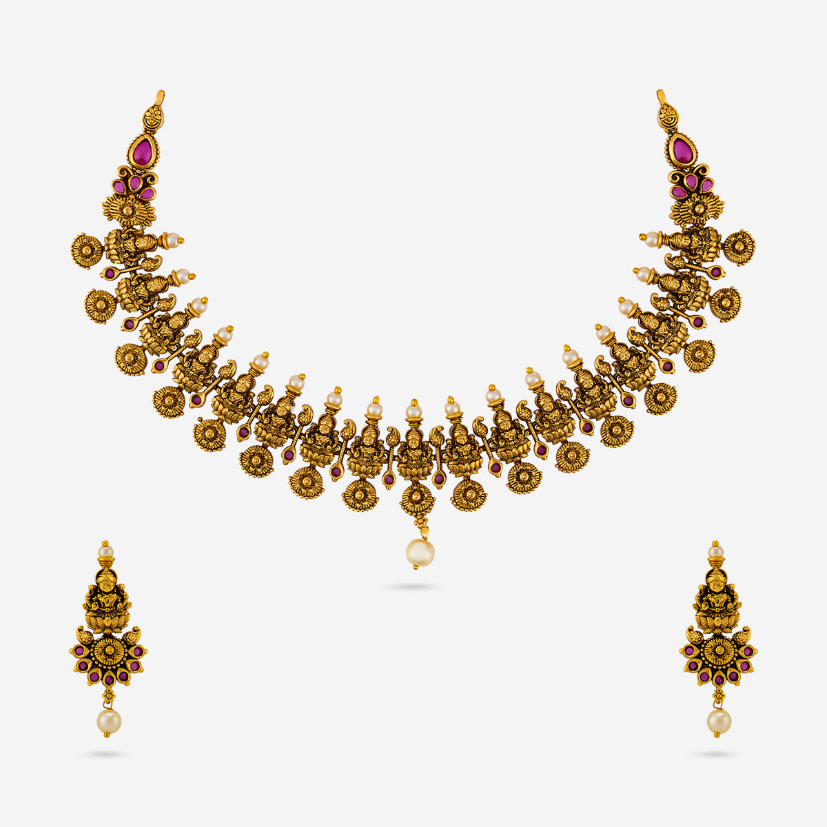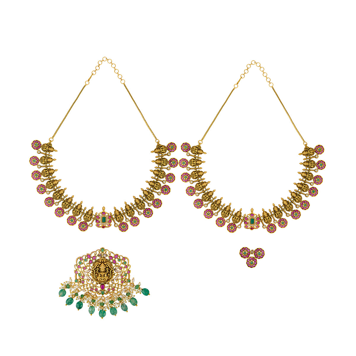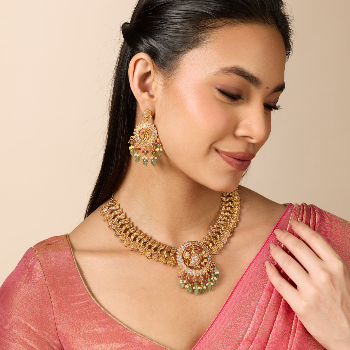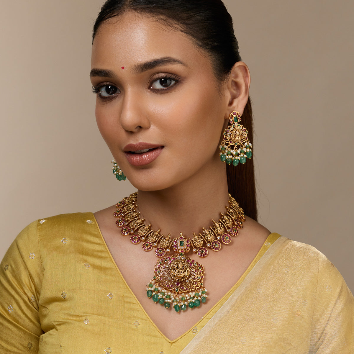 Antique necklaces are the beacon of Indian artistry, heritage and craftsmanship. Coveted by every Indian woman, antique-style jewelry takes the pedestal when it comes to the traditional dressing of our country. Featuring an inimitable mix of motifs and attention to detail, there is no end to the charms of antique-style jewelry.