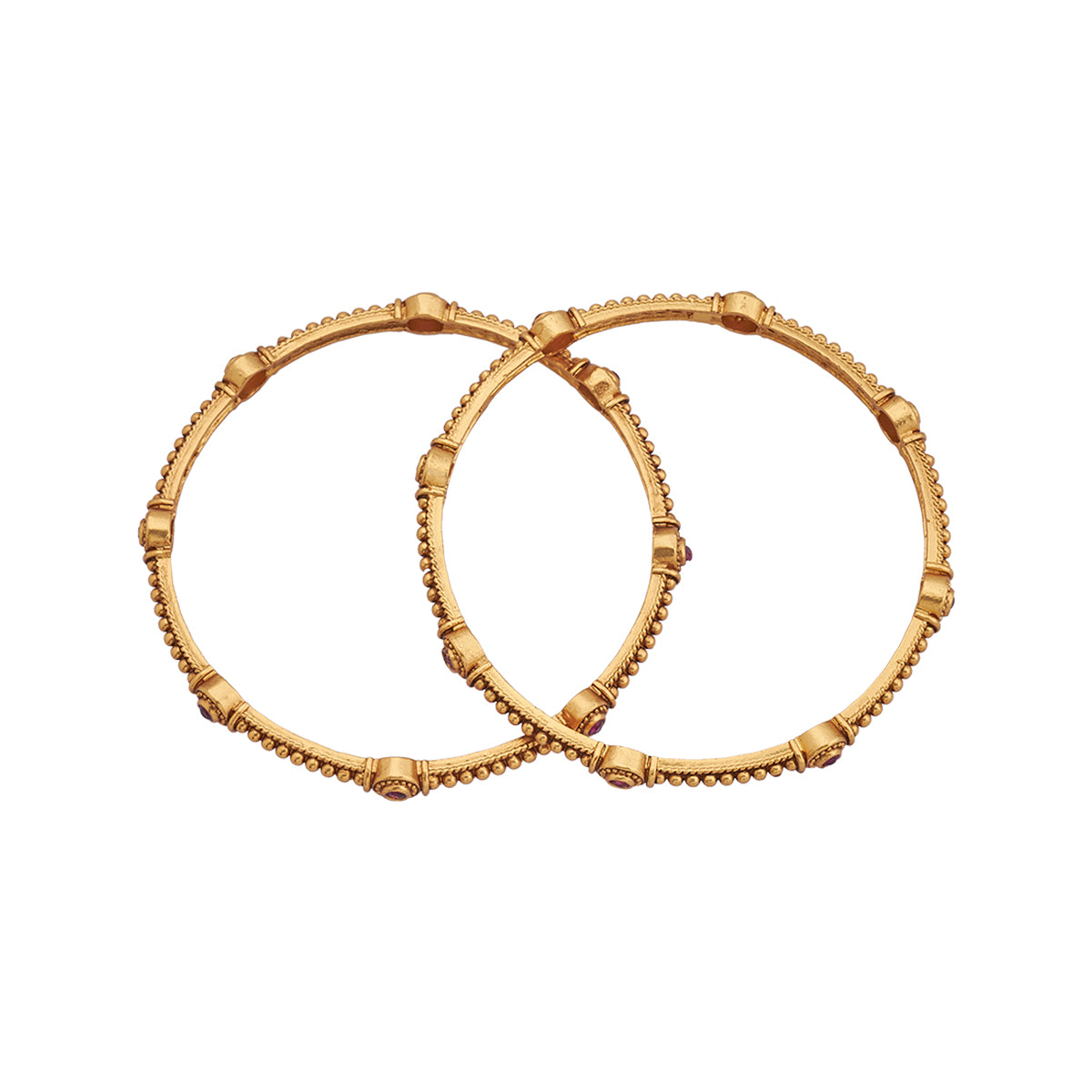 Looking for the perfect accessory to make a statement? Look no further than our sensational antique bangle. Crafted from a lightweight copper alloy base metal and featuring a stunning ruby synthetic stone, this bangle is a masterpiece. Its stylish and alluring gold polished finish and intricate design will effortlessly upgrade your look.