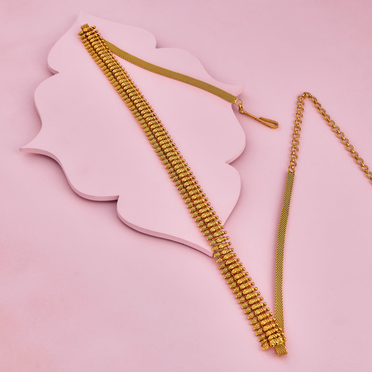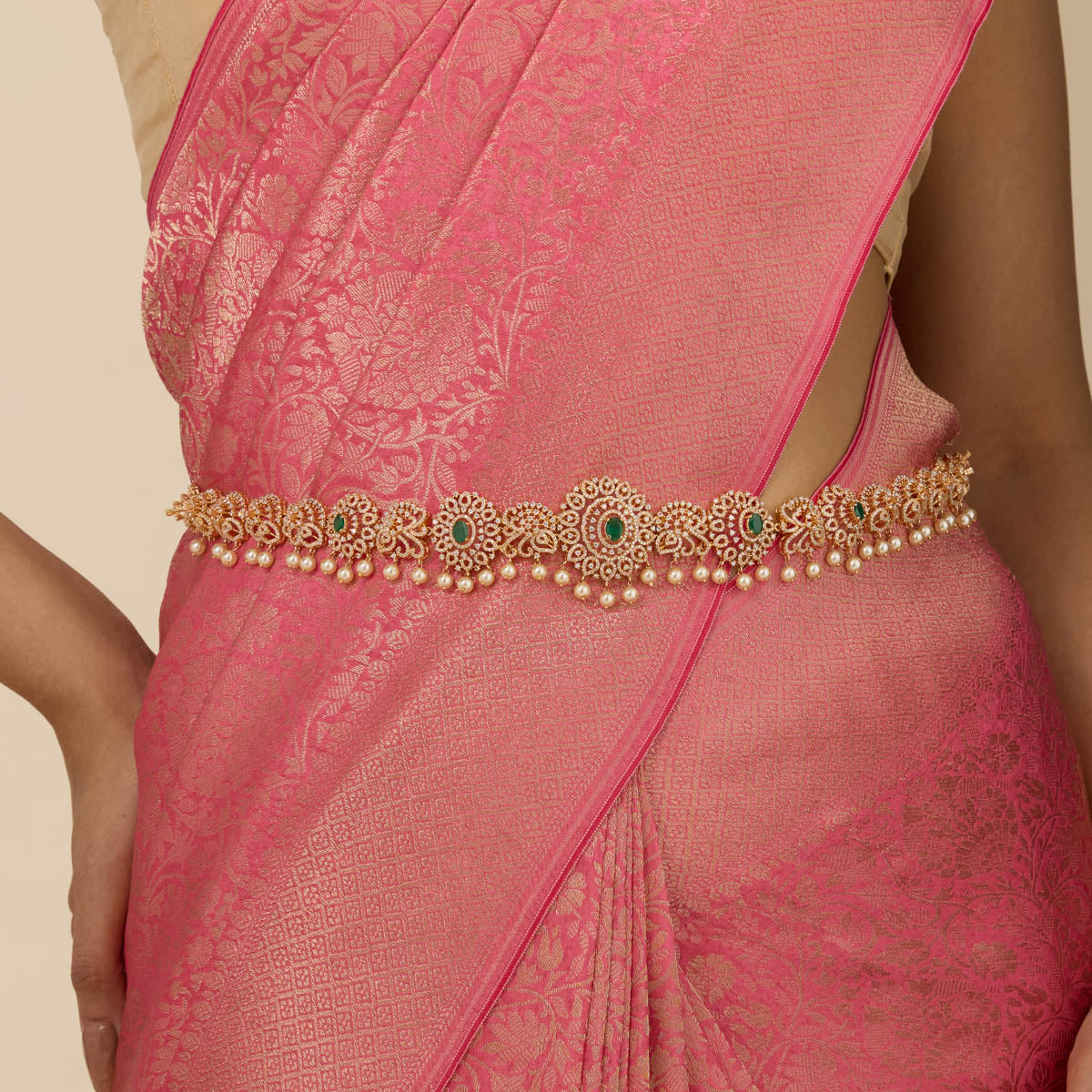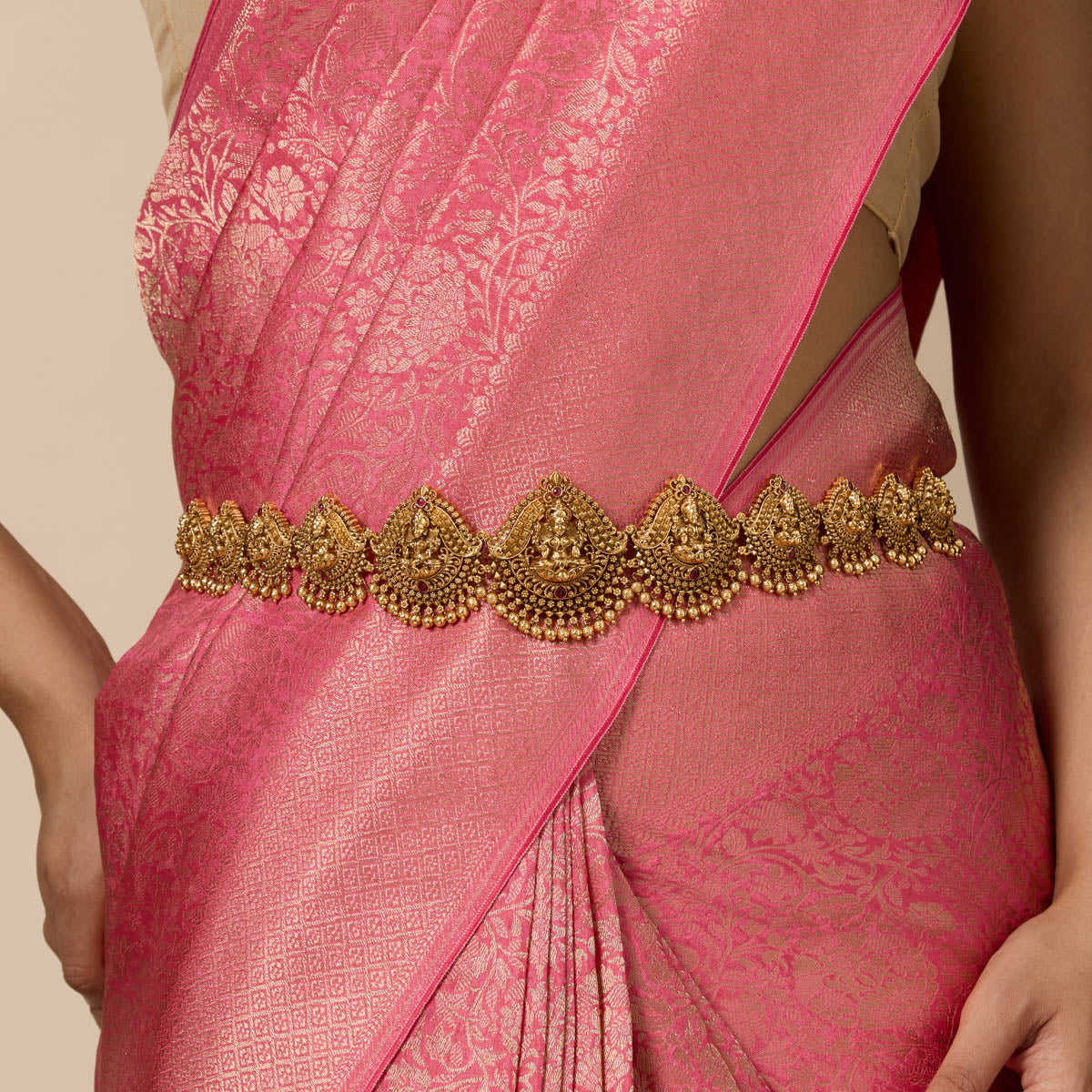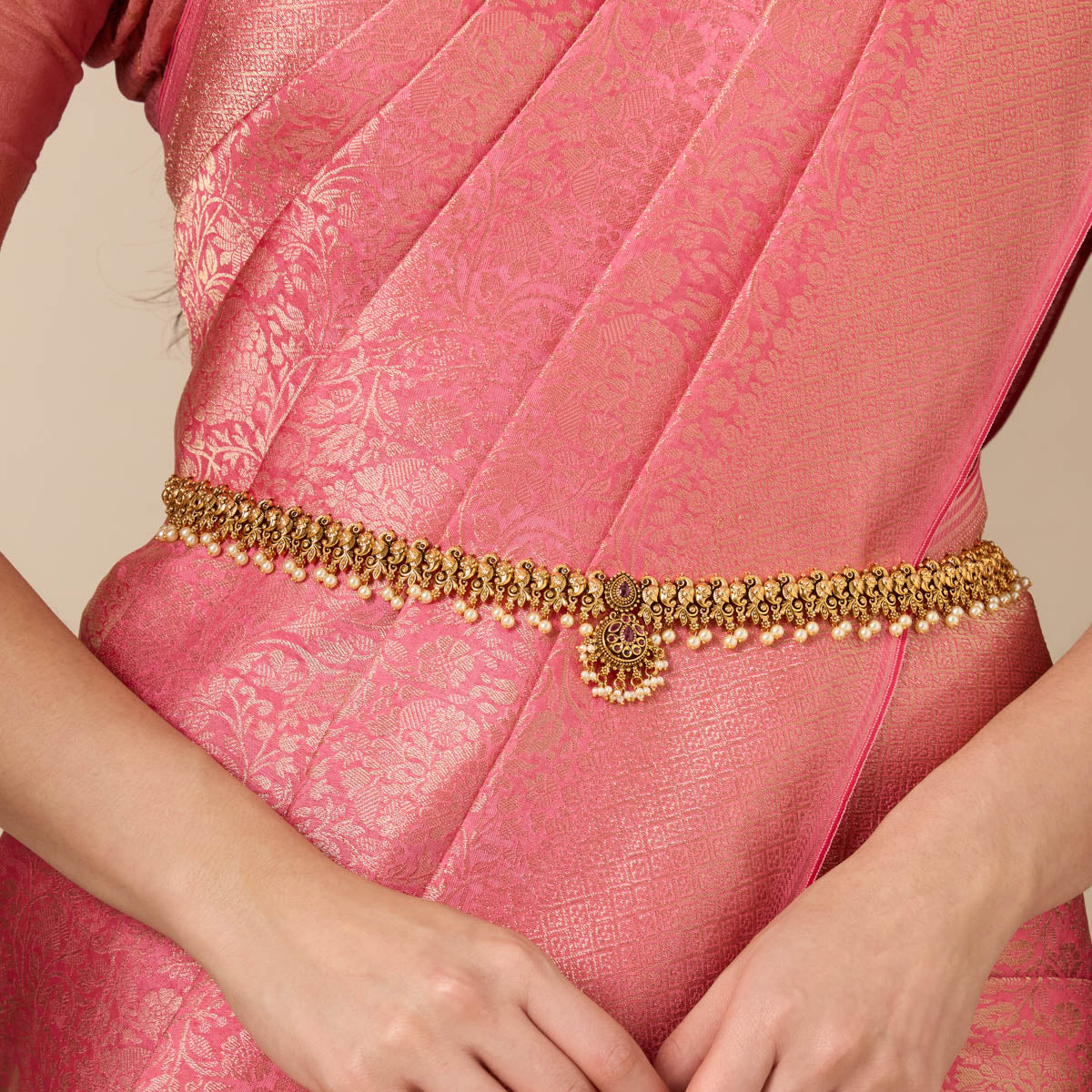 Adorn your silhouette with the beauty of a Waistbelt - also called a Waist Chain, hip belt, kamarbandh, vaddanam, oddiyanam, or tagdi - a piece that transcends trend and tradition. This exquisite jewelry enhances your waistline and becomes an essential expression of sensual grace. Whether you're elevating your festive attire or styling your beachwear, a well-crafted waist chain or belly chain becomes the focal point of your look.