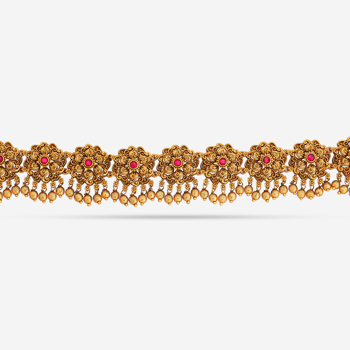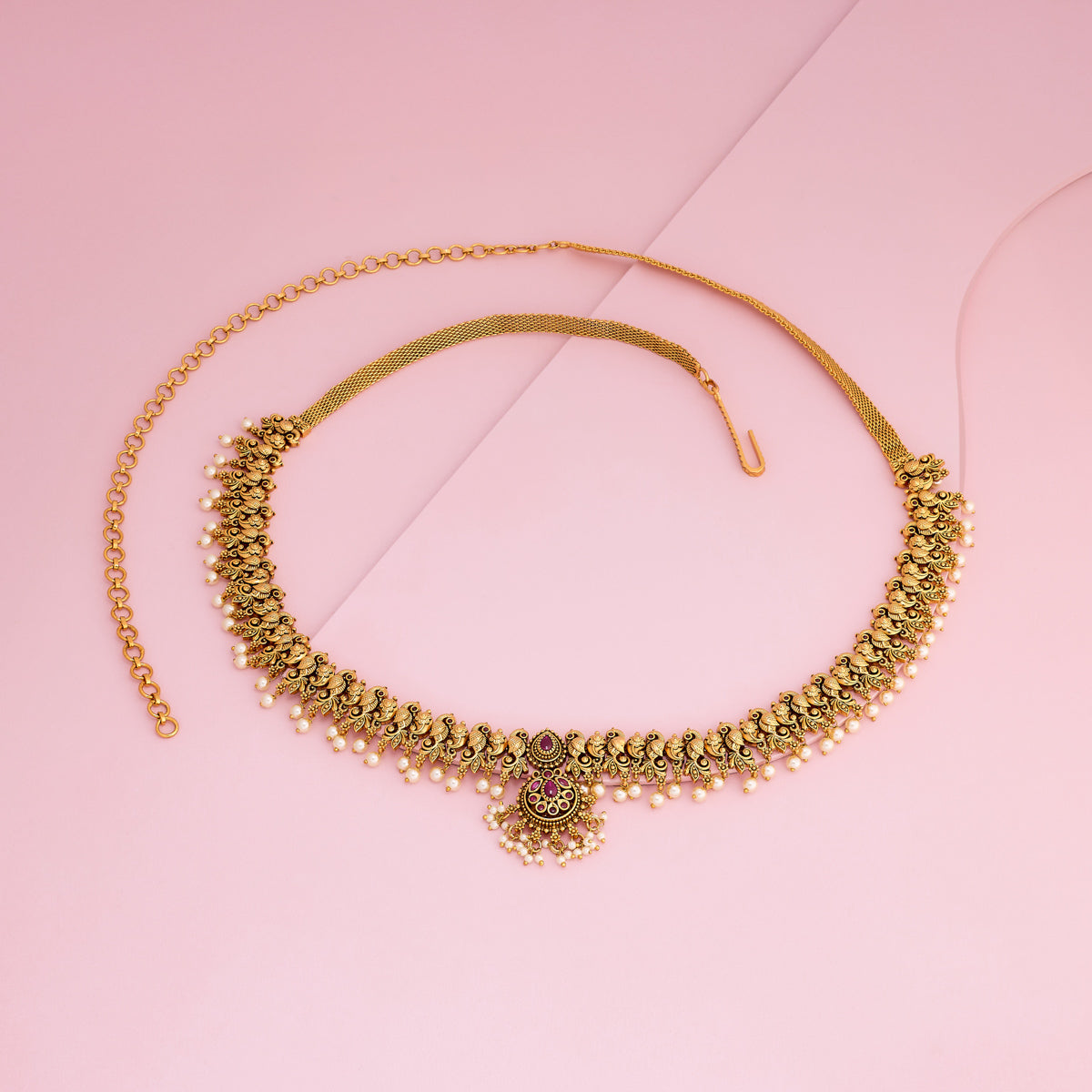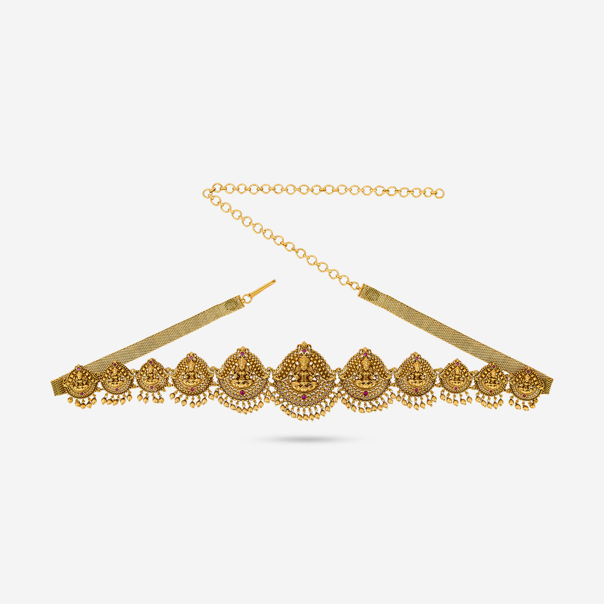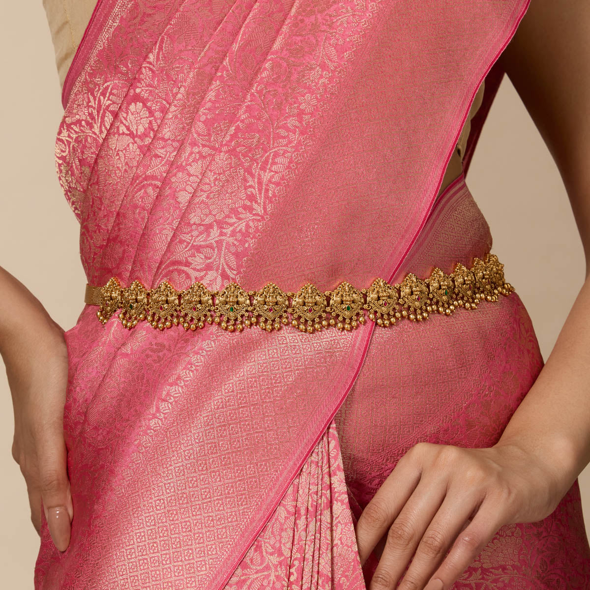 Adorn your silhouette with the beauty of a Waistbelt - also called a Waist Chain, hip belt, kamarbandh, vaddanam, oddiyanam, or tagdi - a piece that transcends trend and tradition. This exquisite jewelry enhances your waistline and becomes an essential expression of sensual grace. Whether you're elevating your festive attire or styling your beachwear, a well-crafted waist chain or belly chain becomes the focal point of your look.