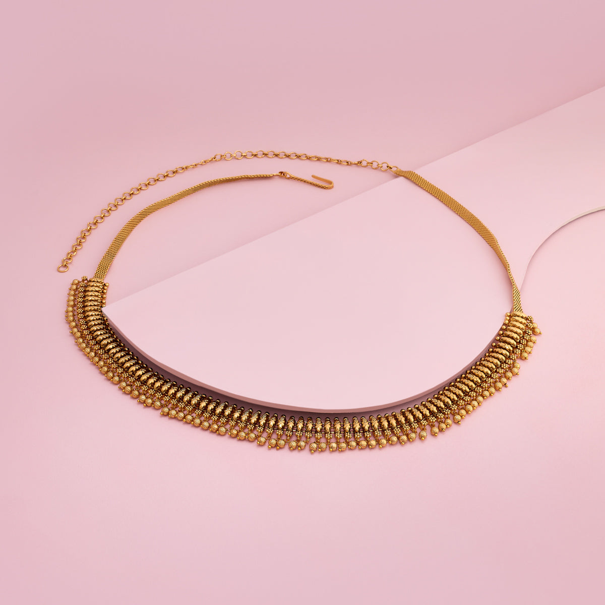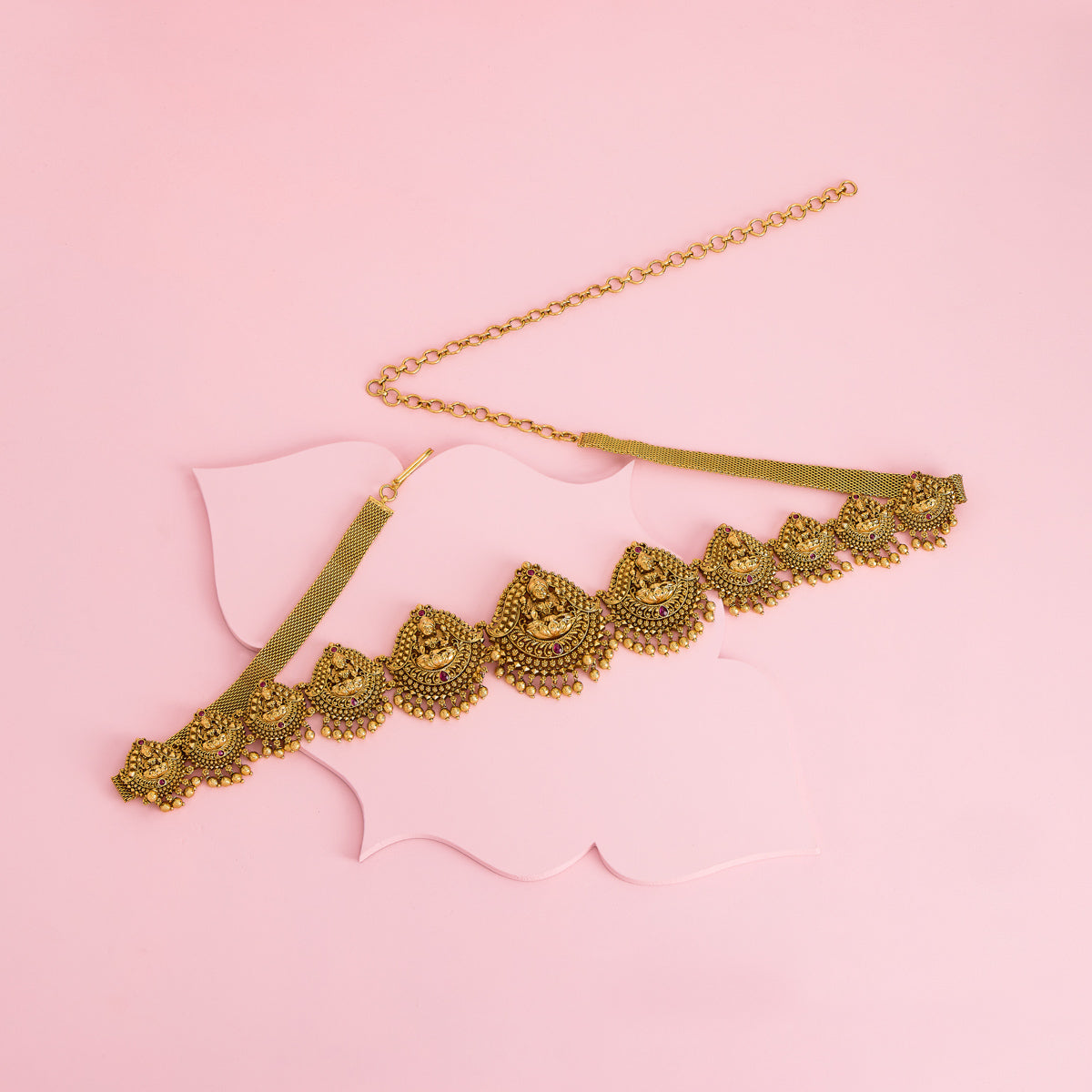 Embellished with fine, intricate motifs, our Kamarbandh-inspired pieces drape elegantly along the waistline, offering you the perfect stomach chain for weddings, festive soirées, and intimate celebrations.