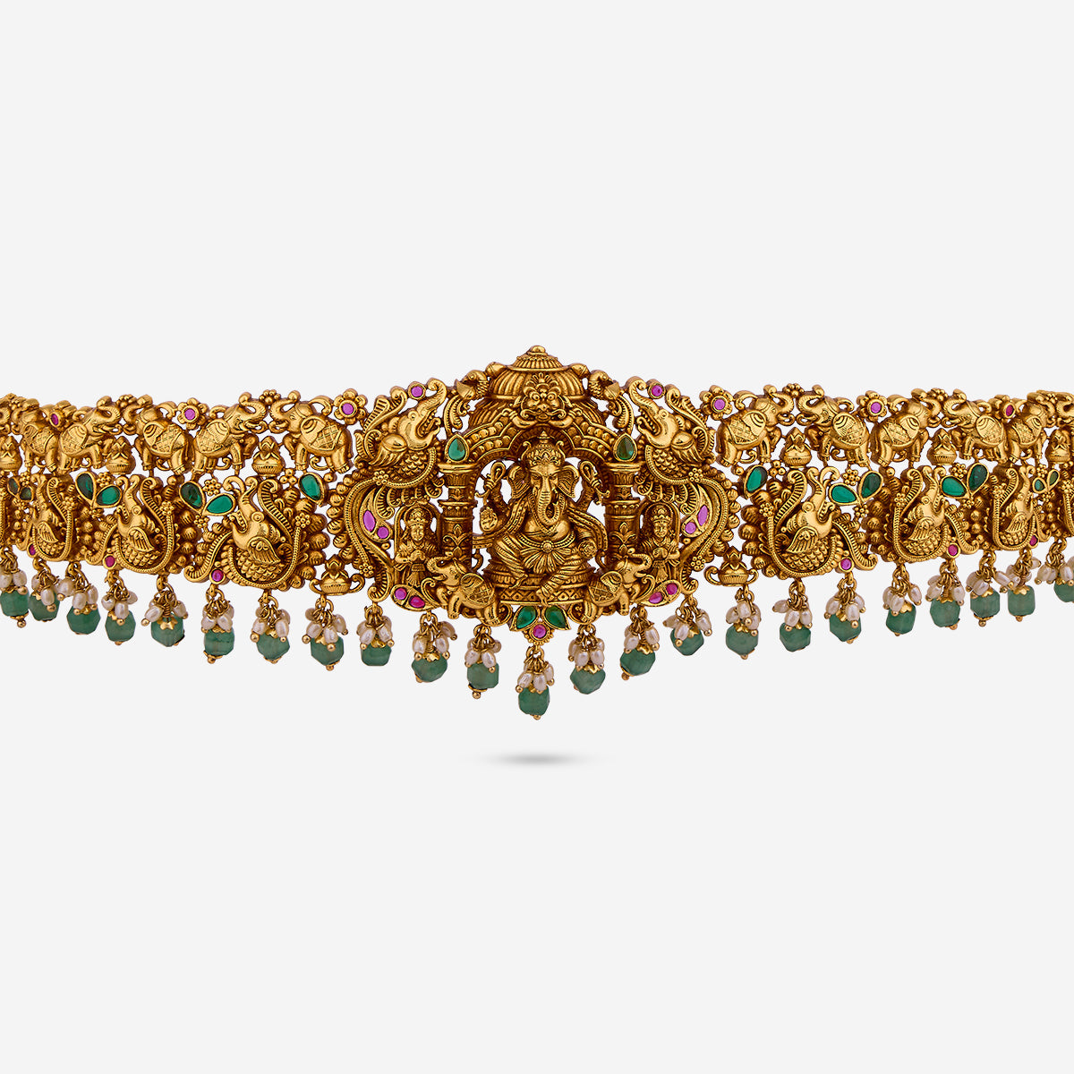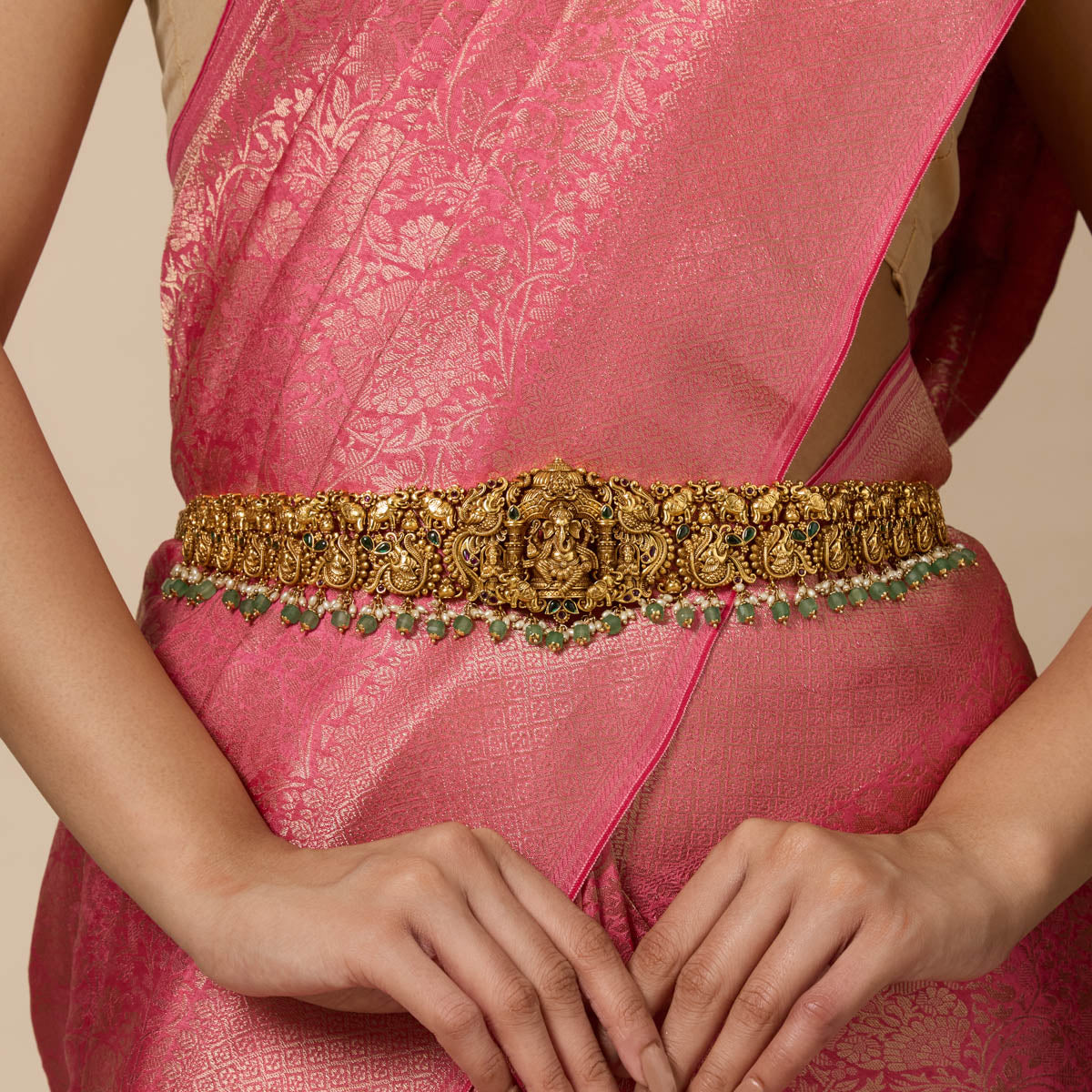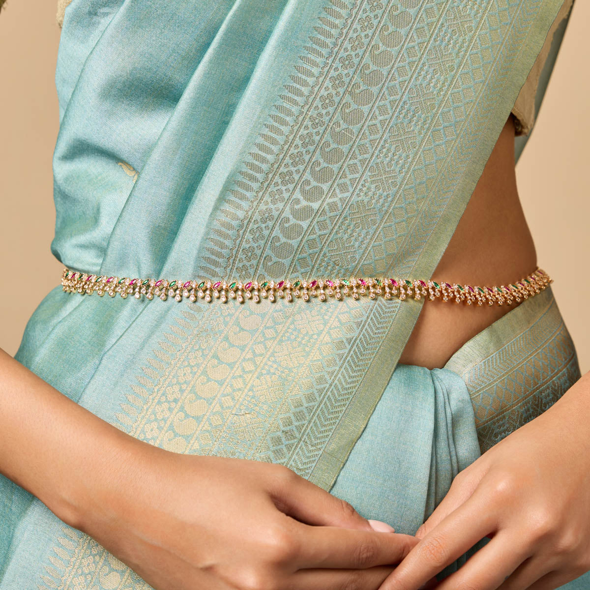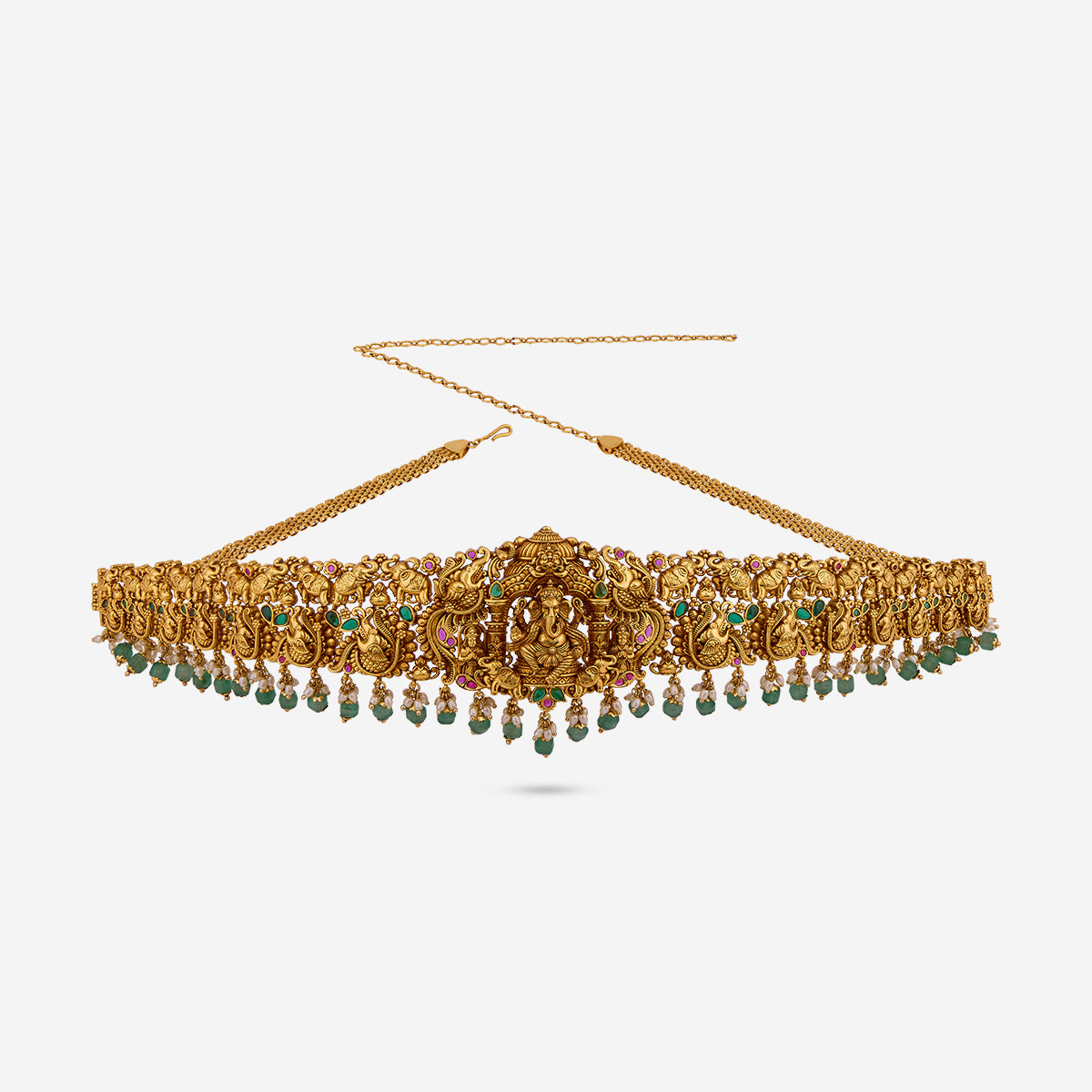 Adorn your silhouette with the beauty of a Waistbelt - also called a Waist Chain, hip belt, kamarbandh, vaddanam, oddiyanam, or tagdi - a piece that transcends trend and tradition. This exquisite jewelry enhances your waistline and becomes an essential expression of sensual grace. Whether you're elevating your festive attire or styling your beachwear, a well-crafted waist chain or belly chain becomes the focal point of your look.