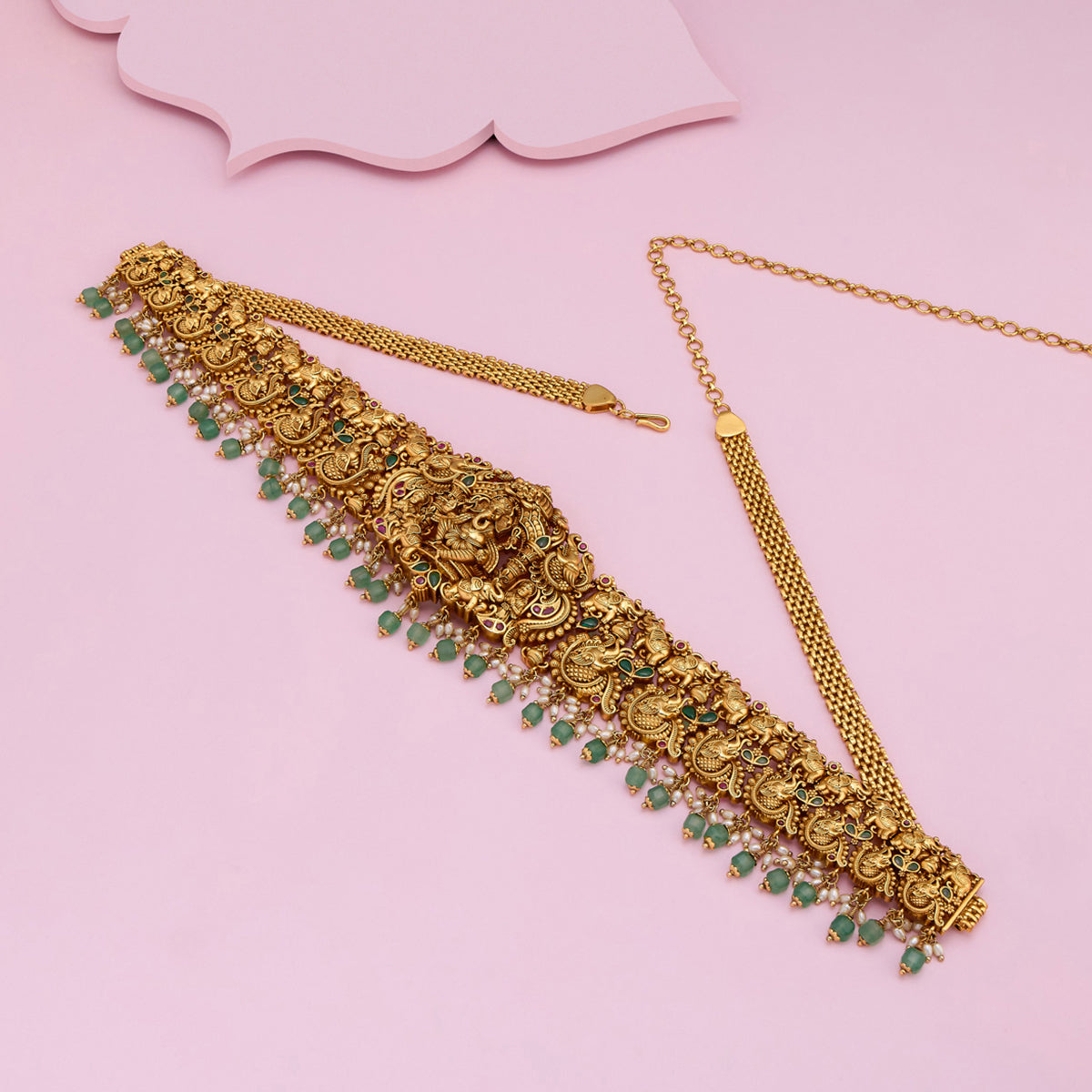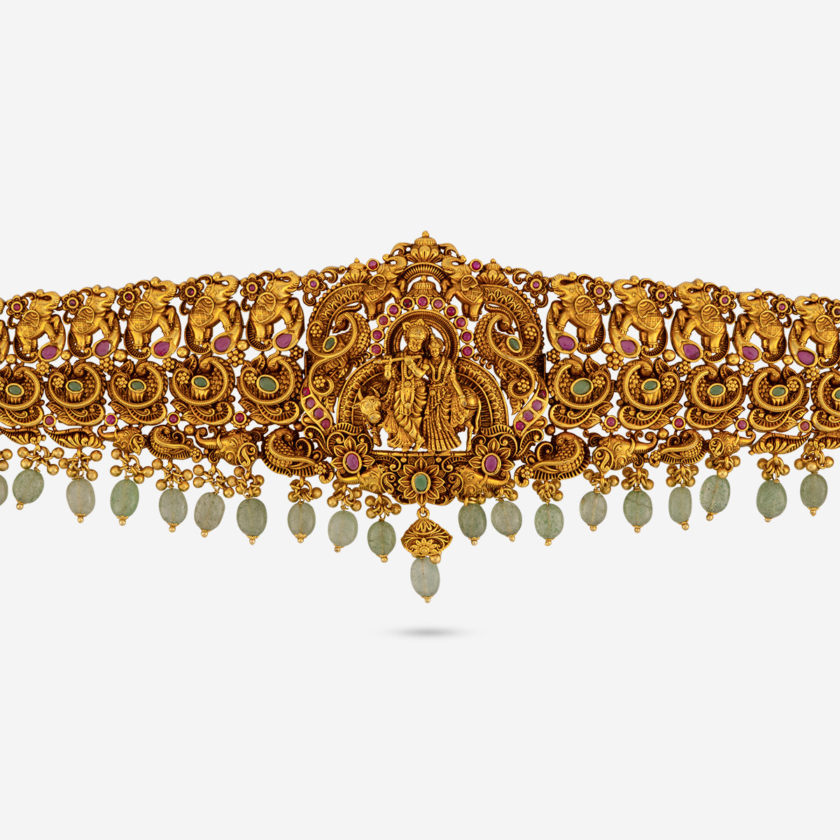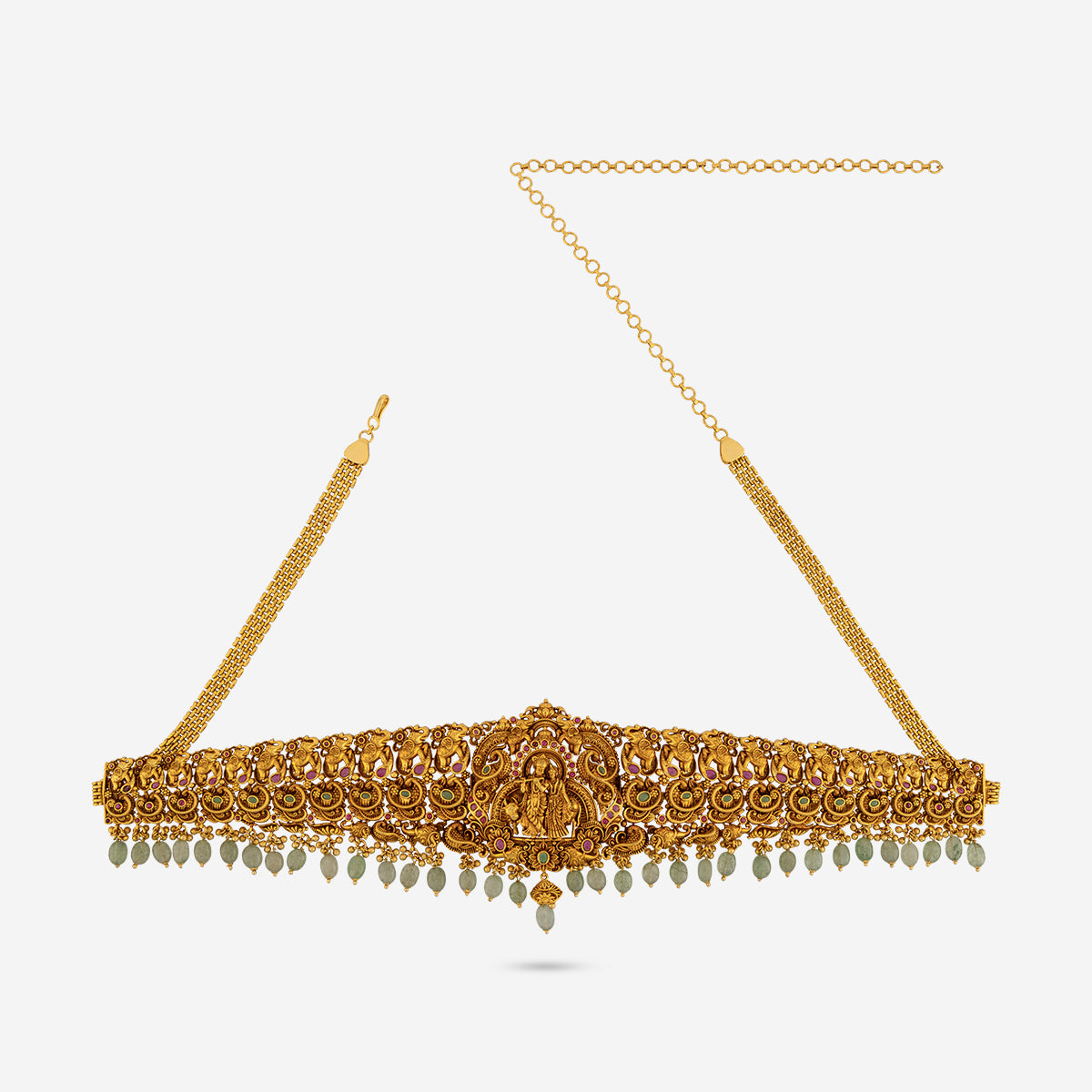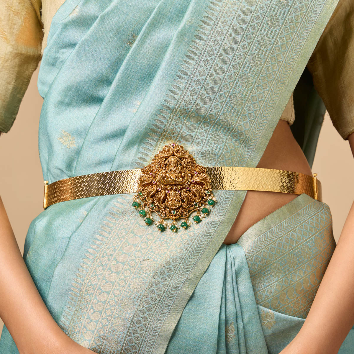 Adorn your silhouette with the beauty of a Waistbelt - also called a Waist Chain, hip belt, kamarbandh, vaddanam, oddiyanam, or tagdi - a piece that transcends trend and tradition. This exquisite jewelry enhances your waistline and becomes an essential expression of sensual grace. Whether you're elevating your festive attire or styling your beachwear, a well-crafted waist chain or belly chain becomes the focal point of your look.