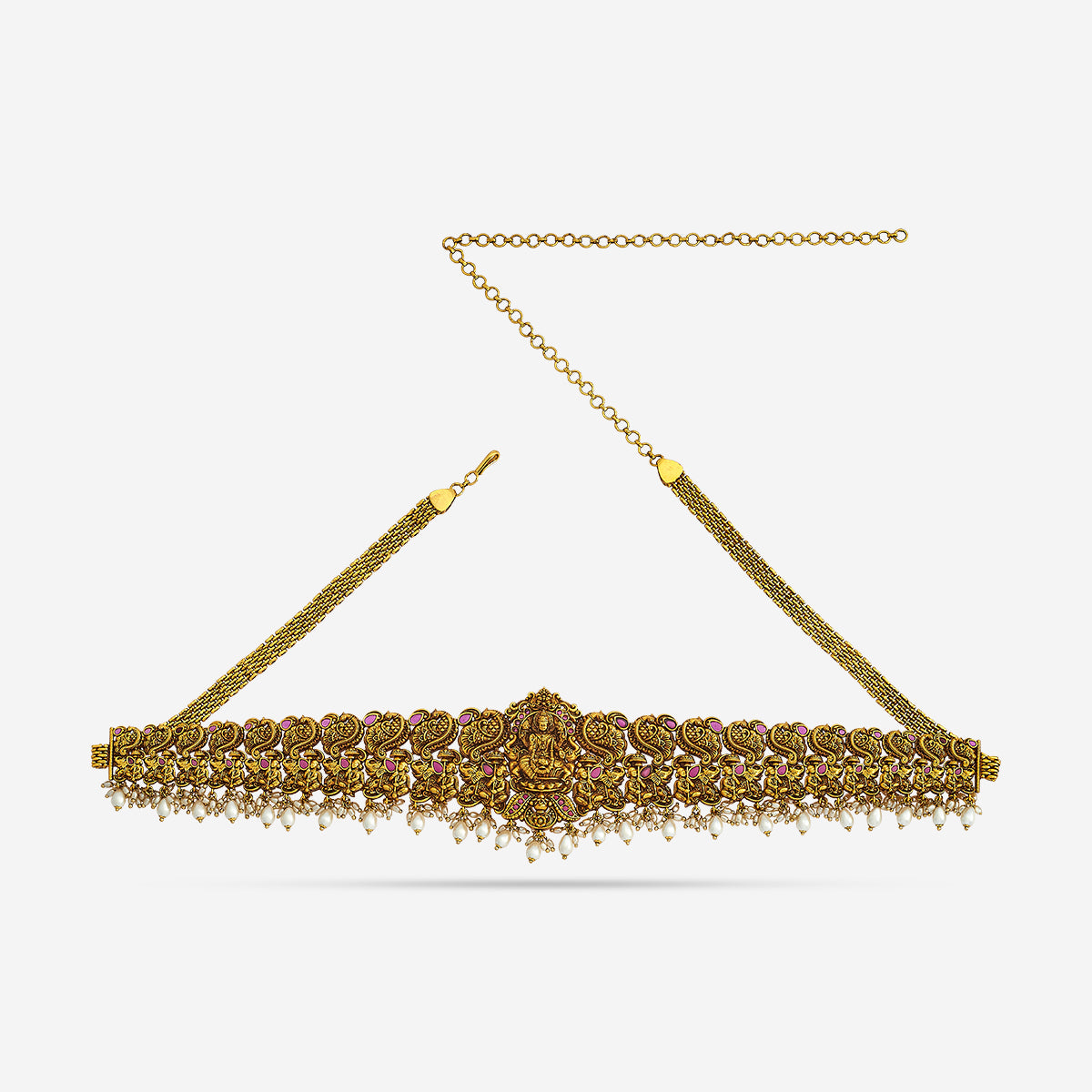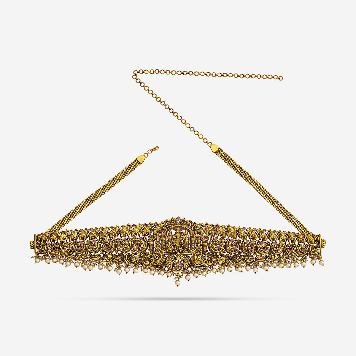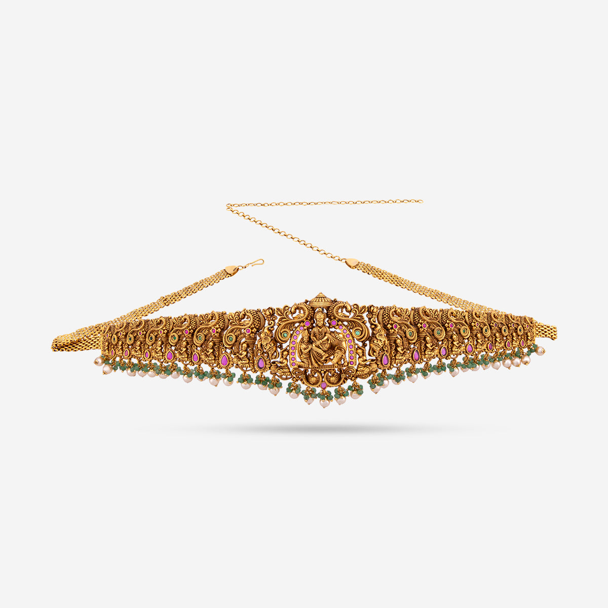 Adorn your silhouette with the beauty of a Waistbelt - also called a Waist Chain, hip belt, kamarbandh, vaddanam, oddiyanam, or tagdi - a piece that transcends trend and tradition. This exquisite jewelry enhances your waistline and becomes an essential expression of sensual grace. Whether you're elevating your festive attire or styling your beachwear, a well-crafted waist chain or belly chain becomes the focal point of your look.