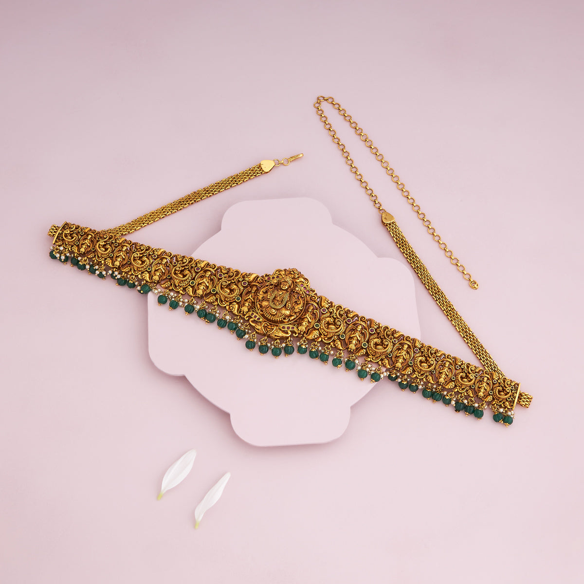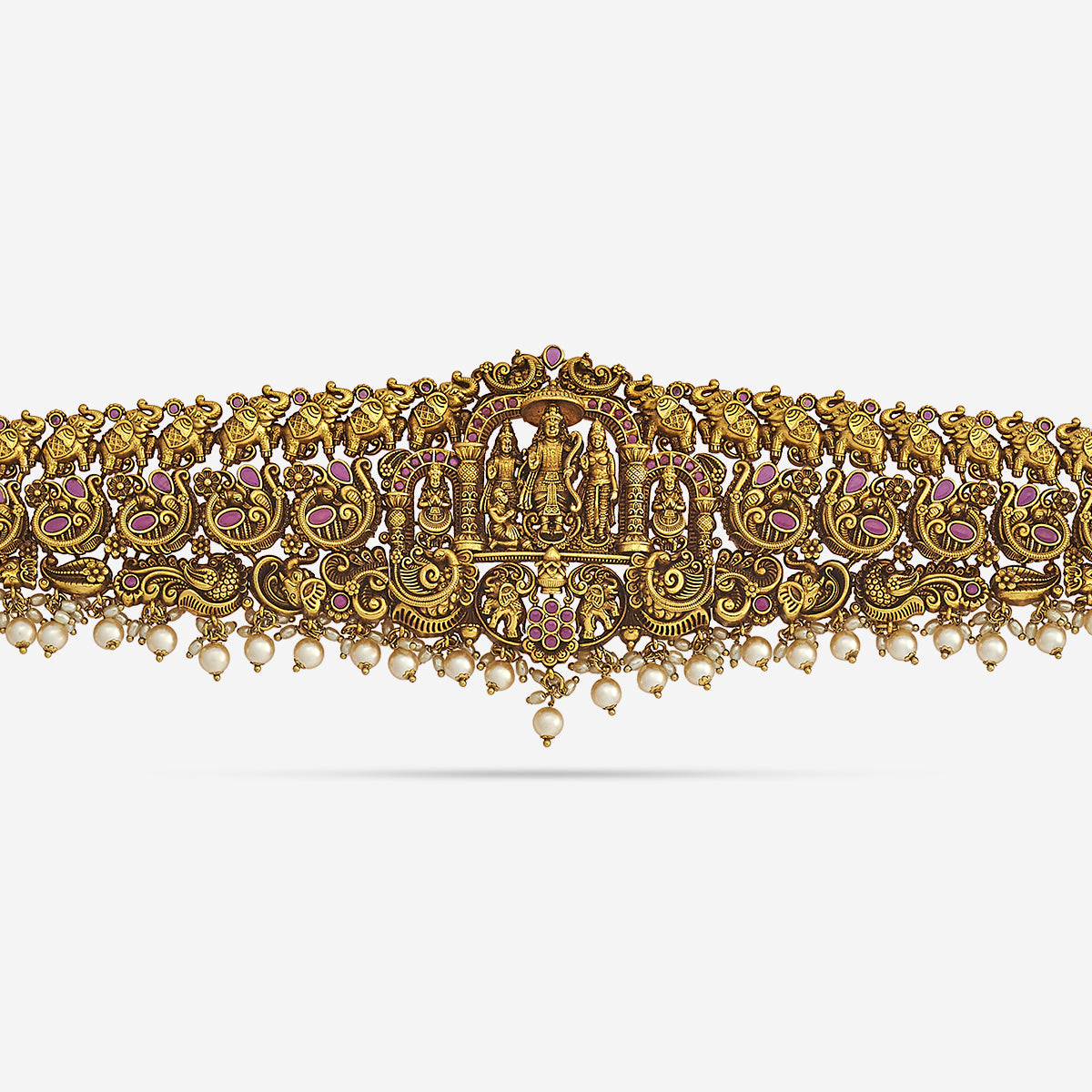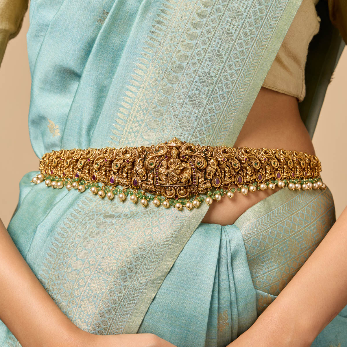 Adorn your silhouette with the beauty of a Waistbelt - also called a Waist Chain, hip belt, kamarbandh, vaddanam, oddiyanam, or tagdi - a piece that transcends trend and tradition. This exquisite jewelry enhances your waistline and becomes an essential expression of sensual grace. Whether you're elevating your festive attire or styling your beachwear, a well-crafted waist chain or belly chain becomes the focal point of your look.