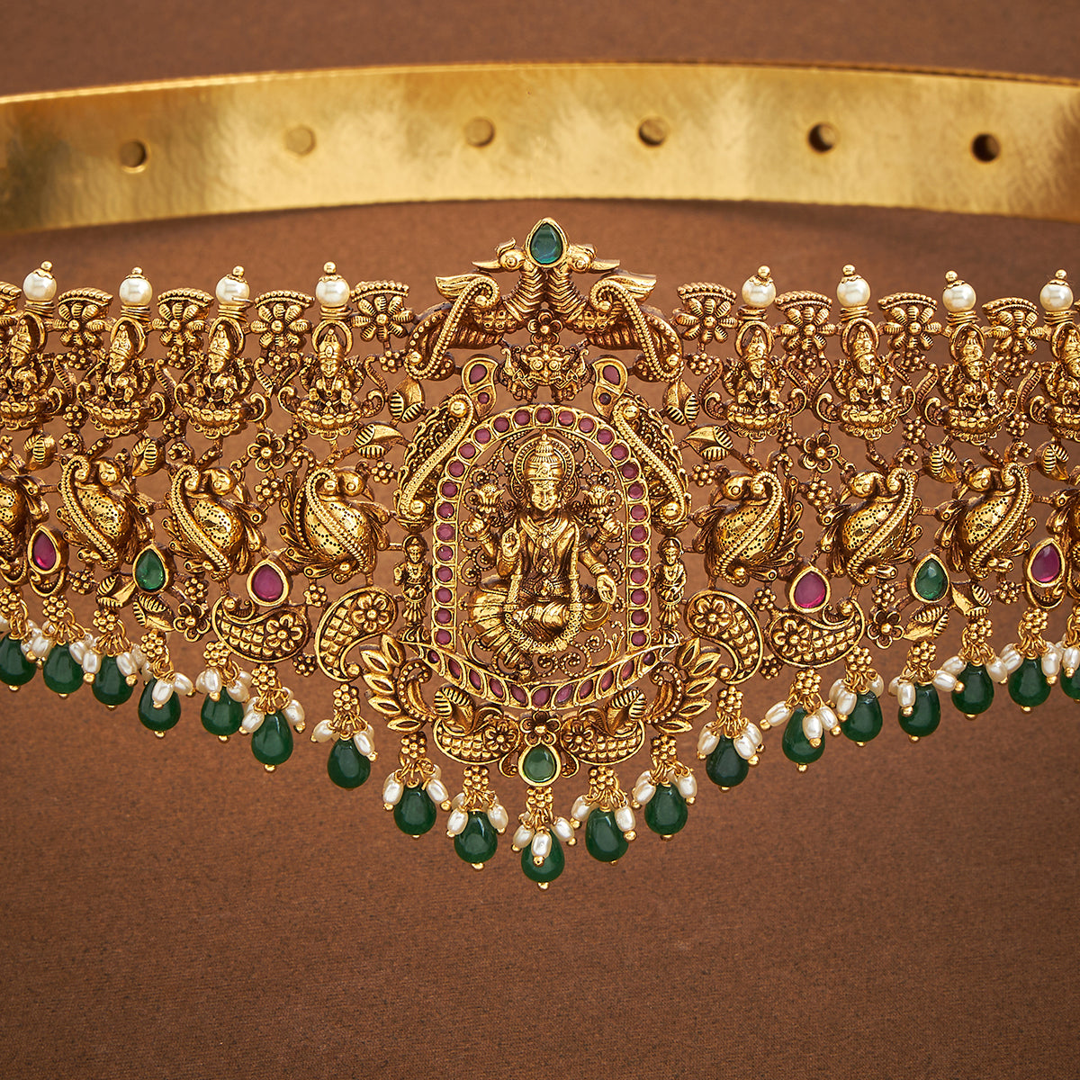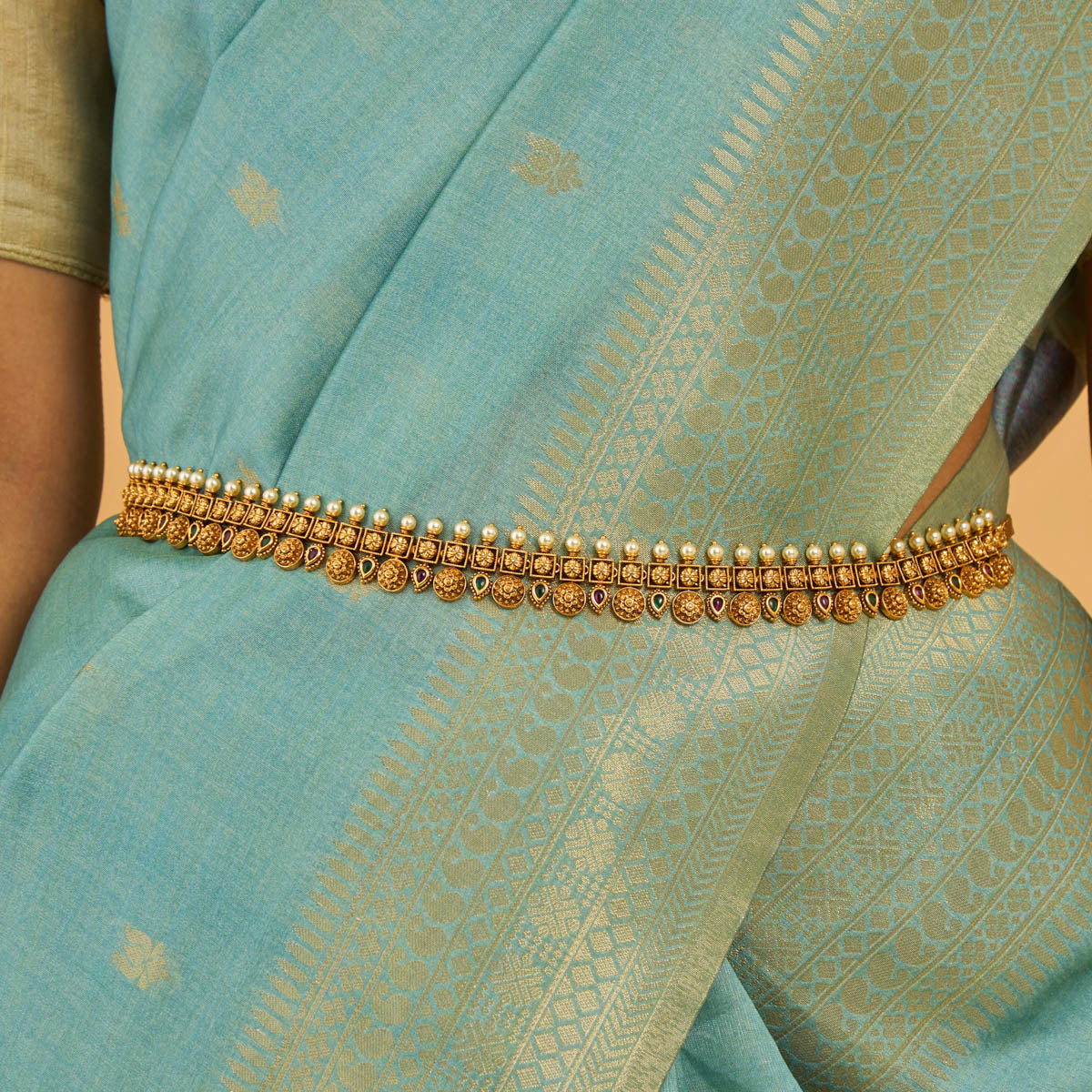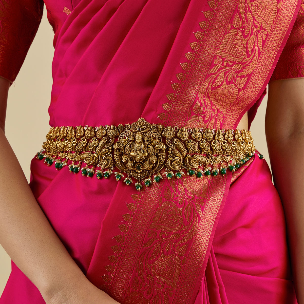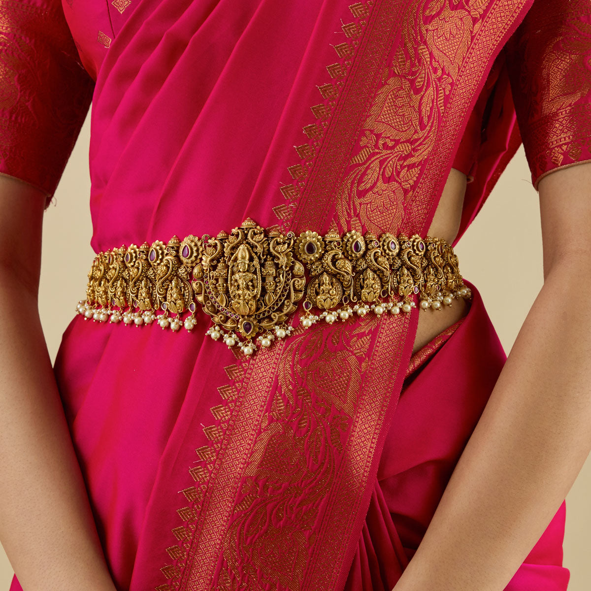 Adorn your silhouette with the beauty of a Waistbelt - also called a Waist Chain, hip belt, kamarbandh, vaddanam, oddiyanam, or tagdi - a piece that transcends trend and tradition. This exquisite jewelry enhances your waistline and becomes an essential expression of sensual grace. Whether you're elevating your festive attire or styling your beachwear, a well-crafted waist chain or belly chain becomes the focal point of your look.
