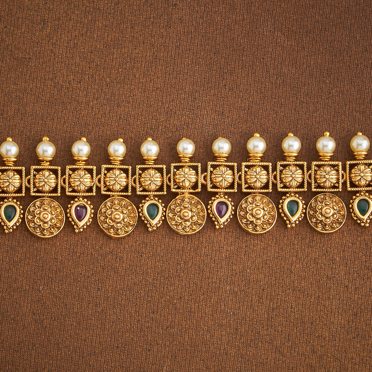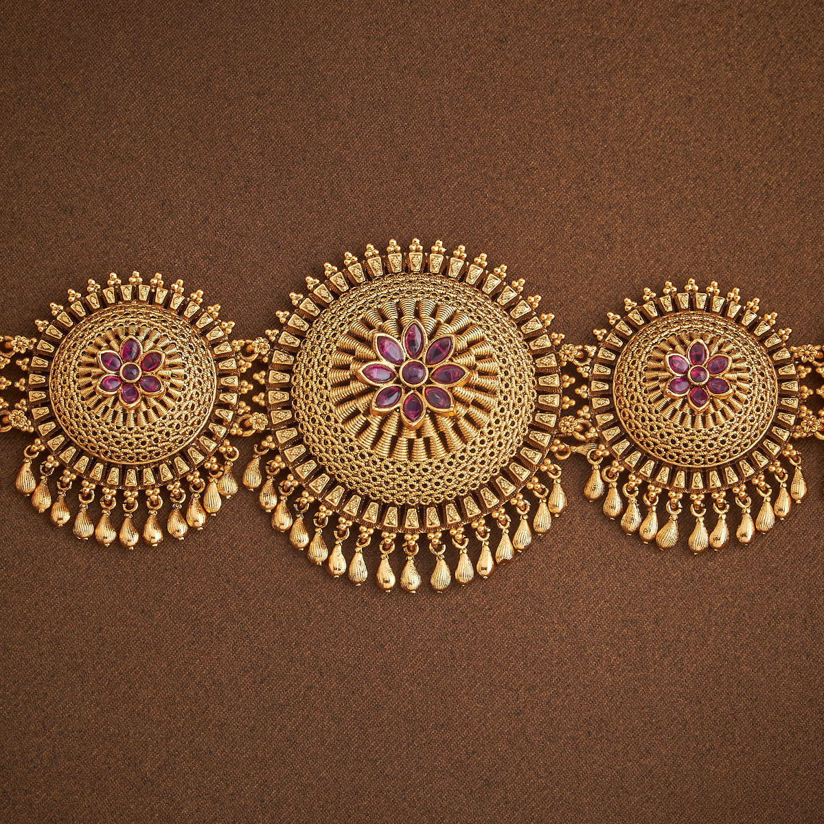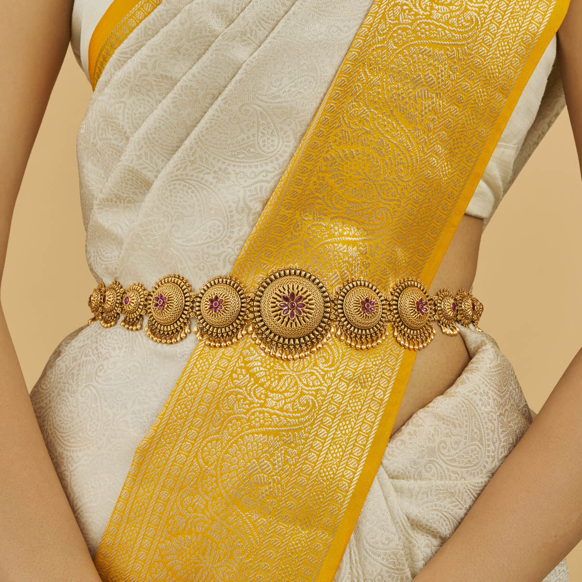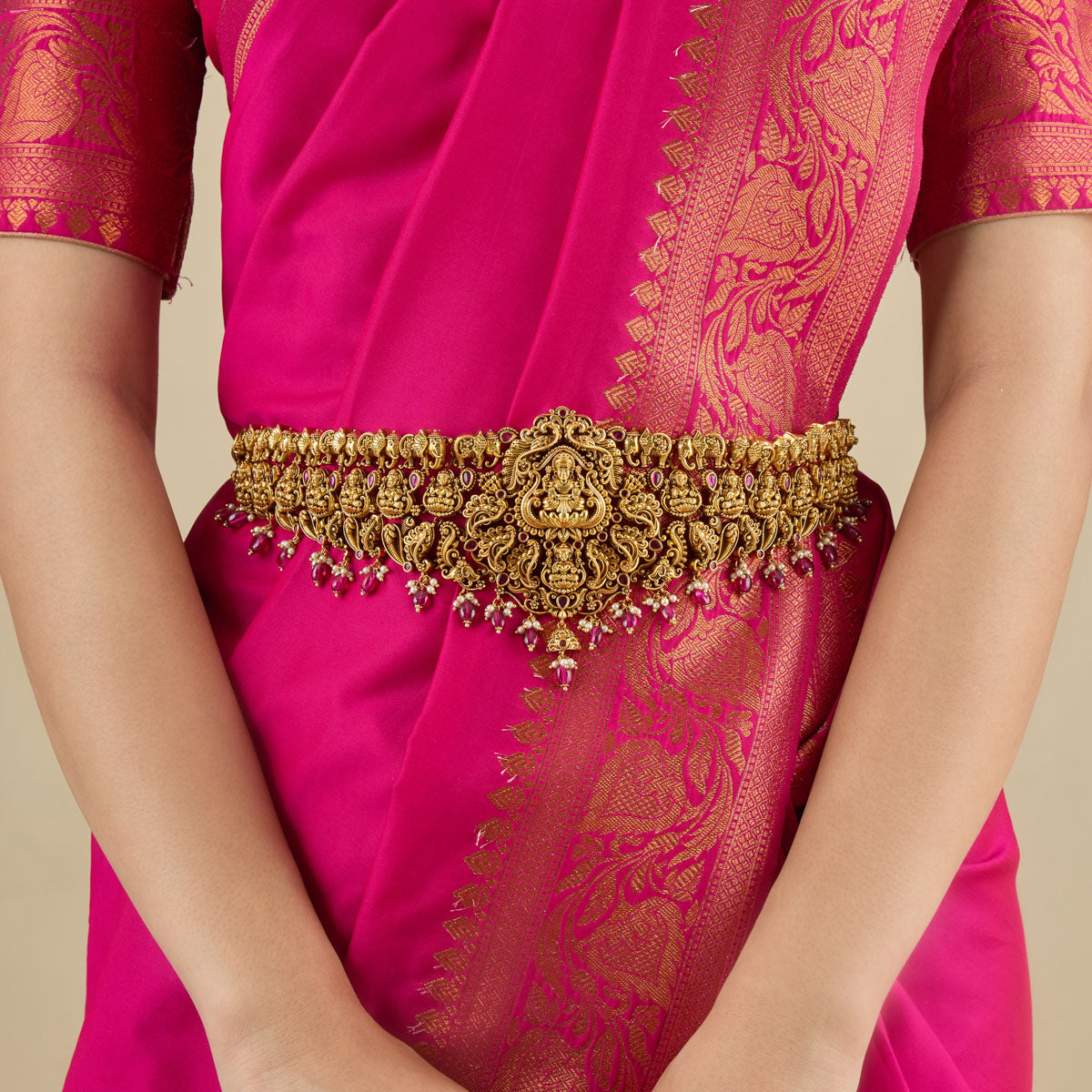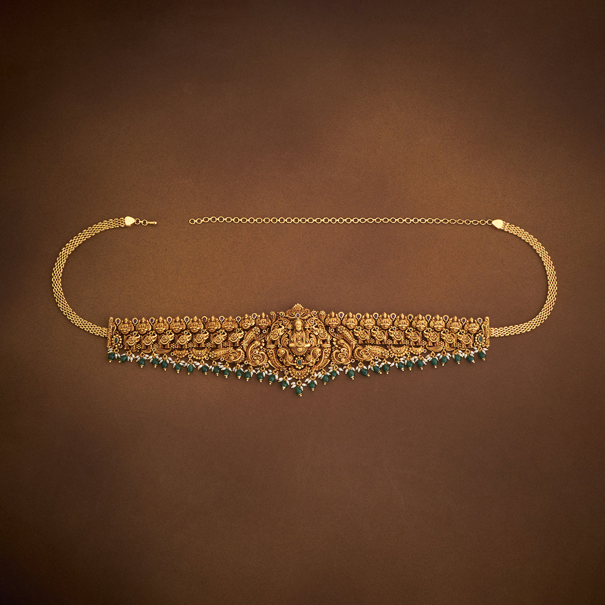 Adorn your silhouette with the beauty of a Waistbelt - also called a Waist Chain, hip belt, kamarbandh, vaddanam, oddiyanam, or tagdi - a piece that transcends trend and tradition. This exquisite jewelry enhances your waistline and becomes an essential expression of sensual grace. Whether you're elevating your festive attire or styling your beachwear, a well-crafted waist chain or belly chain becomes the focal point of your look.