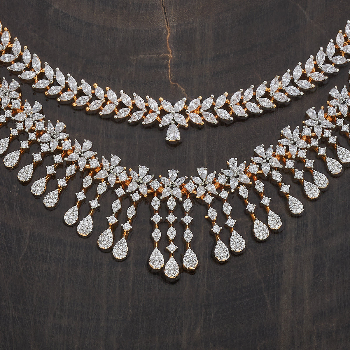 From sparkling zircon-studded creations to the rich gleam of rose gold and rhodium polishes, our jewelry bridal jewelry sets are available in various styles and materials. Whether you envision a minimalist look or a grand statement, we have the perfect set to elevate your bridal beauty. The pieces suit every bride’s preference, ensuring your wedding look is as unique as your love story.