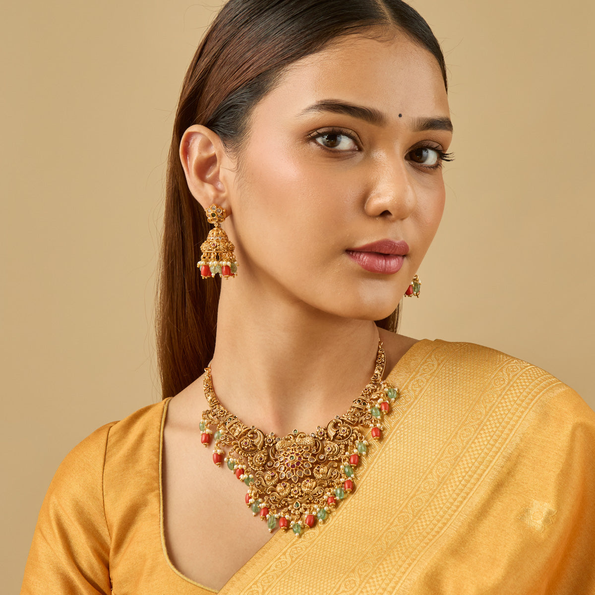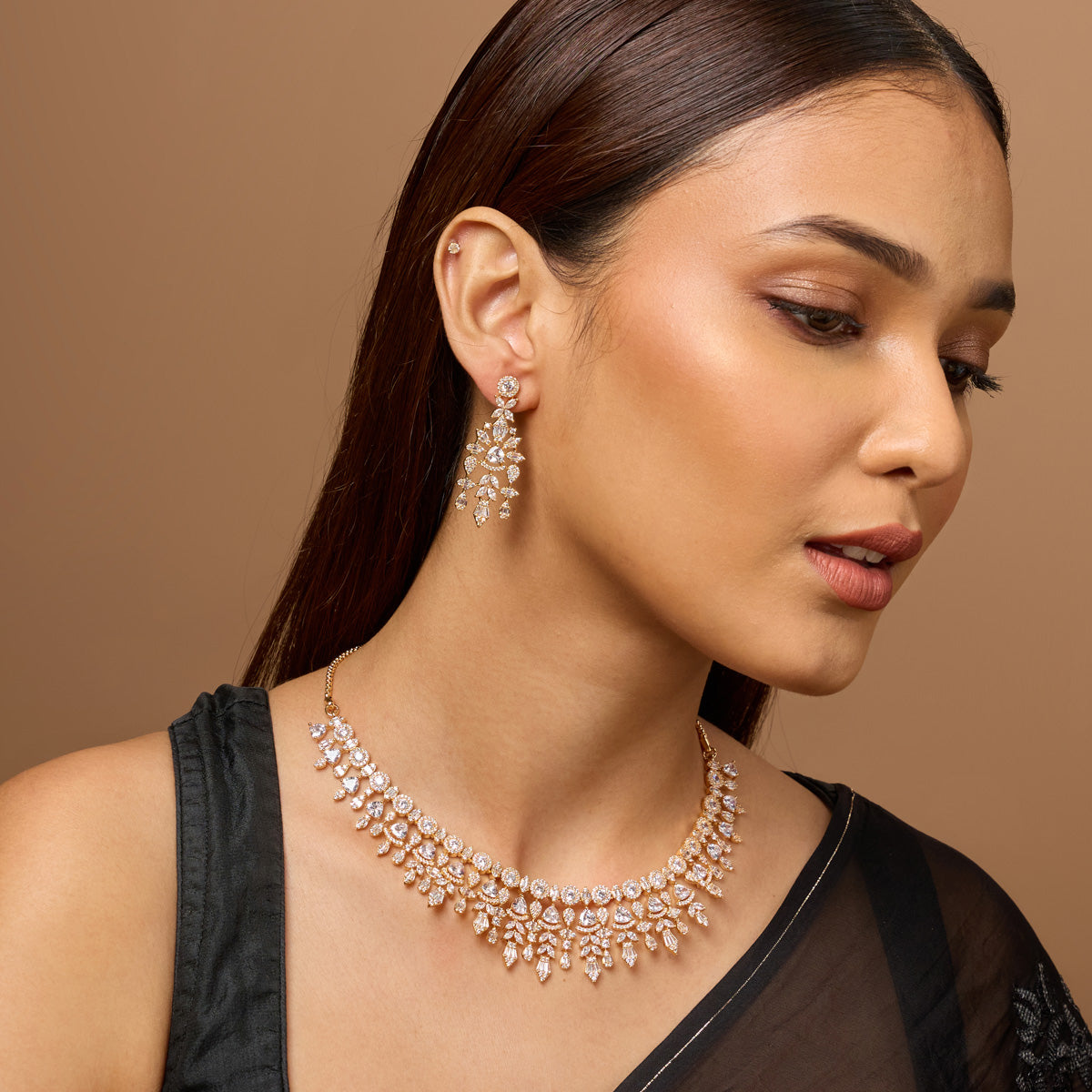 For those looking for a traditional look, we offer sets with intricate designs and beautifully crafted jewelry that evoke a sense of classic vintage style. For brides desiring a more contemporary aesthetic, our minimalist and sleek jewelry & bridal jewelry sets offer a modern touch, ensuring you look and feel your best.