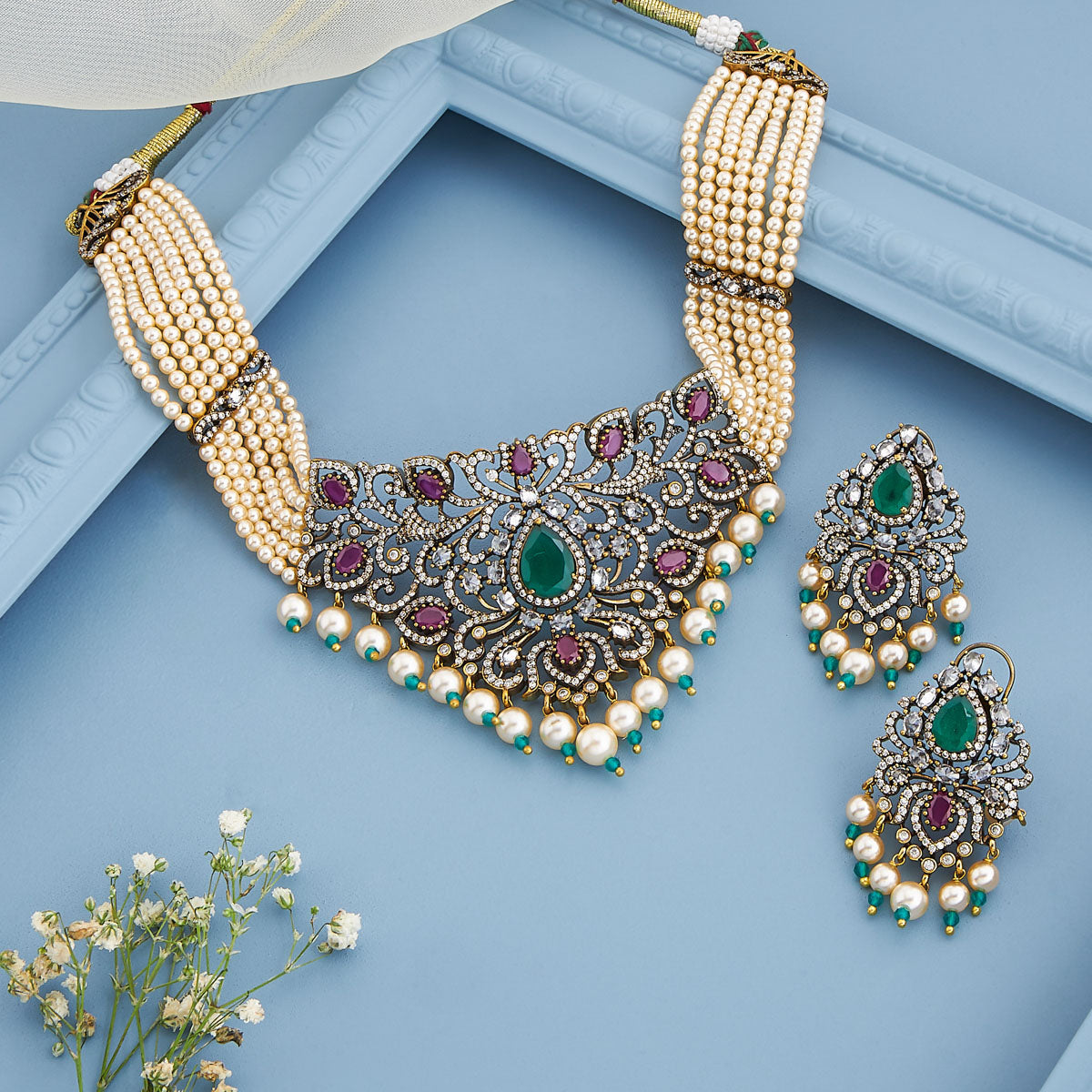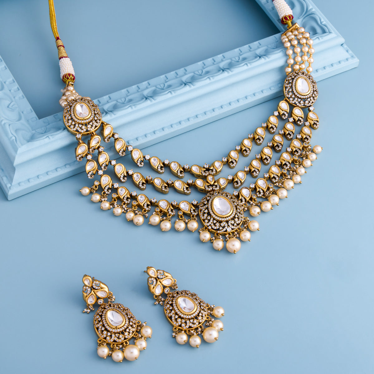 No two brides are the same, and that’s why we offer a variety of bridal jewelry sets that cater to all preferences. Whether you prefer the classic elegance of antique-style jewelry, the cool tones of zircons, or the rich hues of kundans, our collection offers pieces that can be matched with any wedding dress or style.