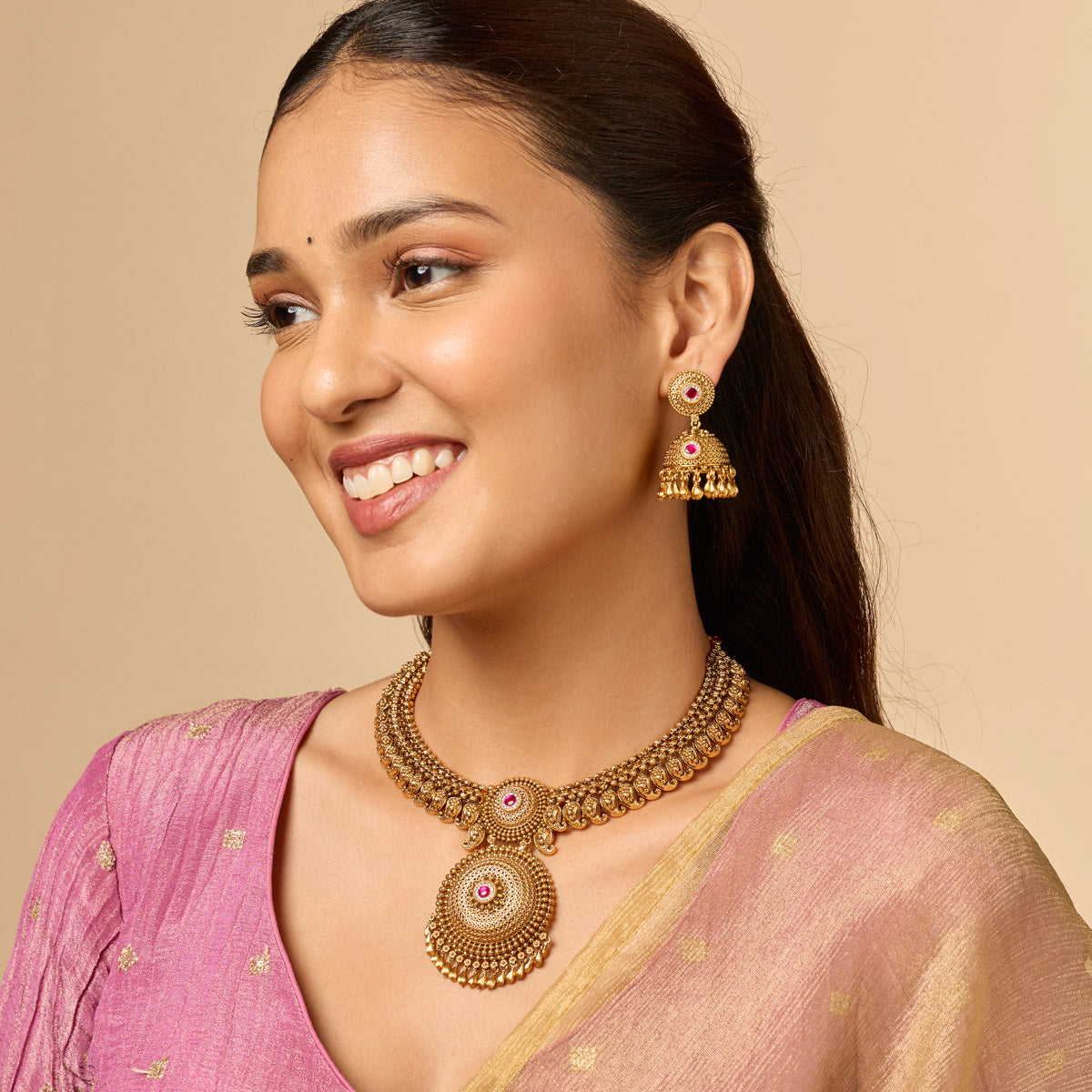 For a wedding, a bridal jewelry set is the perfect choice. This includes a necklace, earrings, a bracelet, and a ring that complements the bride’s dress and overall style. A well-coordinated bridal jewelry set ensures elegance and sophistication on your special day. You can opt for sparkling zircons, elegant kundans, or traditional antiques, all of which are part of our stunning wedding bridal jewelry sets.