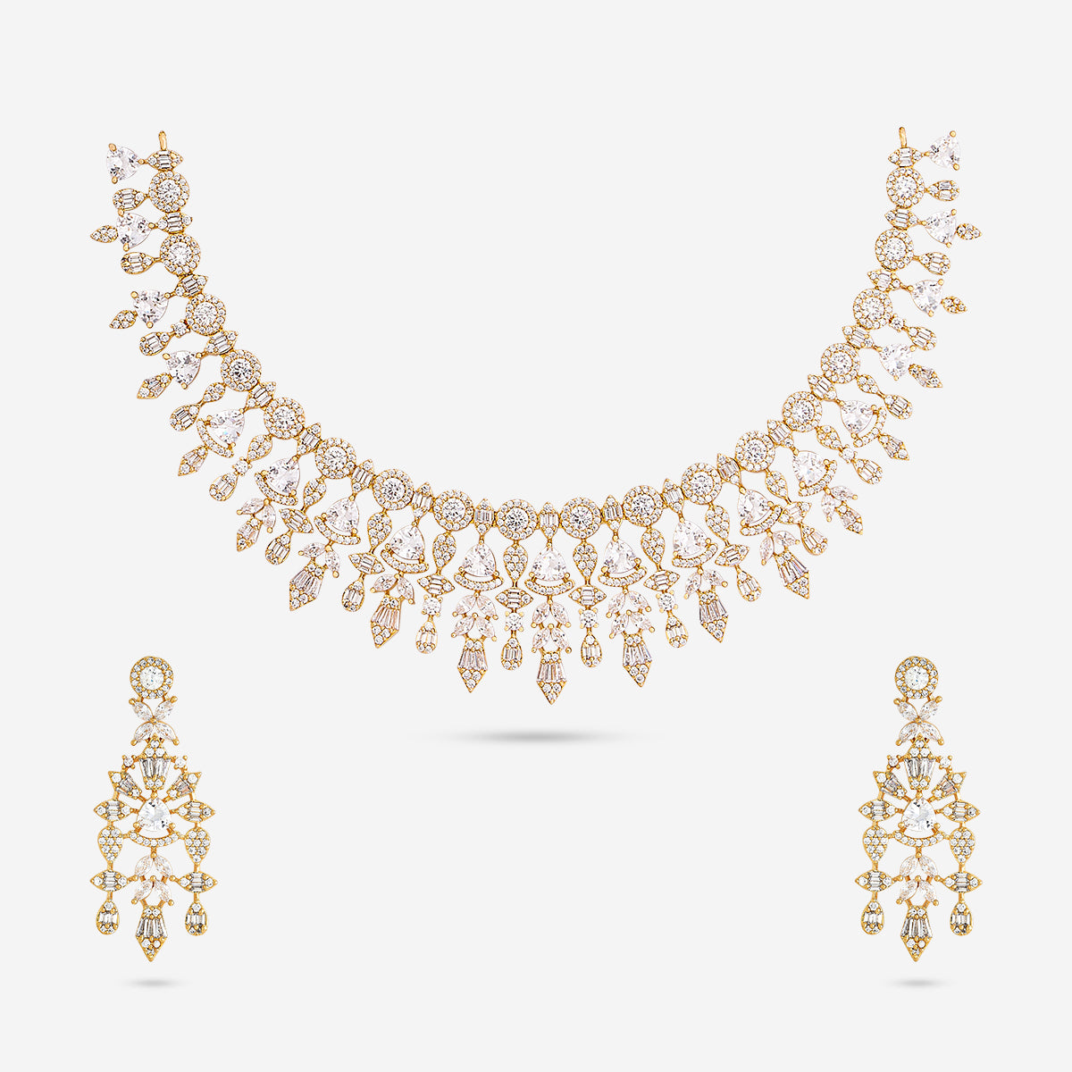 From sparkling zircon-studded creations to the rich gleam of rose gold and rhodium polishes, our jewelry bridal jewelry sets are available in various styles and materials. Whether you envision a minimalist look or a grand statement, we have the perfect set to elevate your bridal beauty. The pieces suit every bride’s preference, ensuring your wedding look is as unique as your love story.