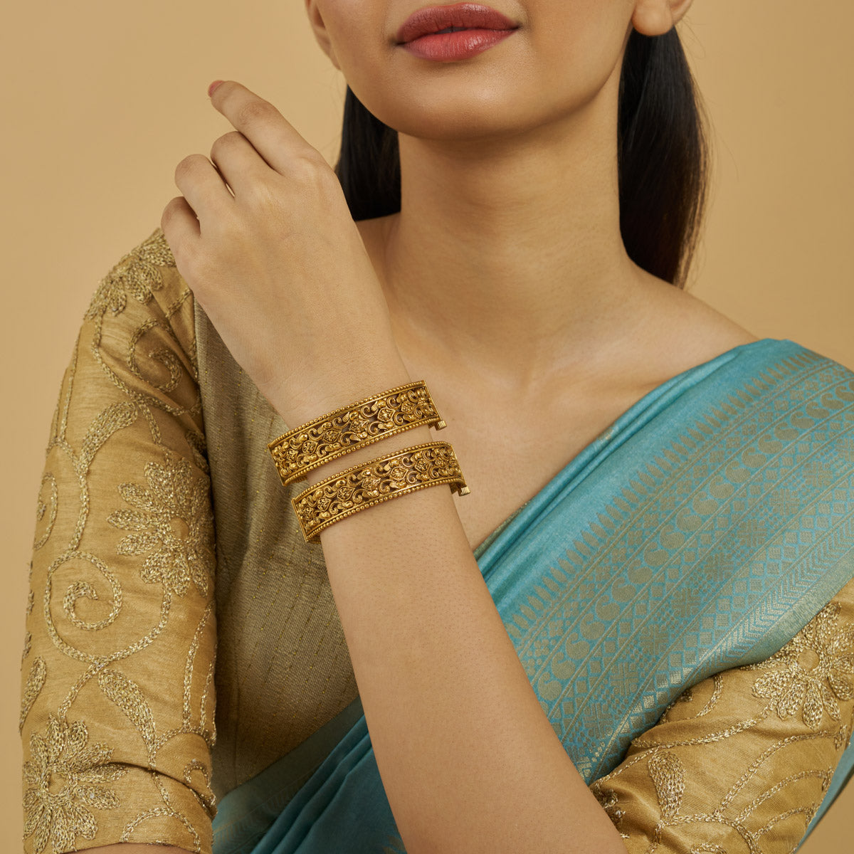 Brides often wear delicate bracelets or bangles on their wrists to complete their bridal jewelry set. Popular options include elegant kundan bracelets and traditional kadas. Whether you choose a classic look or a more contemporary design, a wedding bridal jewelry set will always include beautiful wrist adornments that enhance your bridal elegance.