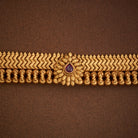 Looking for that perfect accessory to enhance your outfit? Look no further! Our antique belt is the perfect piece for you! The belt boasts a copper alloy base metal, expertly embellished with a radiant ruby-coloured synthetic stone. Whether traditional attire or a modern ensemble, this beautifully designed belt is versatile and never fails to make a statement.