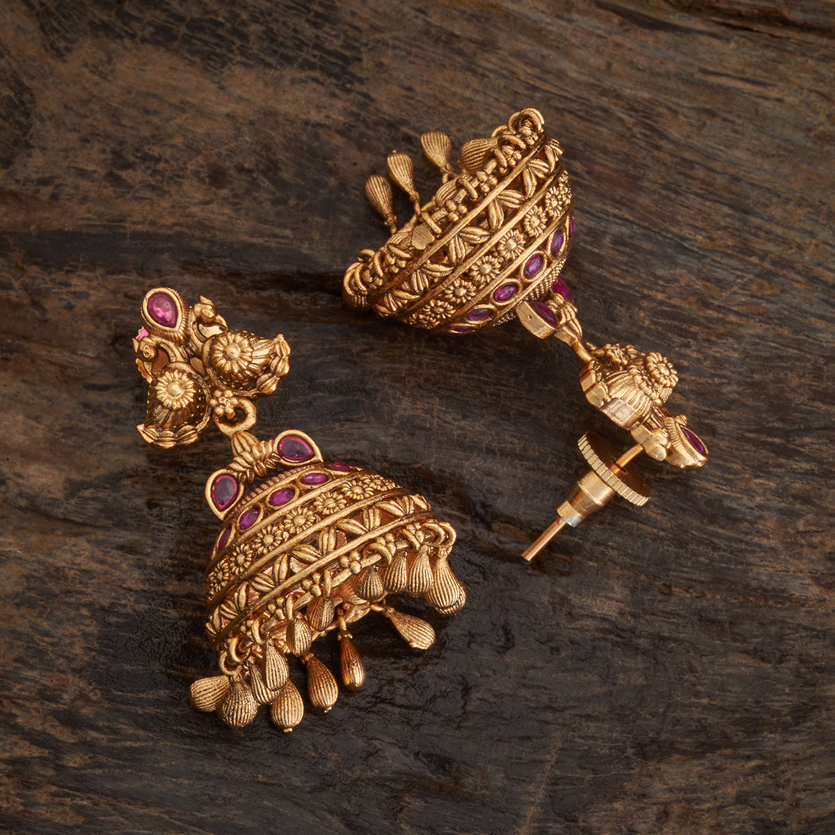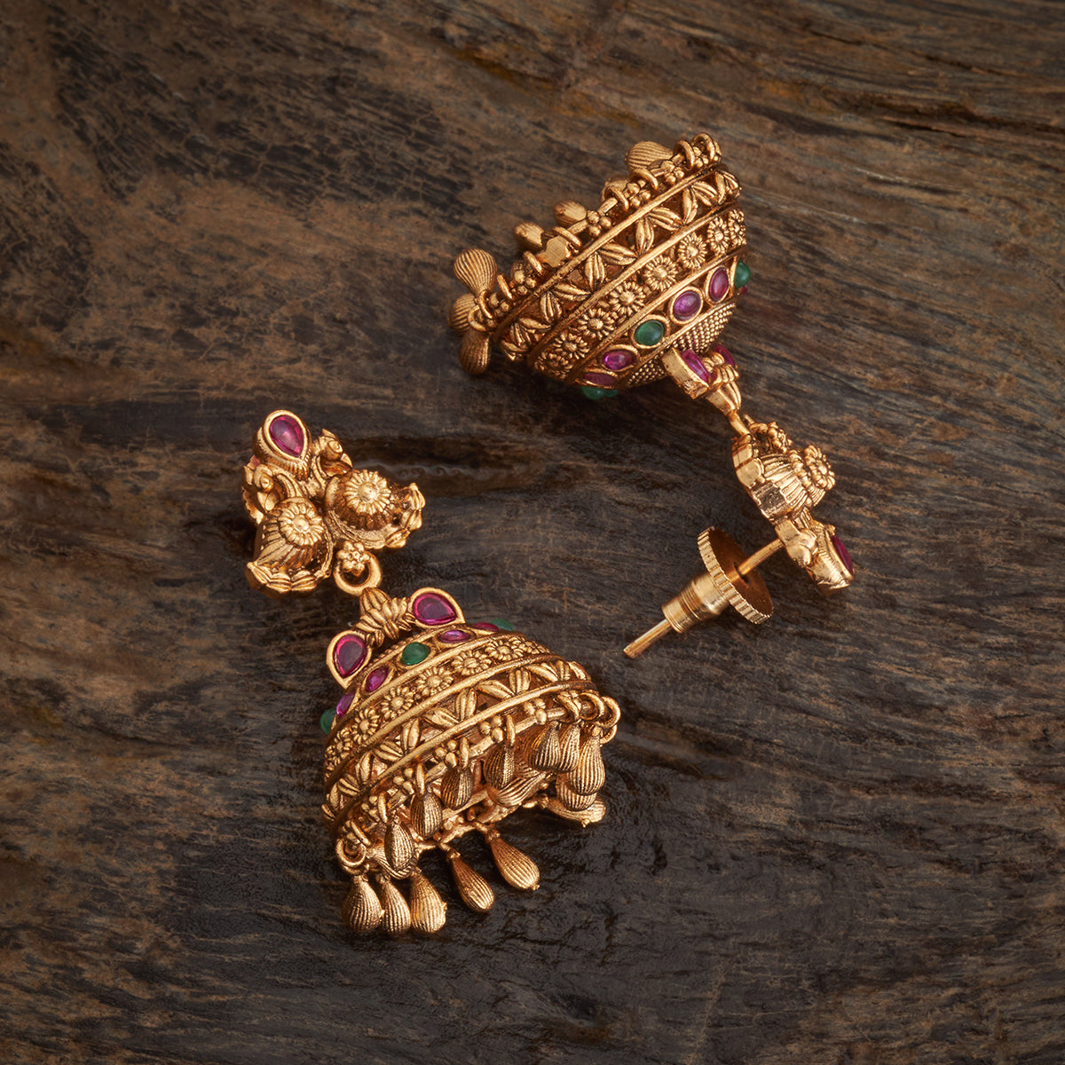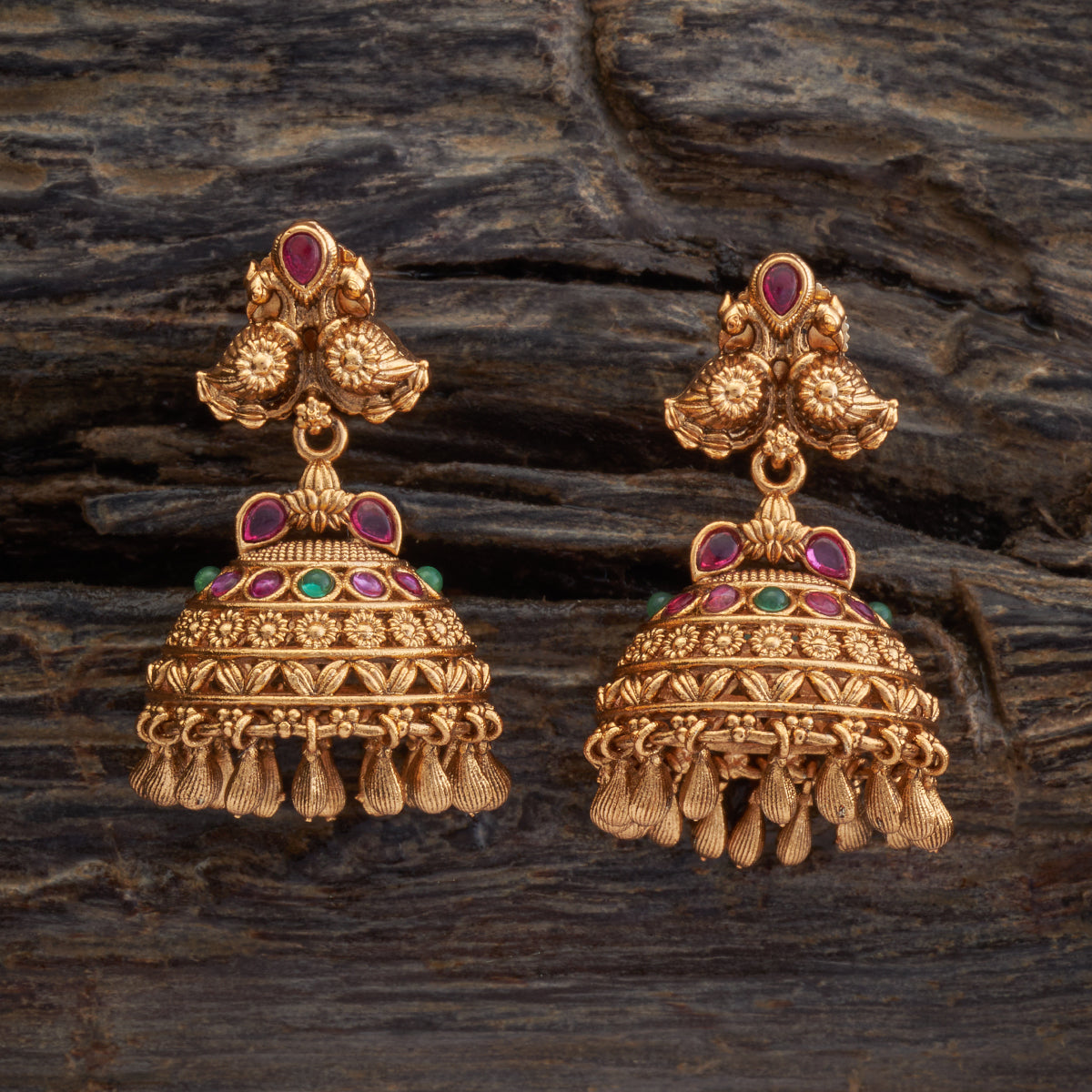 Cherish every moment with Kushal's antique earrings. Designed to steal the spotlight, these chic gold-polished jhumkas are crafted from copper alloy and feature three amazing hues to choose from. Each hue radiates a unique charm, allowing you to choose the perfect pair to complement your style.