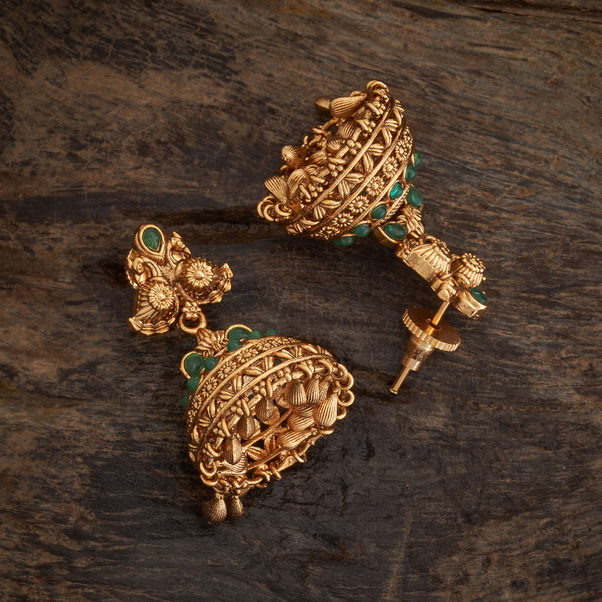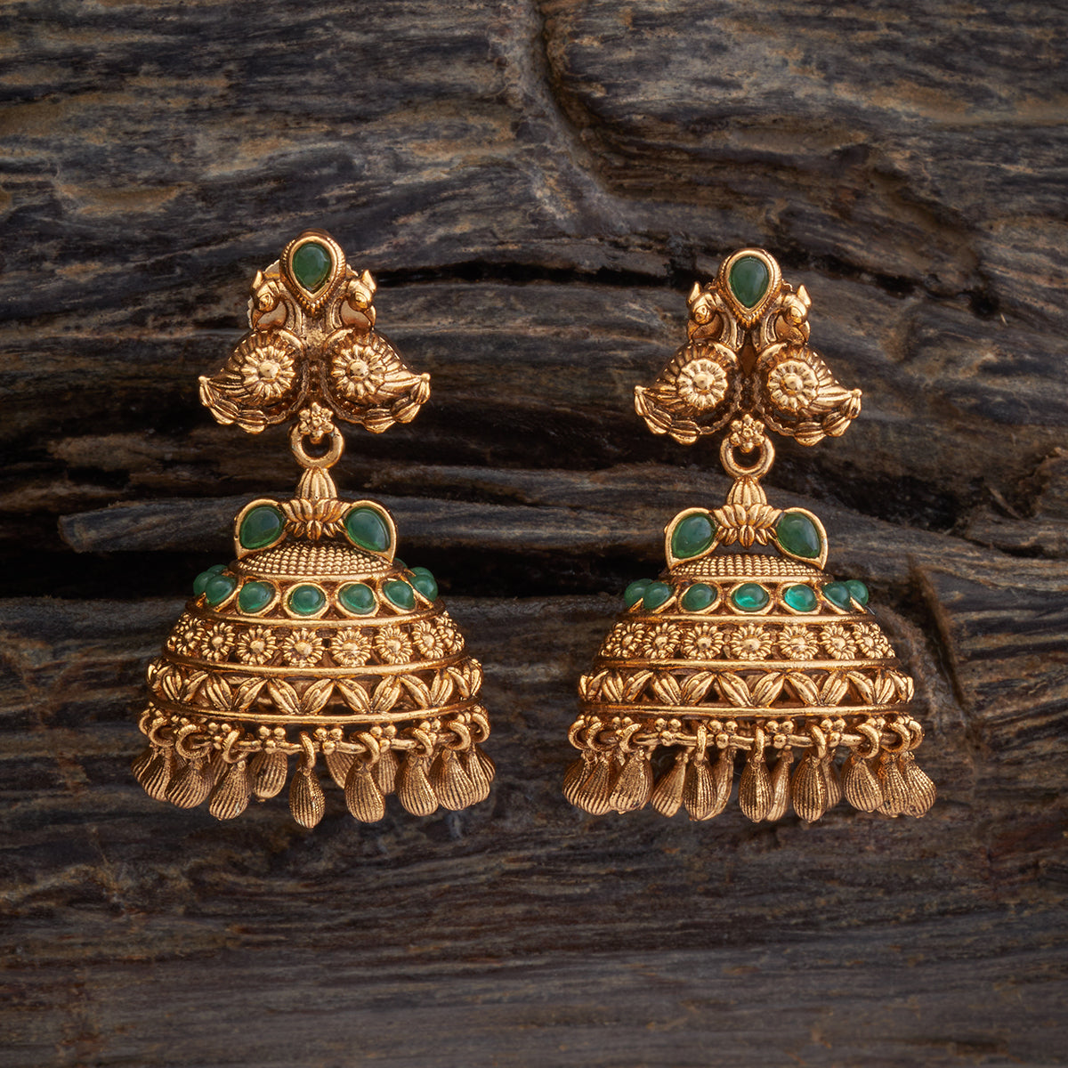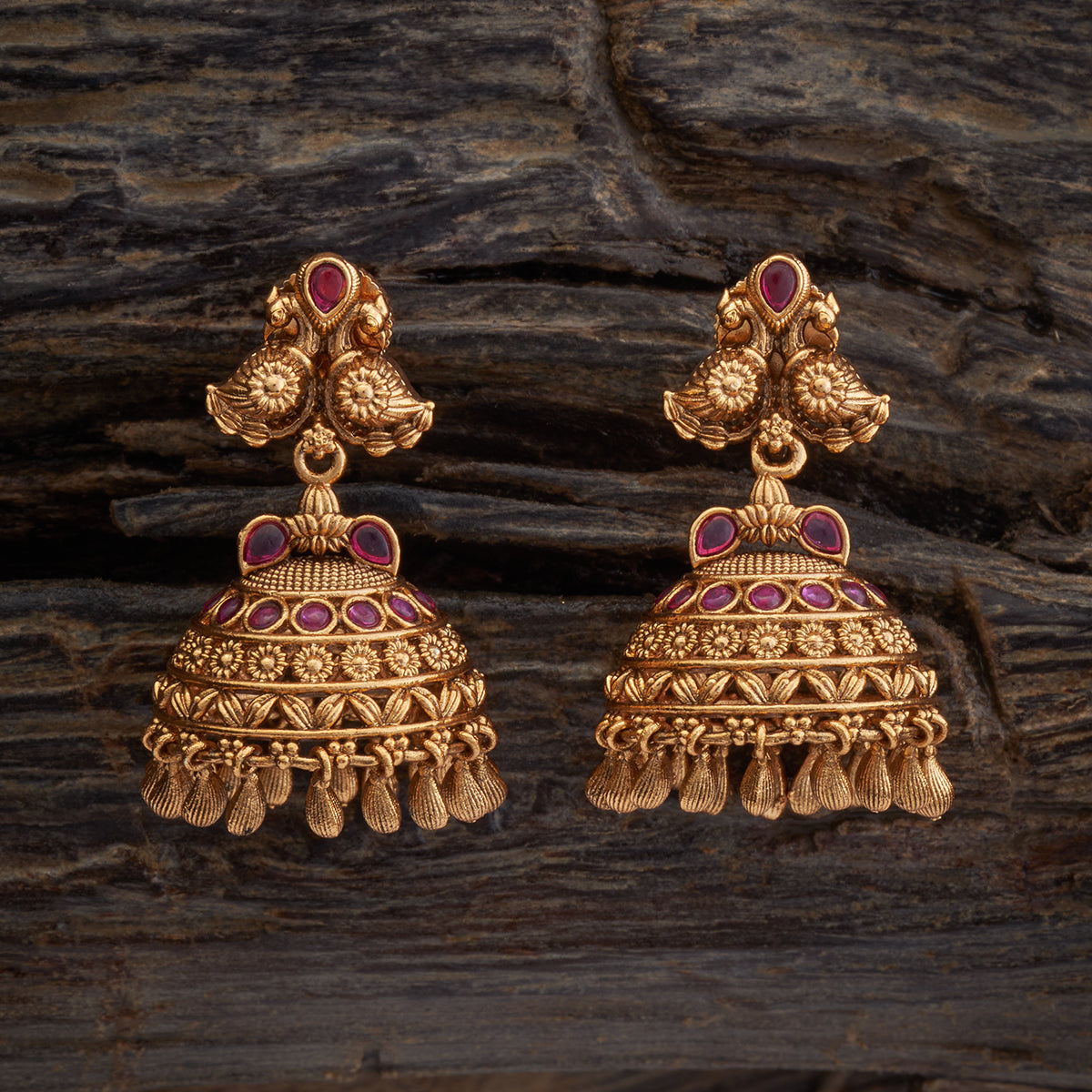 Cherish every moment with Kushal's antique earrings. Designed to steal the spotlight, these chic gold-polished jhumkas are crafted from copper alloy and feature three amazing hues to choose from. Each hue radiates a unique charm, allowing you to choose the perfect pair to complement your style.