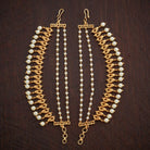 Complete your traditional look with our Antique Matil, an exquisite addition to your festive ensemble. The elegant design and impeccable finishing make it a standout accessory. Whether with tied or loose hair, the gold polish adds a touch of glamour, while the pearl stones enhance and radiate your natural beauty, enhancing your overall traditional look.