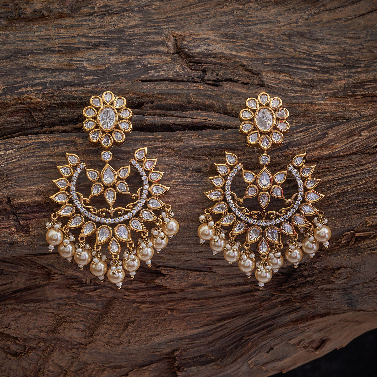 Sparkle in style with these stunning kundan earrings from Kushal's Fashion Jewellery. These dazzling earrings, featuring pristine white Kundan stones and radiant gold or Victorian polish, are your go-to for making a bold statement. Crafted from copper alloy, they effortlessly combine traditional charm with modern flair.