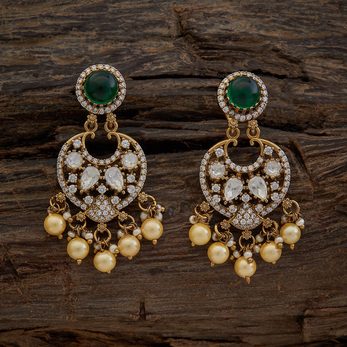 These kundan earrings are a pleasant surprise as they are available in multiple hues: green, mint, pink, ruby and sapphire. Pair them with floor-length maxis and juttis for a surreal look. The Victorian polish makes it a true charmer, while the copper alloy base makes it a durable choice.