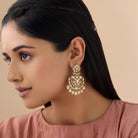Accessorise your look with these stunning Kundan earrings, featuring intricate white Kundan stones and beads set in an elegant Victorian polish. Perfect for adding a touch of vintage charm, these earrings enhance traditional outfits like sarees or lehengas, making them ideal for weddings or festive events, and adding a classic, timeless appeal.