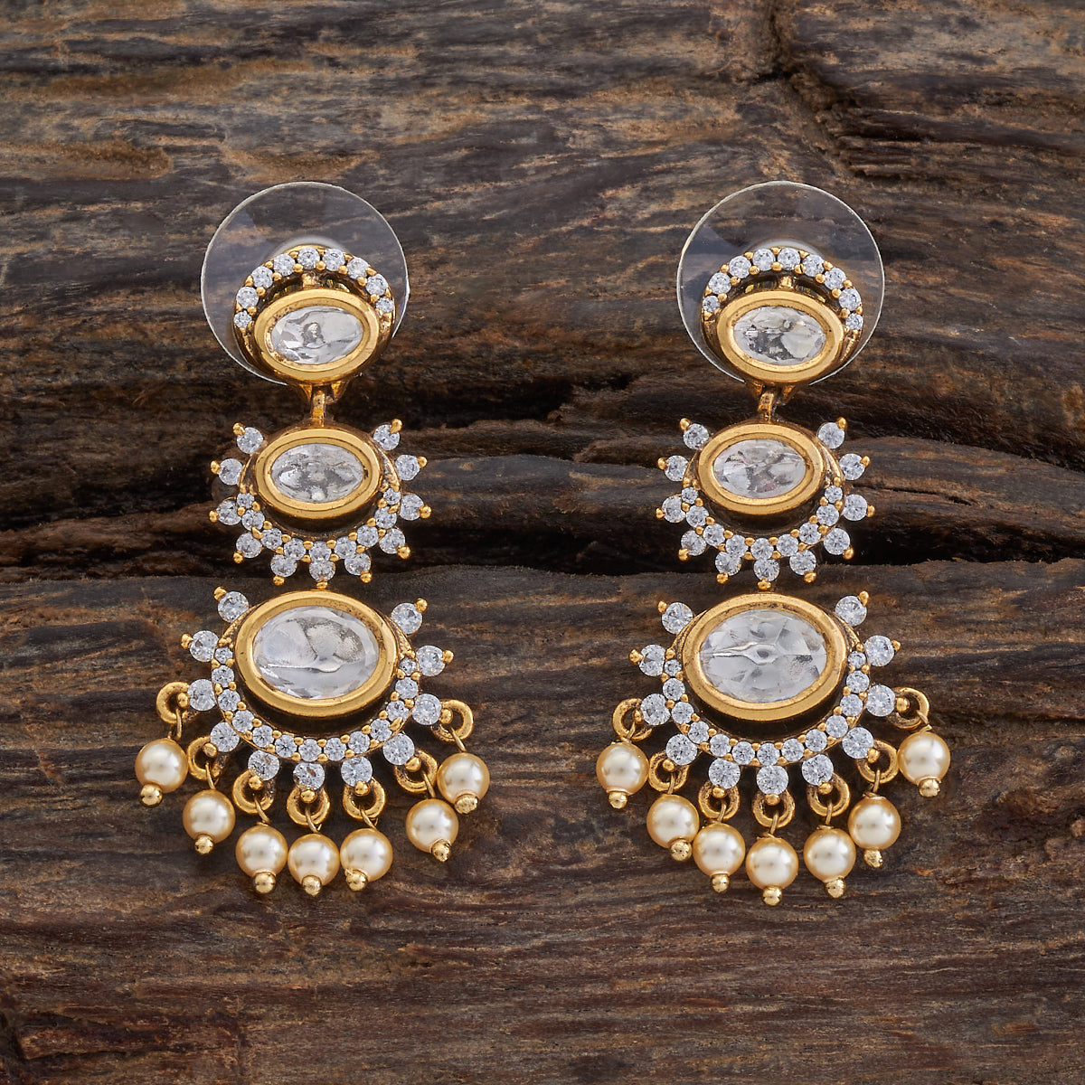 These Kundan earrings are a mesmerising masterpiece for fashionistas. They feature shimmering kundan stones and delicate beads. Elevate a simple dress or saree with these earrings. Their timeless design adds a touch of sophistication without overwhelming your outfit. The hanging earrings feature a push-back closure for added safety.