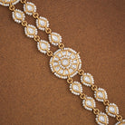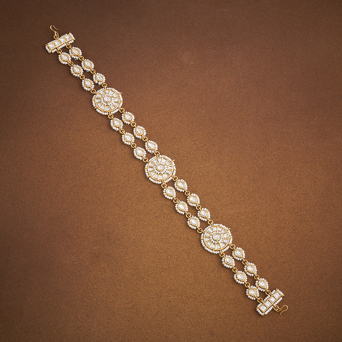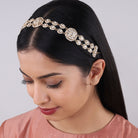 Our exquisite Kundan Tikka is a timeless piece that combines tradition and elegance effortlessly. Crafted by our skilled designers with the durability and reliability of Copper alloy, this piece remains stylish yet fashionable at just 40 grams. The centre of attention is the mesmerizing Kundan stones and gems, whose captivating glow will enhance your appearance. It’s time to accessorize with our charming Maang Tikka this bridal season. Charm your bridal style with this finely designed maang tikka to add the final touches.