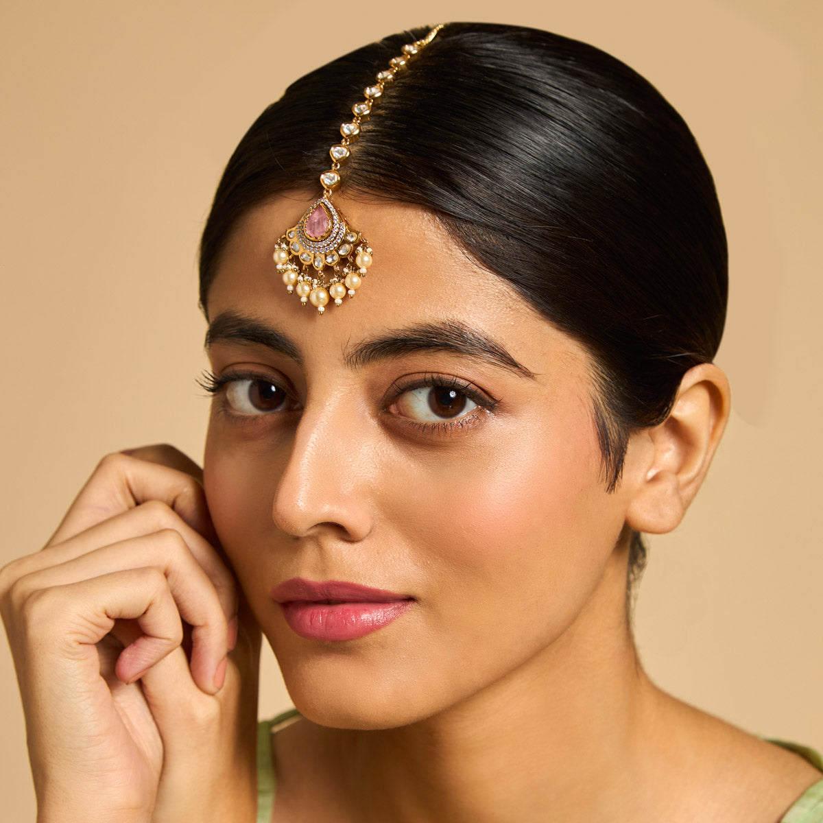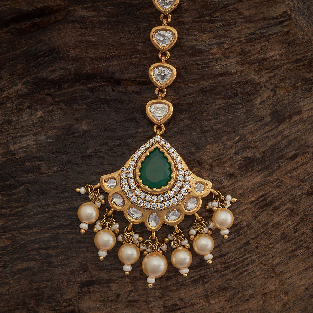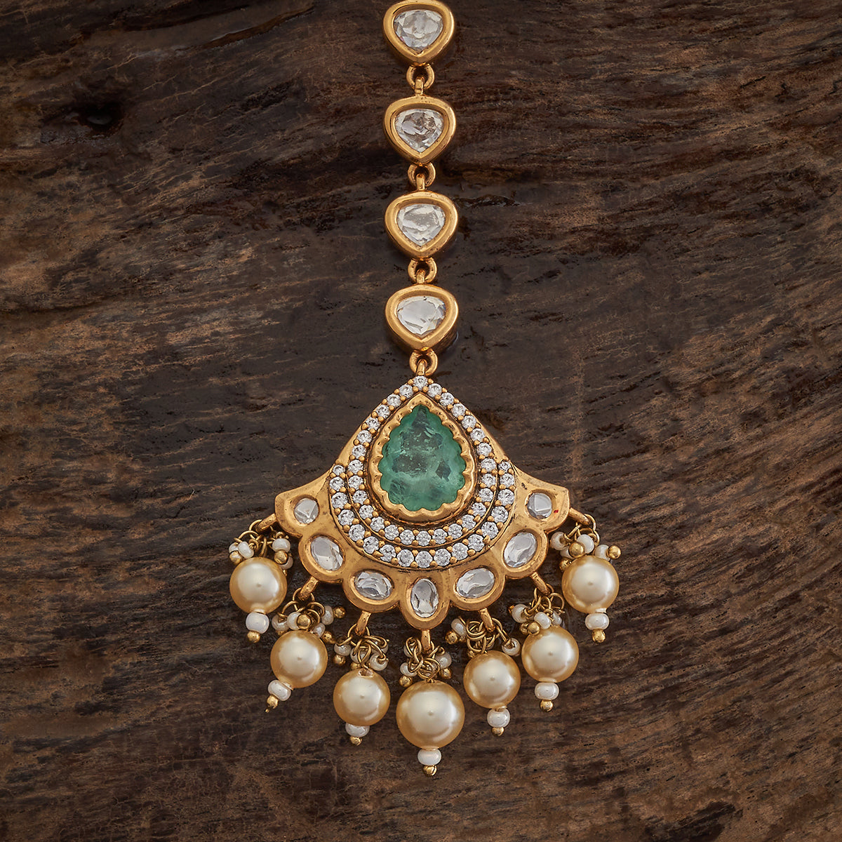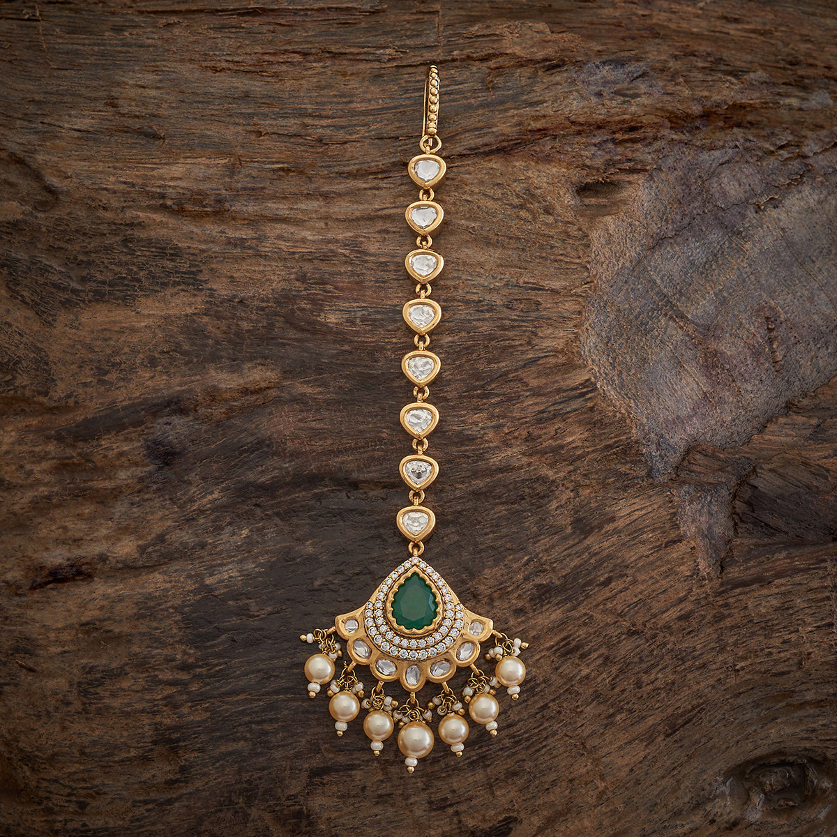 Elevate your look with our Kundan tikka from Kushal's Fashion Jewellery. Featuring a big kundan stone in mint, green, pink, or ruby, adorned with golden beads and Victorian polish, it�s the ultimate accessory. Pair it with your Indian wear for a royal touch. Let your forehead sparkle and steal the show!