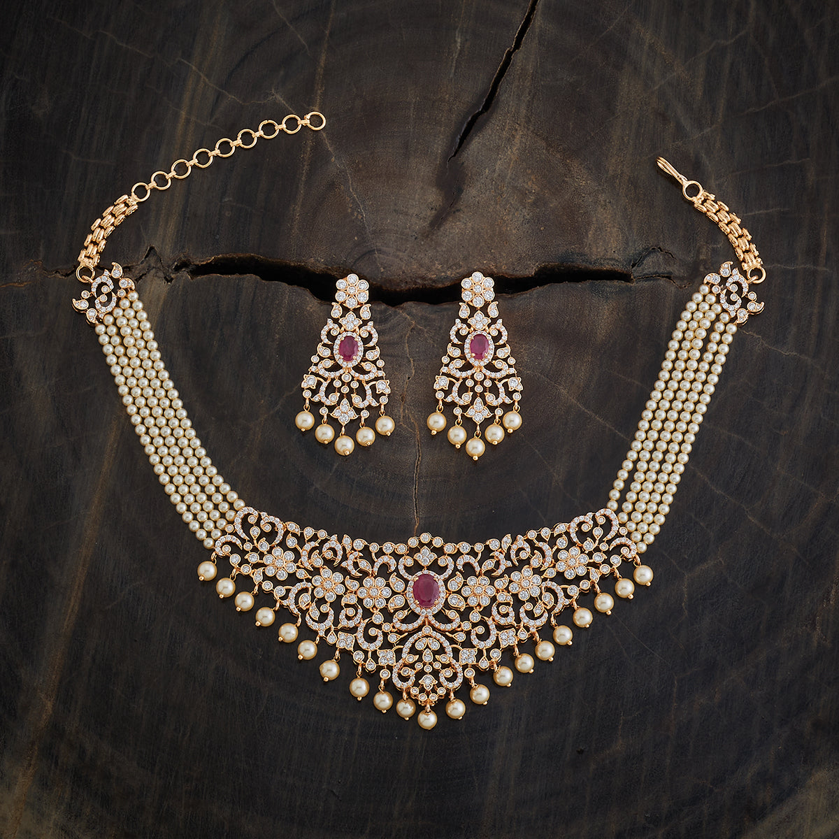 Keep it classic and chic with this 92.5 silver temple chain by Kushal’s Fashion Jewellery. Its sleek design and traditional charm make it perfect for any outfit, adding a touch of elegance effortlessly. This layered chain comes in three hues ruby, green, and pearl set in a 92.5 silver base.