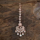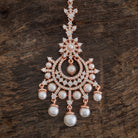 Perfect for weddings, festivals, or any special occasion, this zircon tikka from Kushal's Fashion Jewellery is sure to leave a lasting impression. This beautiful piece is crafted from copper alloy and adorned with sparkling white zircons. Available in both oxidised gold and rose gold polish, this tikka offers a versatile elegance that complements any ethnic attire.