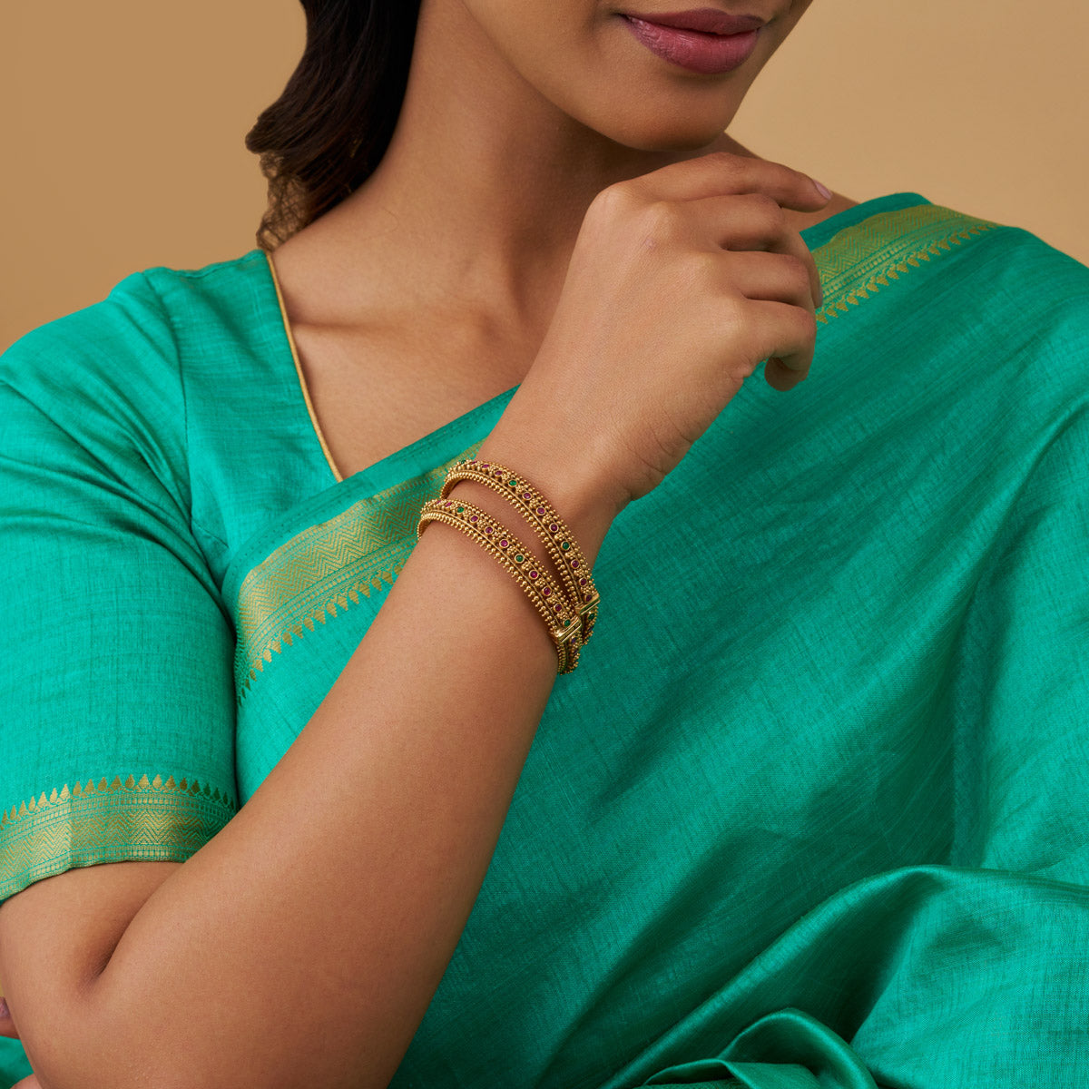 Coordinated necklaces, earrings, and bracelets add symmetry to your wedding photos and help maintain a polished aesthetic. Plus, gifting your bridesmaids a complete set of jewelry makes getting ready on the big day a breeze.