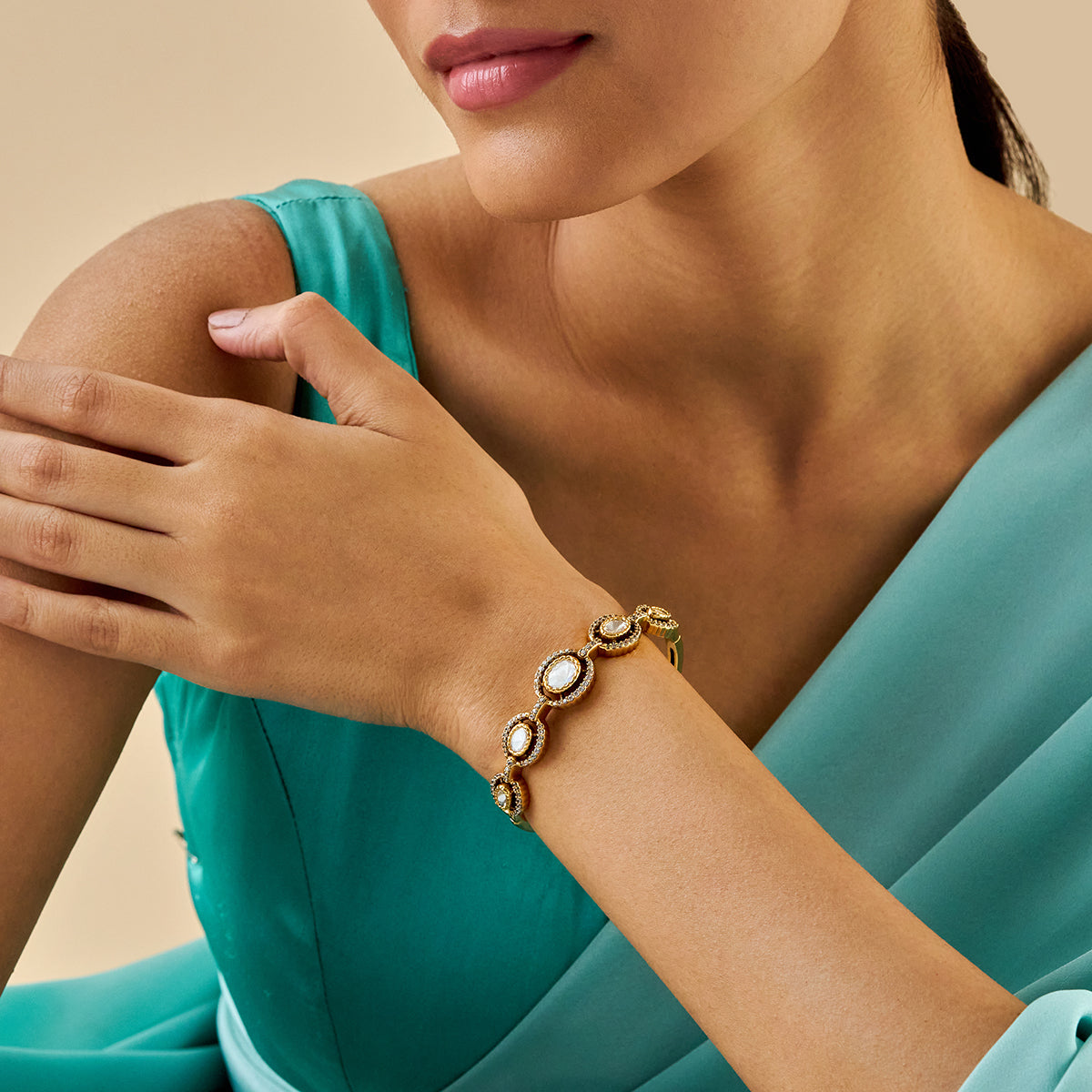 Coordinated necklaces, earrings, and bracelets add symmetry to your wedding photos and help maintain a polished aesthetic. Plus, gifting your bridesmaids a complete set of jewelry makes getting ready on the big day a breeze.