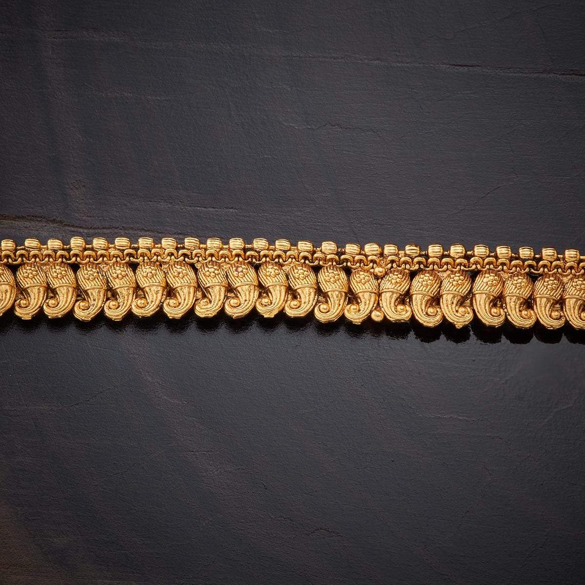 Complete your traditional ensemble with this antique belt featuring a plain and elegant gold polish. Its timeless simplicity perfectly complements sarees, adding a touch of royal charm and ethnic grace. An ideal accessory for special occasions, this belt enhances your look with understated sophistication and classic appeal.