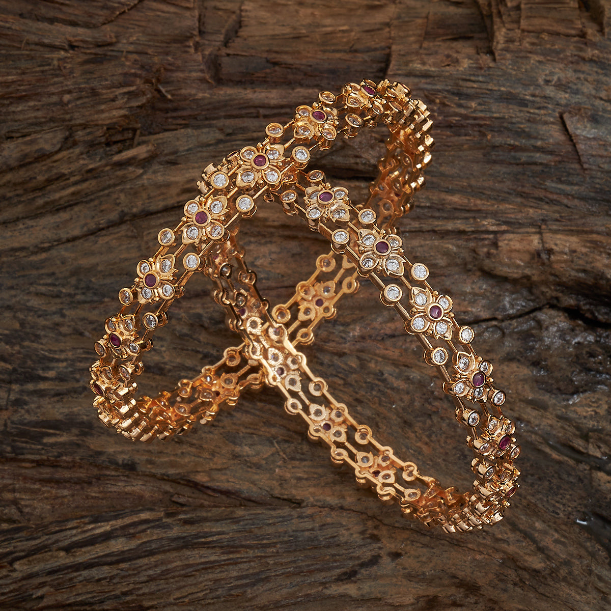 Adorn your wrists with Kushal's exquisite zircon bangles, gleaming in a radiant golden polish. Meticulously crafted from copper alloy, each bangle features mesmerising floral motifs, adding a touch of elegance and grace to every gesture. Perfect for any occasion, these bangles are a blend of sophistication and timeless beauty.