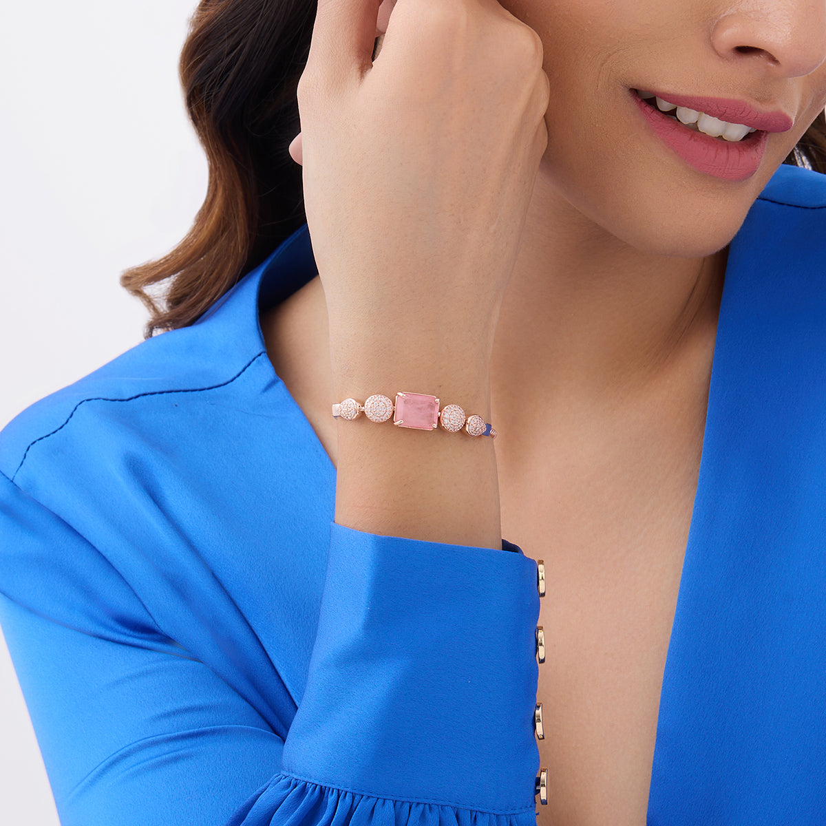 Showcase your new accessory with Kushal’s zircon-based bracelets. We have produced this bracelet with copper and fine-cut zircon stones. You can choose from a diverse set of colours for your stone - mint, green, ruby, sapphire, and pink. The top-quality rose gold and rhodium polish enhance its elegance even more.