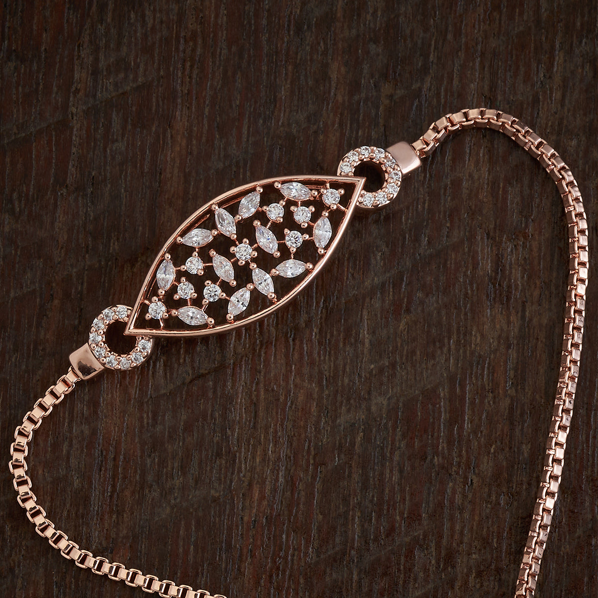 Add a splash of sparkle with this zircon bracelet! With glimmering white stones, polished for a high shine, it's the perfect accessory for any occasion. Available in golden, rhodium, and rose gold polish you can layer this bracelet with a watch or wear solo for a sleek look.