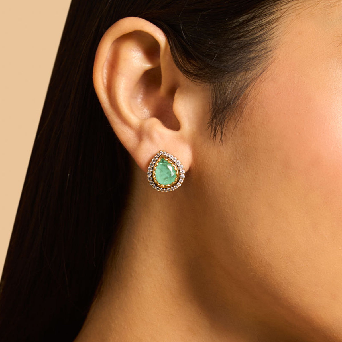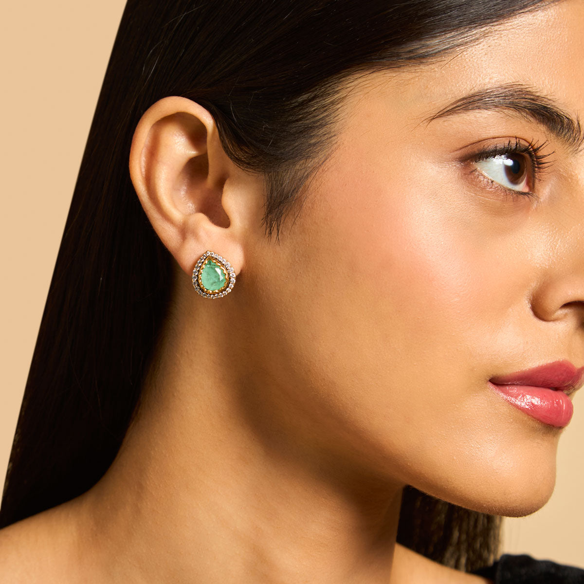 Elevate your Indian outfit with our zircon earrings from Kushal's Fashion Jewelery. These stud earrings feature a striking big kundan stone in green, mint, ruby, or pink colour, with Victorian polish. Pair them with your favourite saree or lehenga for a touch of timeless elegance. Sparkle on and let your ears steal the show!