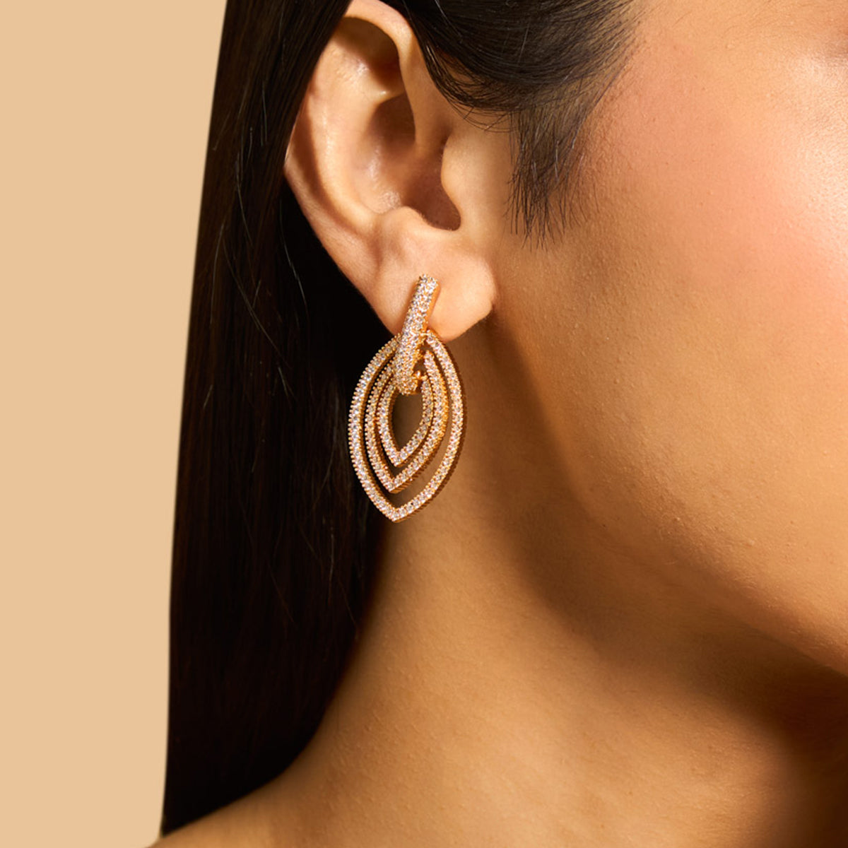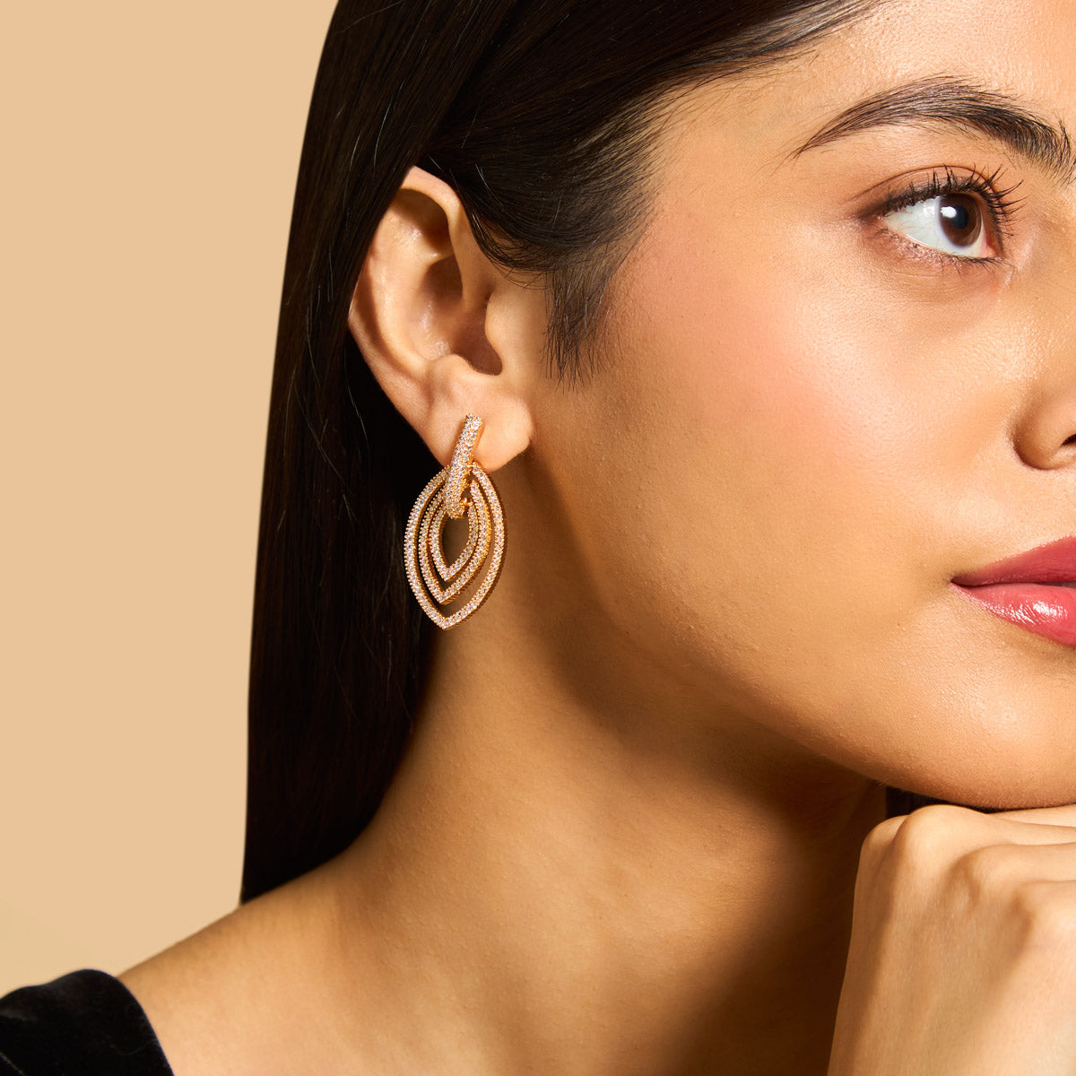 These dazzling earrings by Kushal’s Fashion Jewellery Collection sparkle brilliantly, catching the light with every movement. Designed to make a statement, their white stones effortlessly blend sophistication with a touch of glam. Available in multiple polish options, you can pair it up with both modern and traditional ensembles.