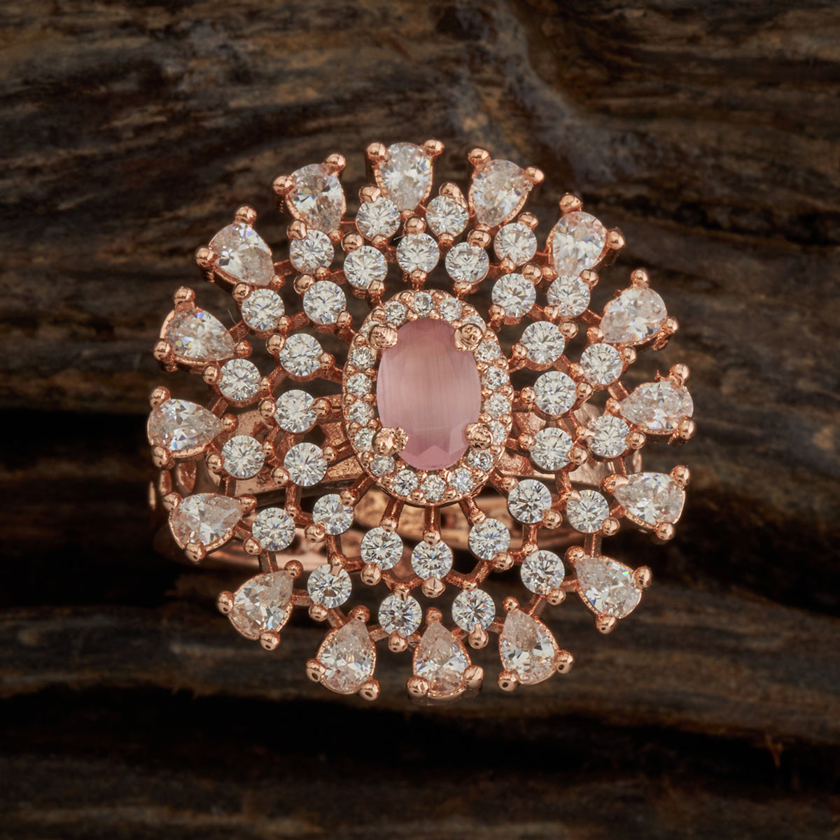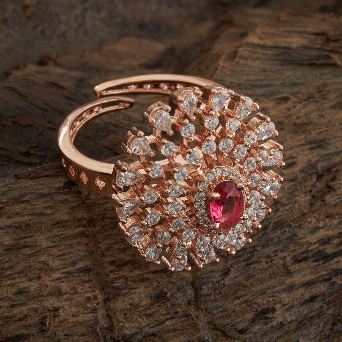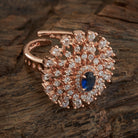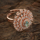Crafted with exquisite precision, this stunning ring from Kushal's Zircon Jewellery Collection features stones with multiple colour options at the centre that radiates timeless beauty. This piece will add flair to your appearance and complement both modern and ethnic ensembles.