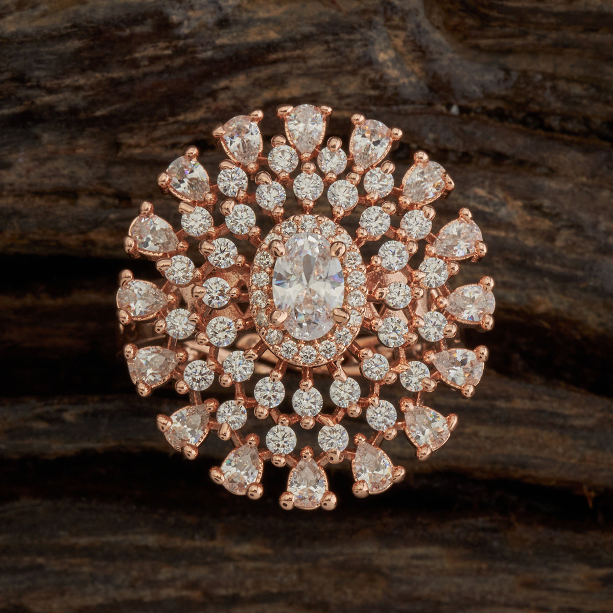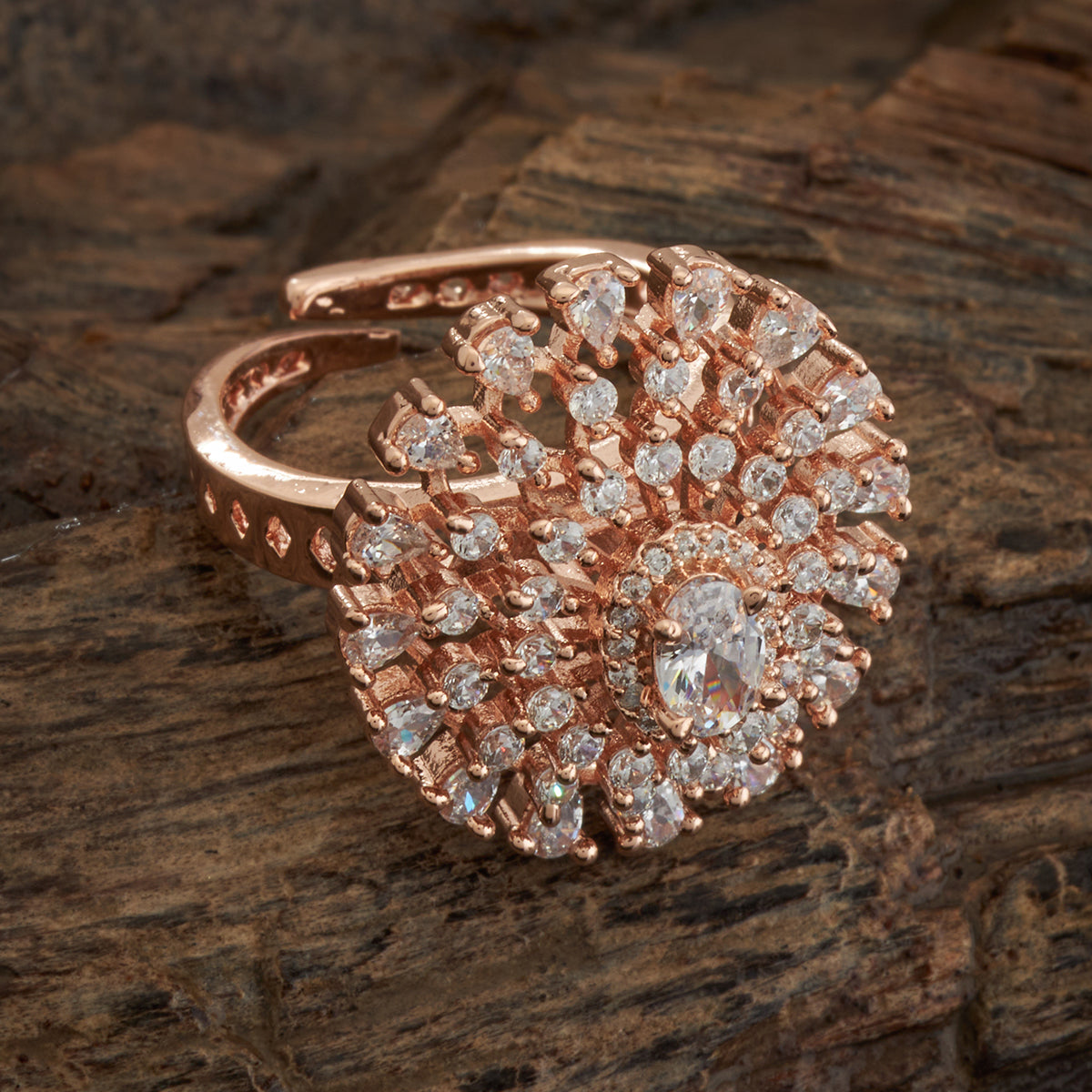 Flower Design Zircon Finger Ring