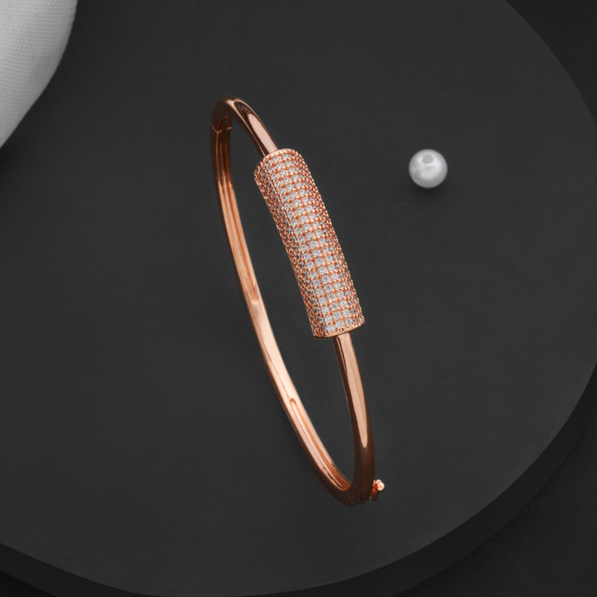 We are here with our latest zircon Kada to end your search for a minimalistic yet splendid Kada for this festive season. You can wear this Kada casually or with your fancy outfits; nevertheless, it will be the best part of your final look. The beautiful rhodium, rose gold, and rhodium-gold polish enhance the shine of the studded zircon stones.