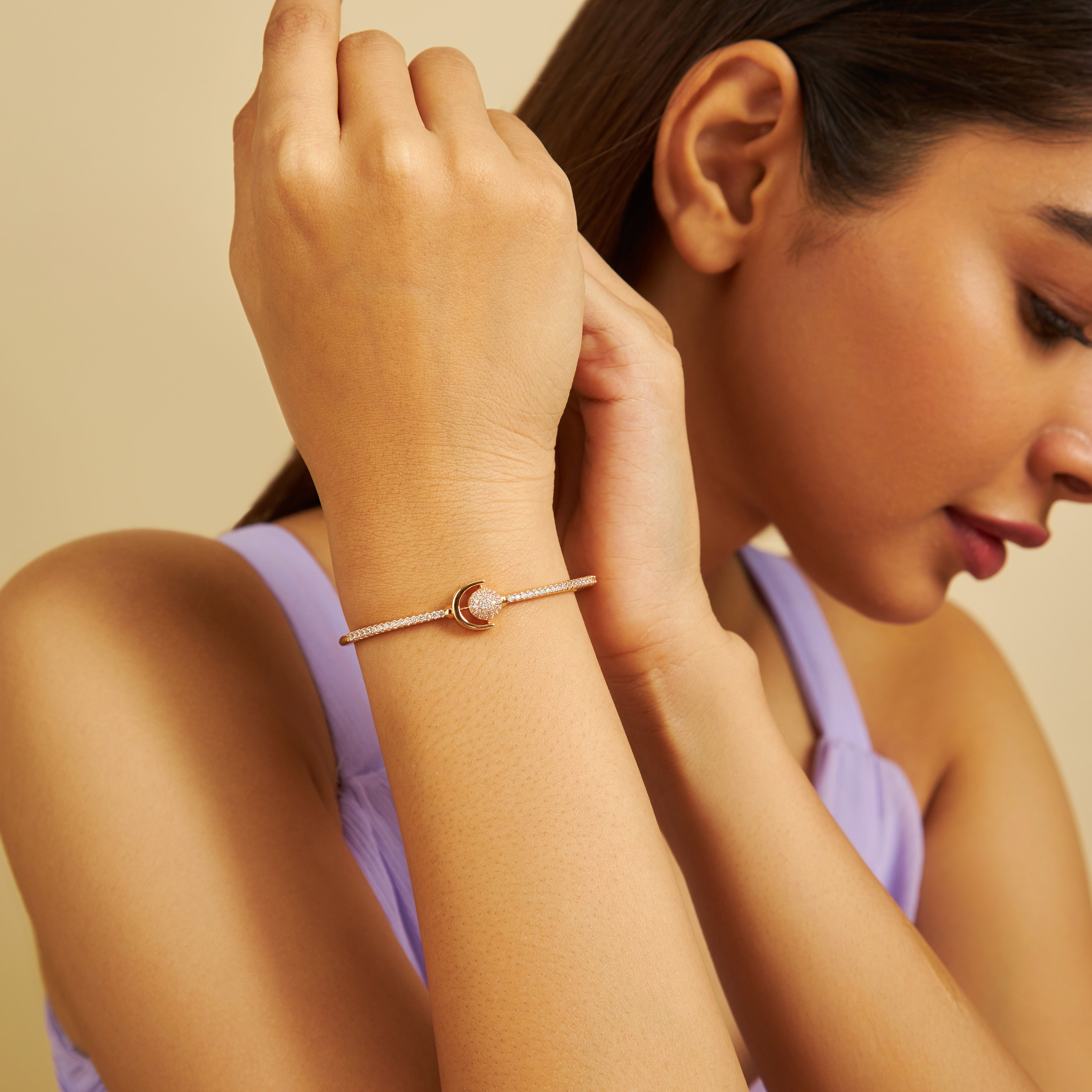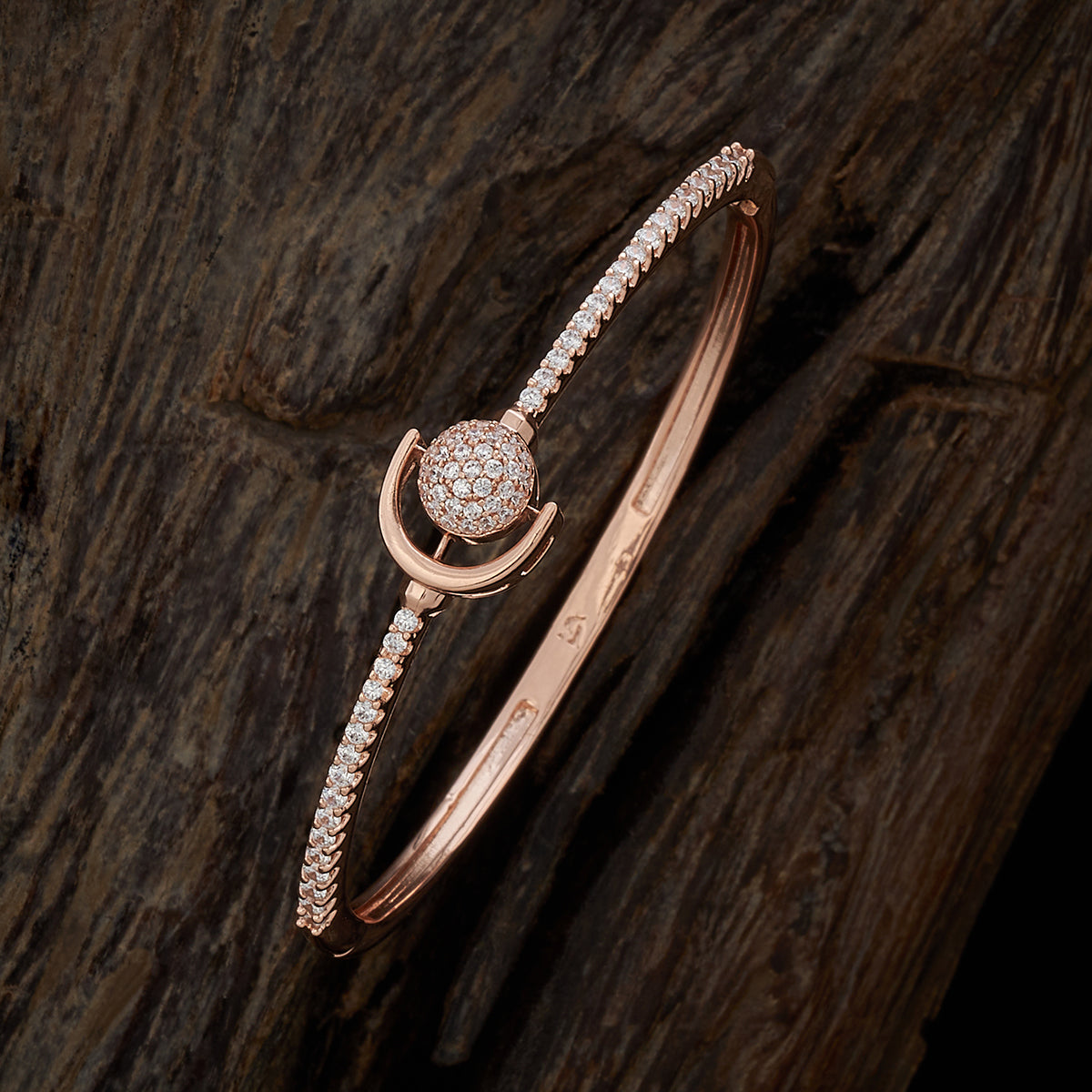 Kushal's zircon kada is lightweight and made up of copper alloy. It features white zircons and boasts a radiant finish in your choice of gold or rose gold. The secure locking system ensures a comfortable and worry-free fit all day long. Enhance your wrist with this piece, the perfect addition to any special occasion.